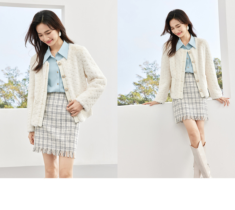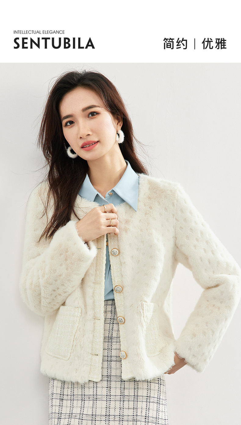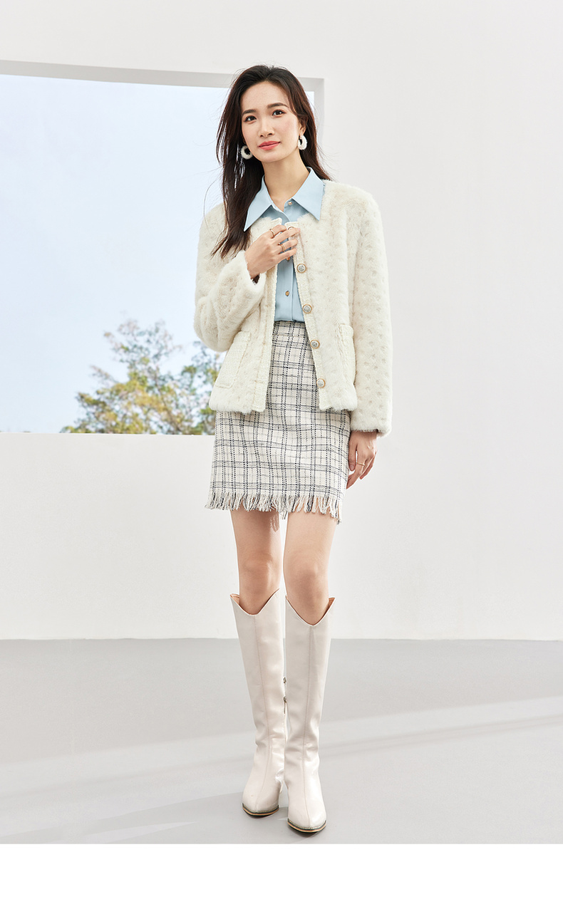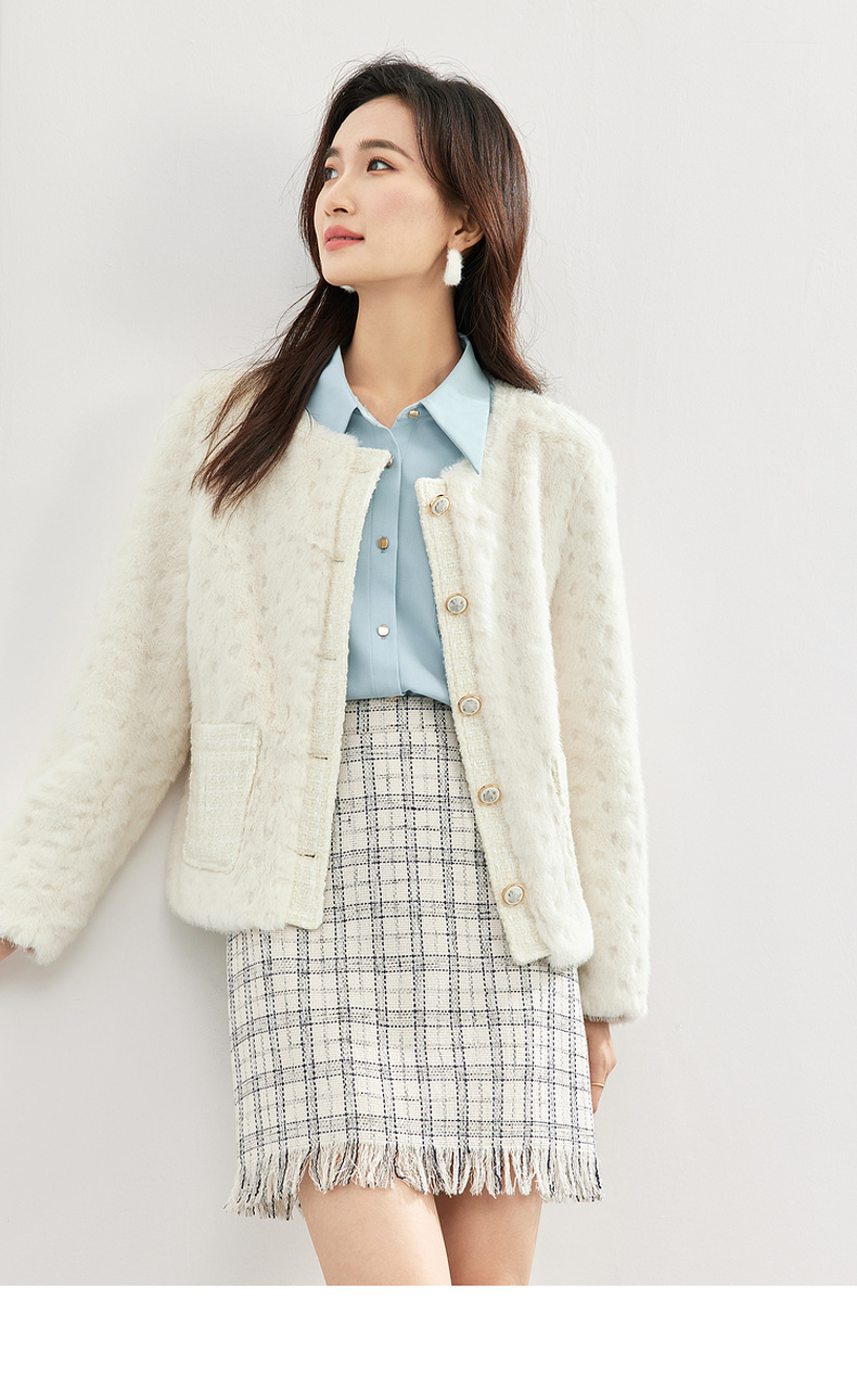 【内购】【保暖颗粒绒皮草】2024秋冬新百搭毛绒女外套短款小香风上衣-W54PB4902X
