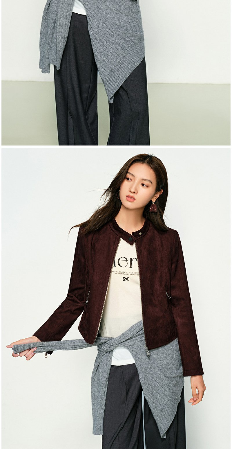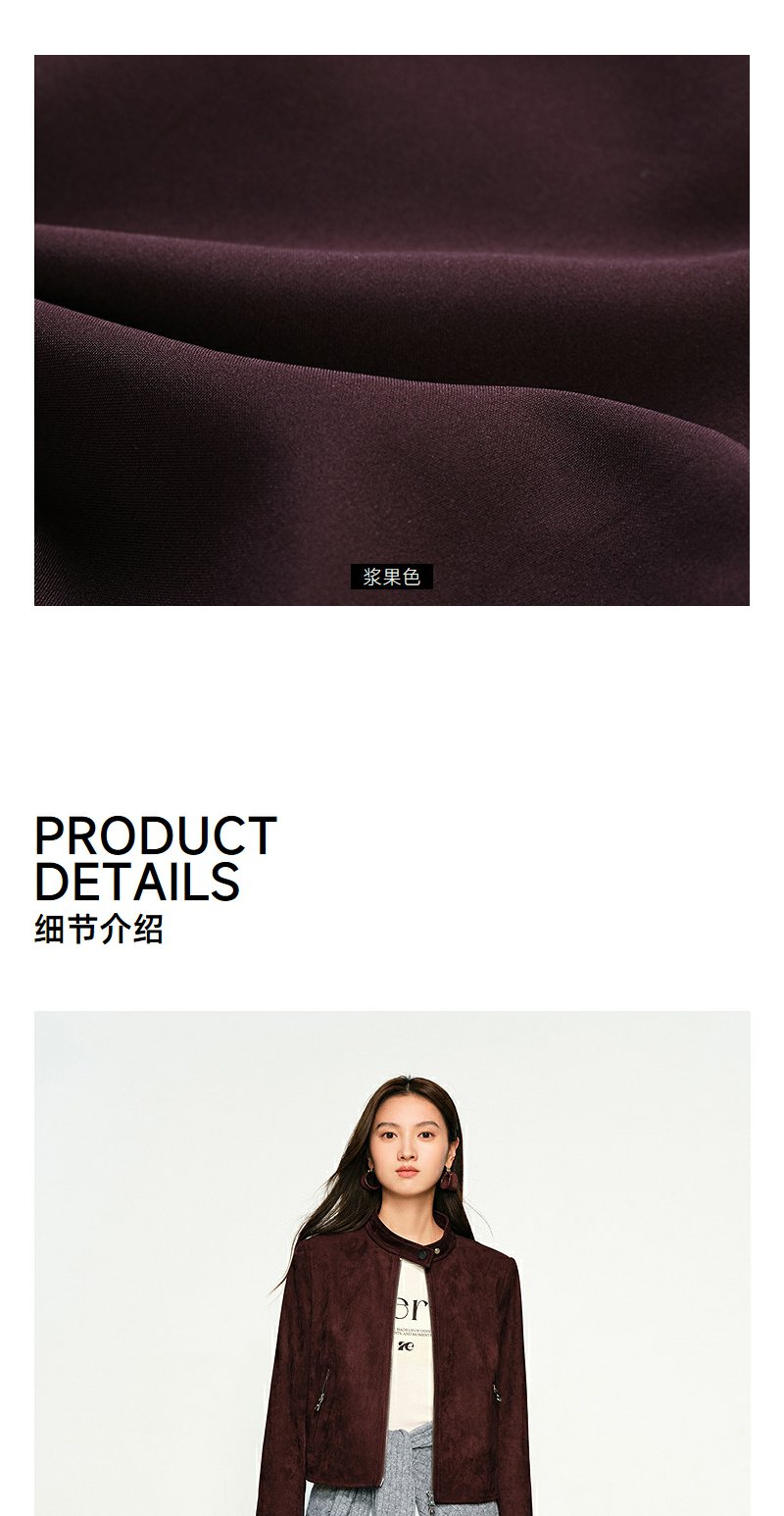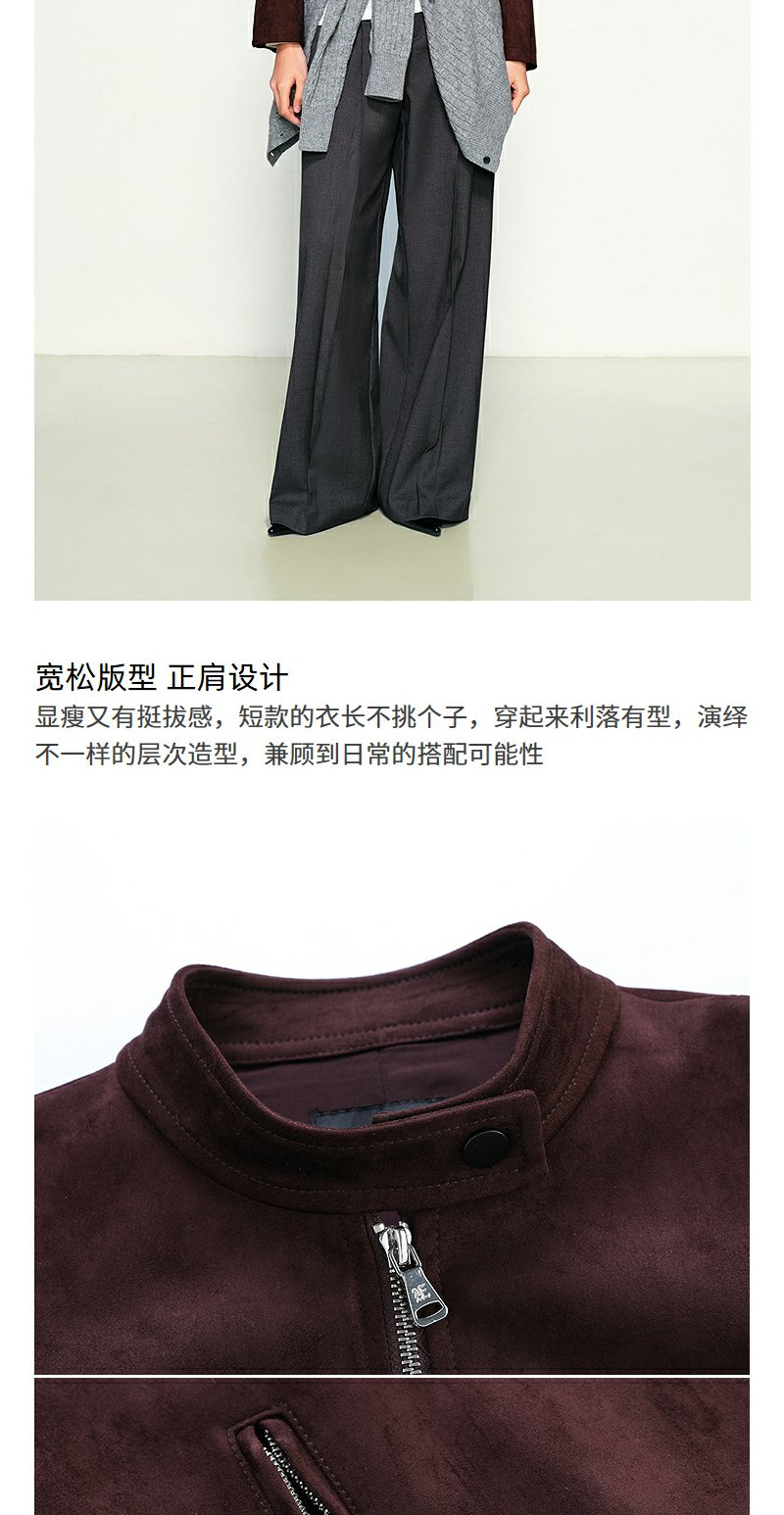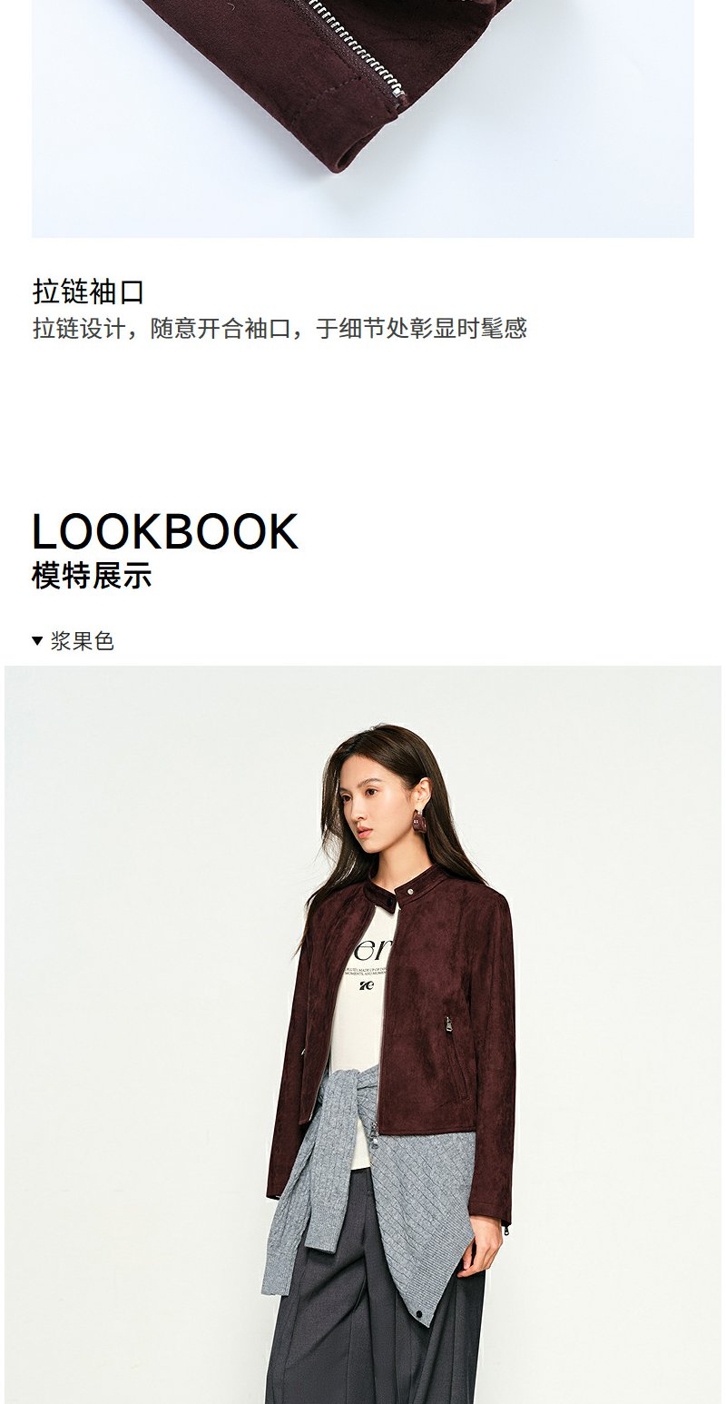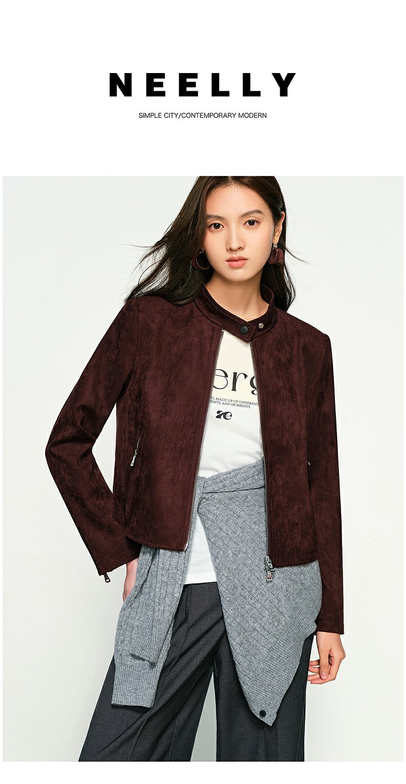 NEELLY纳俪商场同款秋季新款时尚麂皮质感显瘦女百搭深色短外套N25094C04627