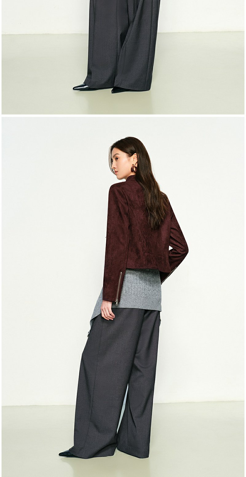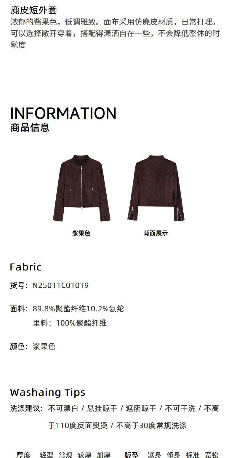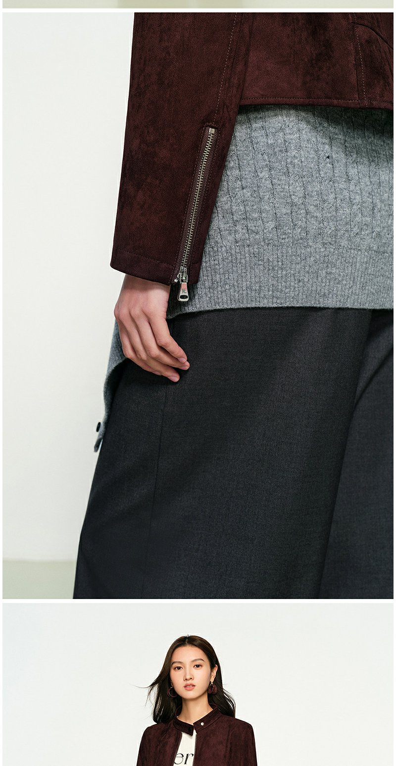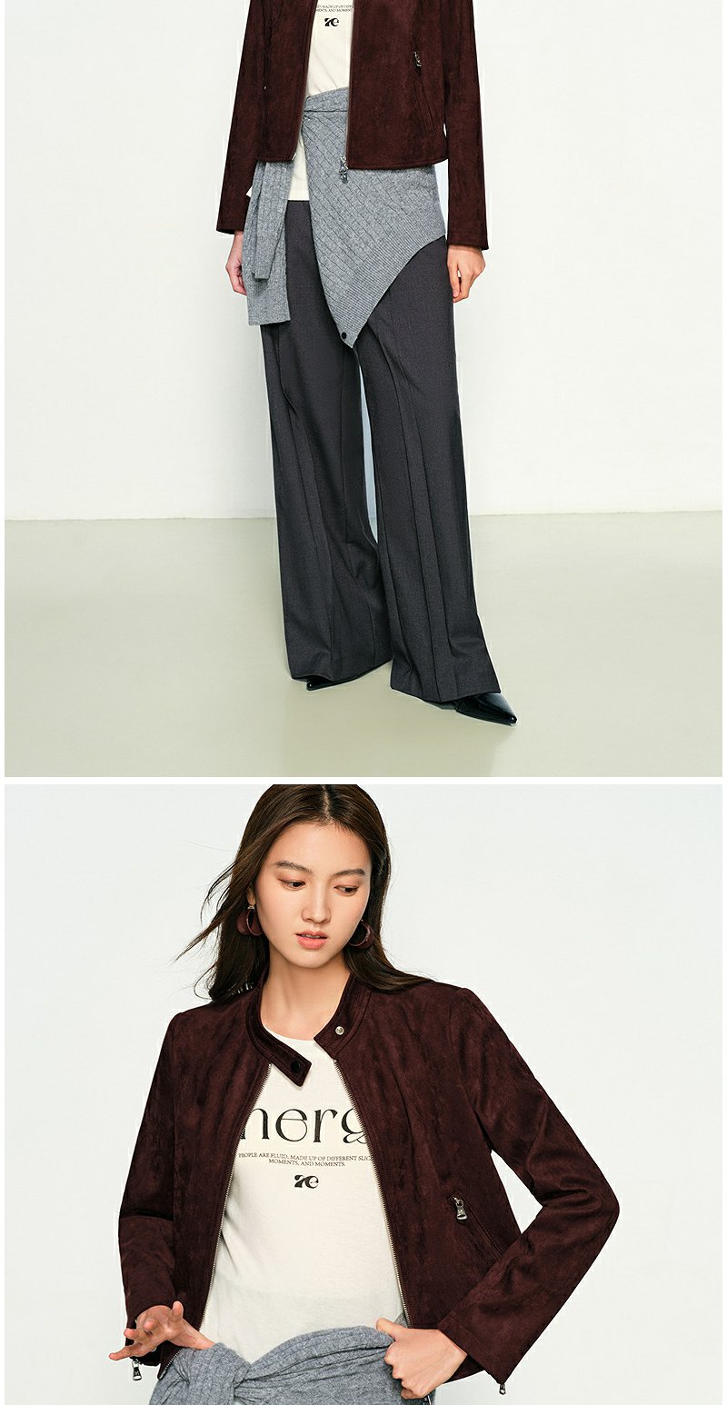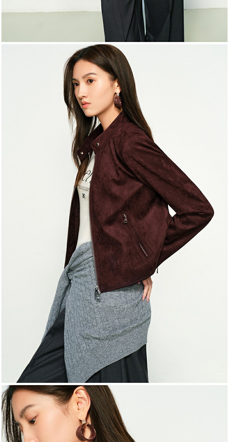 NEELLY纳俪商场同款秋季新款时尚麂皮质感显瘦女百搭深色短外套N25094C04627