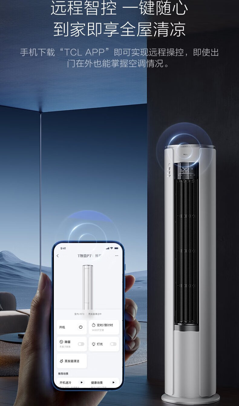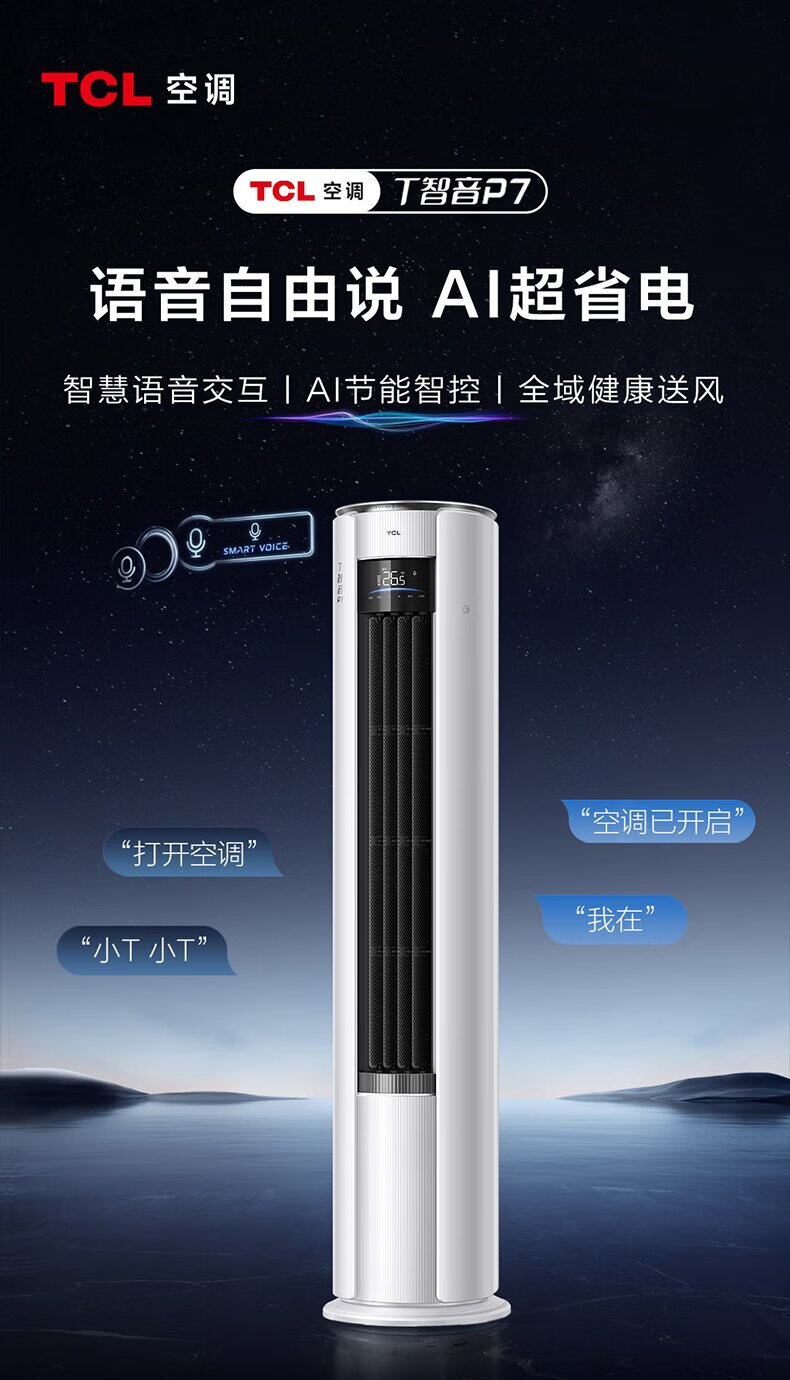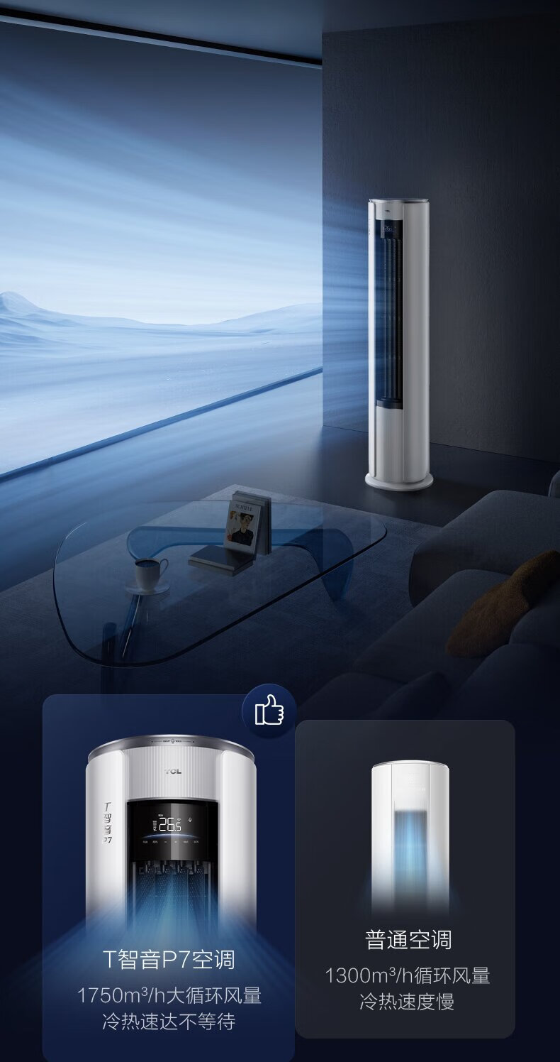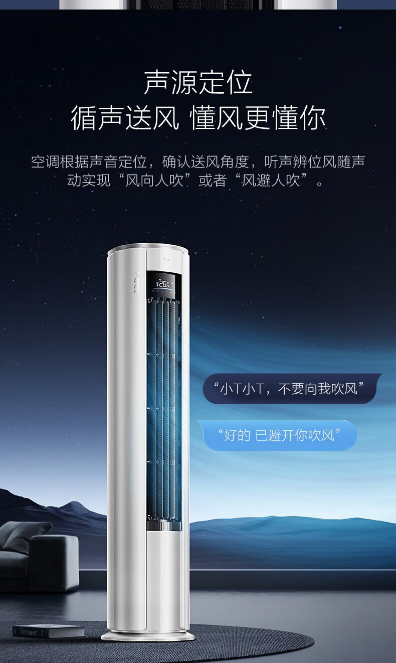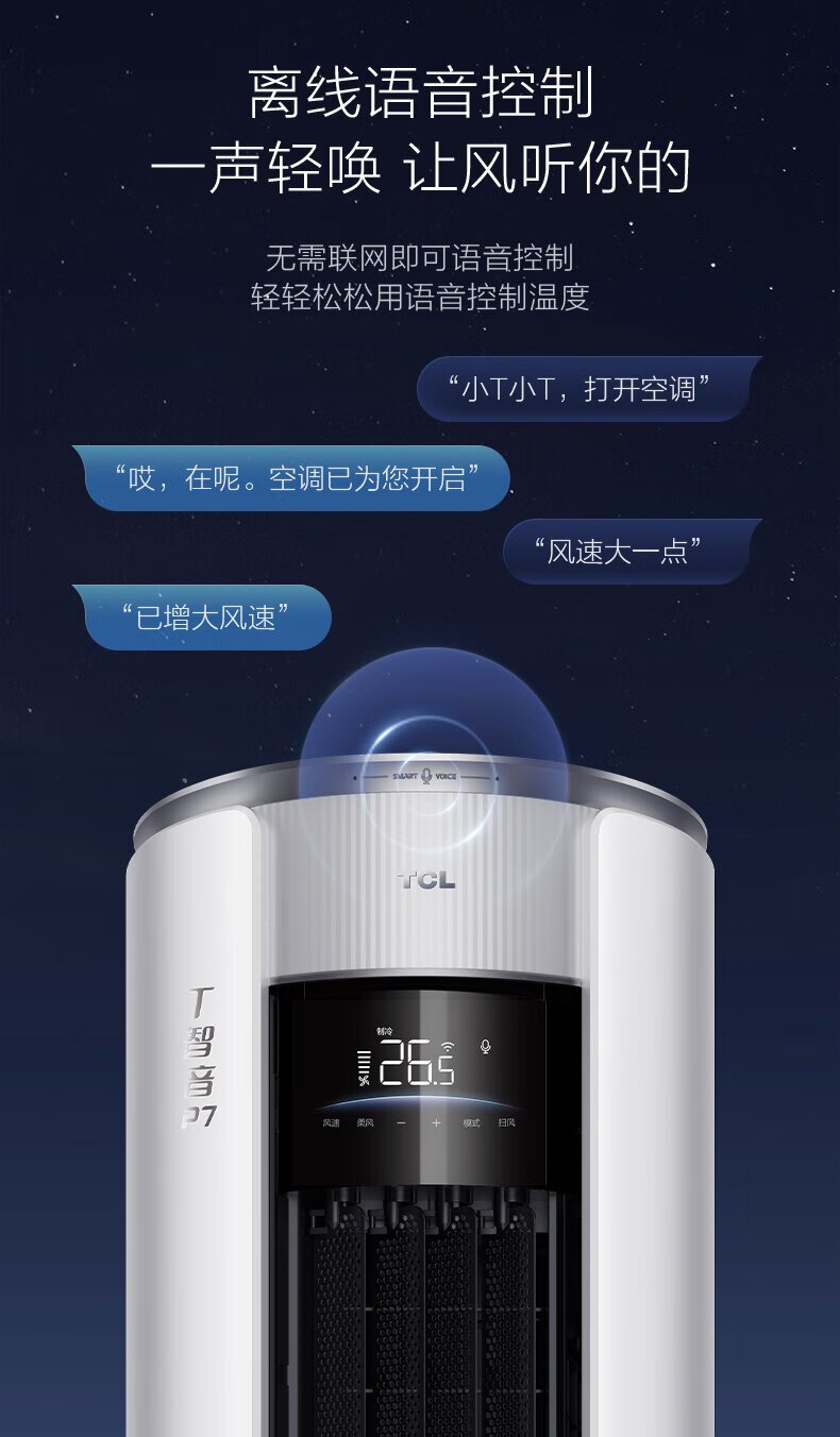 TCL空调_大2匹/大3匹新一级能效柜机空调_T智音_智慧AI语音控制立柜式家用空调_圆柱型时尚柜机_大3匹_一级能效_T智音