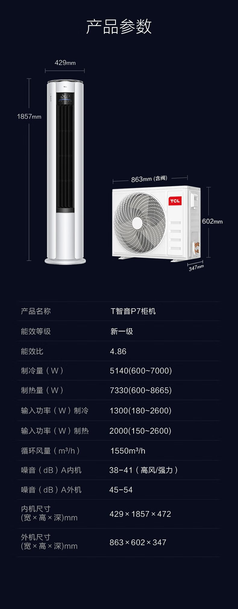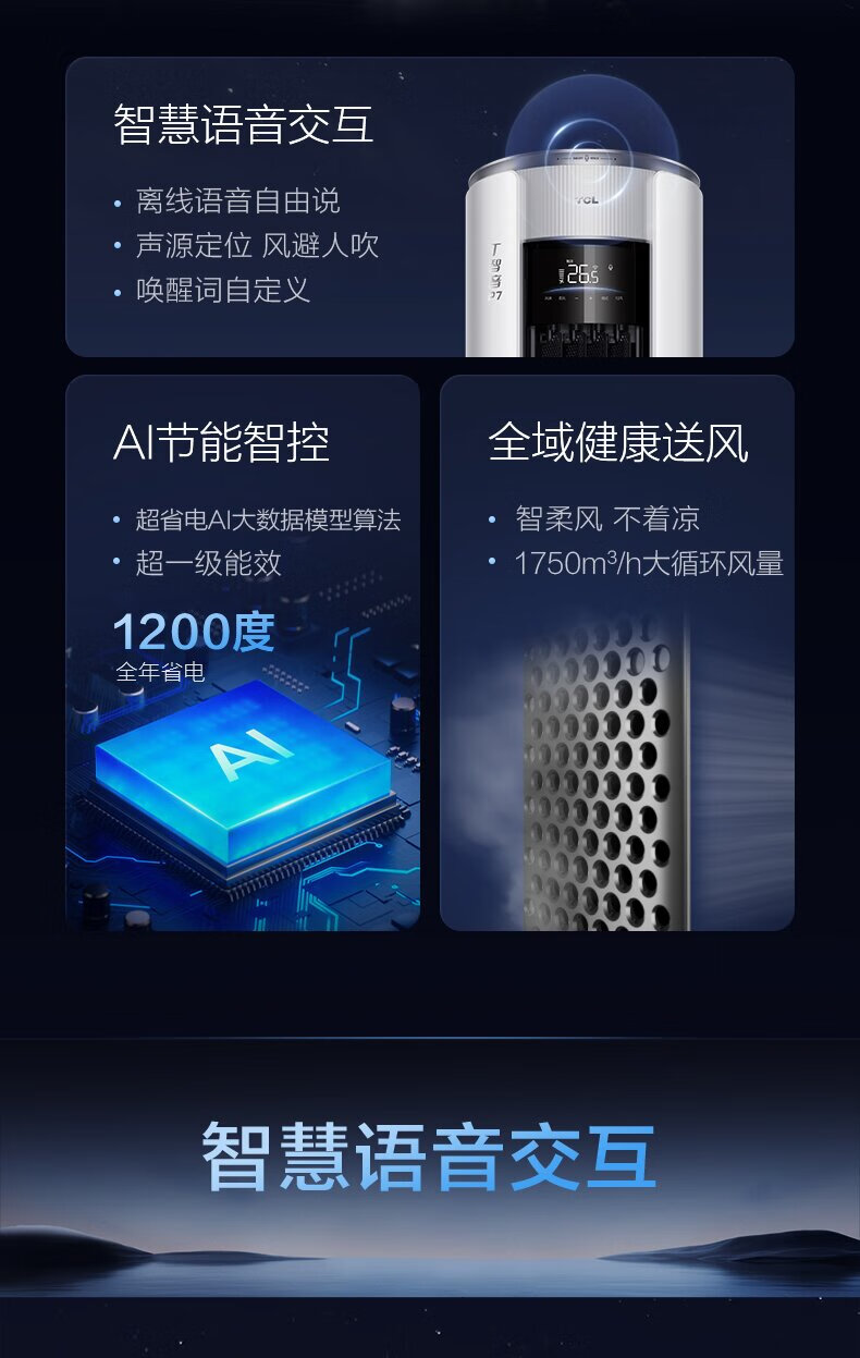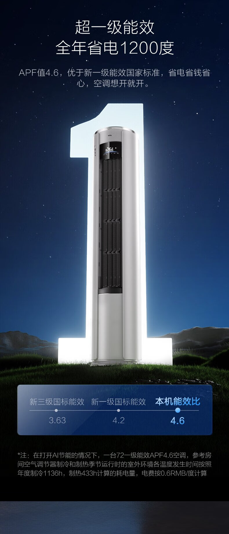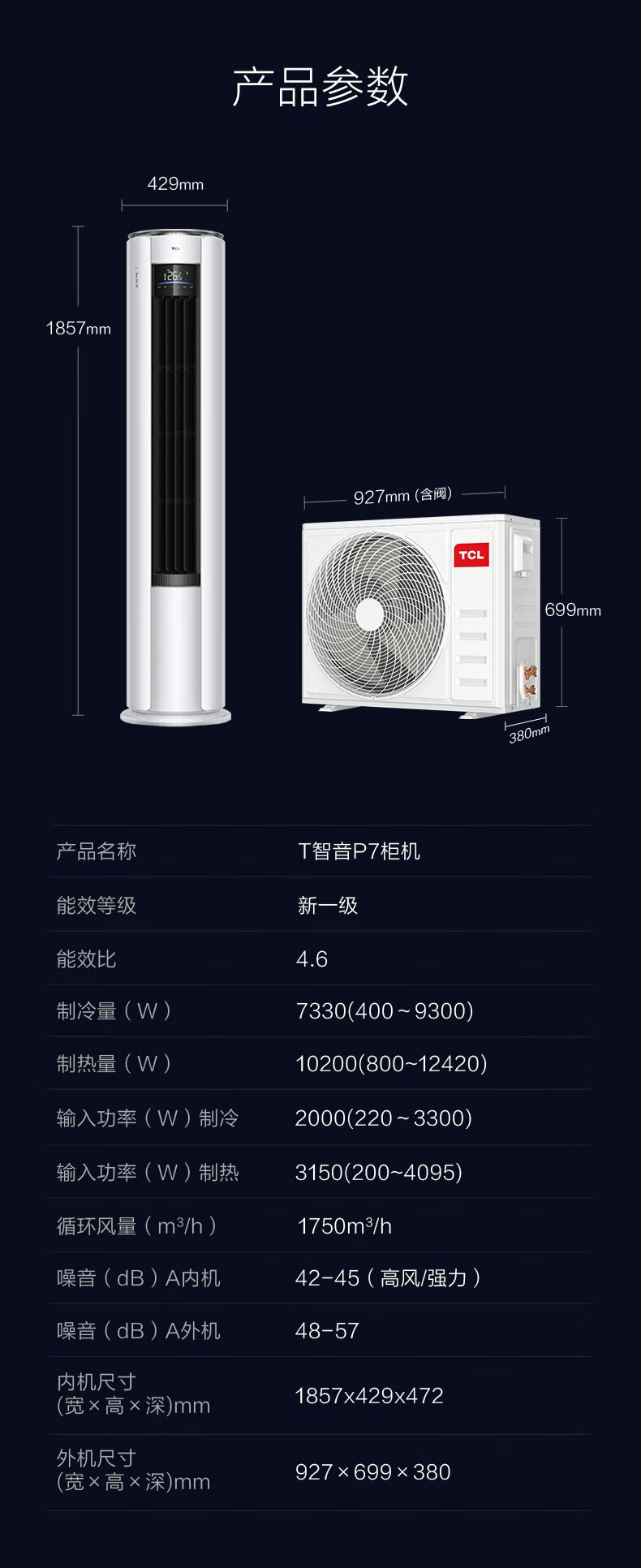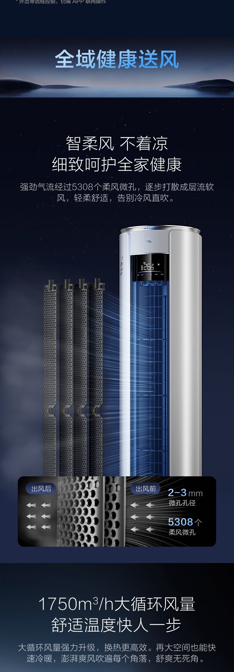 TCL空调_大2匹/大3匹新一级能效柜机空调_T智音_智慧AI语音控制立柜式家用空调_圆柱型时尚柜机_大3匹_一级能效_T智音