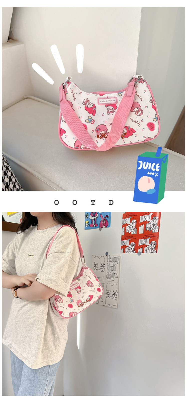 【新款可爱三丽鸥美乐蒂少女腋下包】手提包女生单肩包小众卡通手提袋