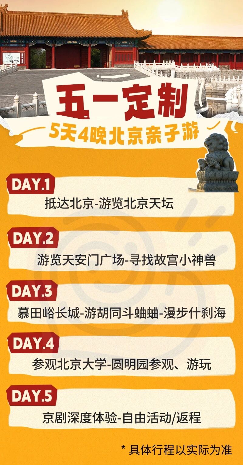 26年【五一北京定制营】只开1期:5月1日-5月5日,建议4-60周岁的亲子家庭报名出行!