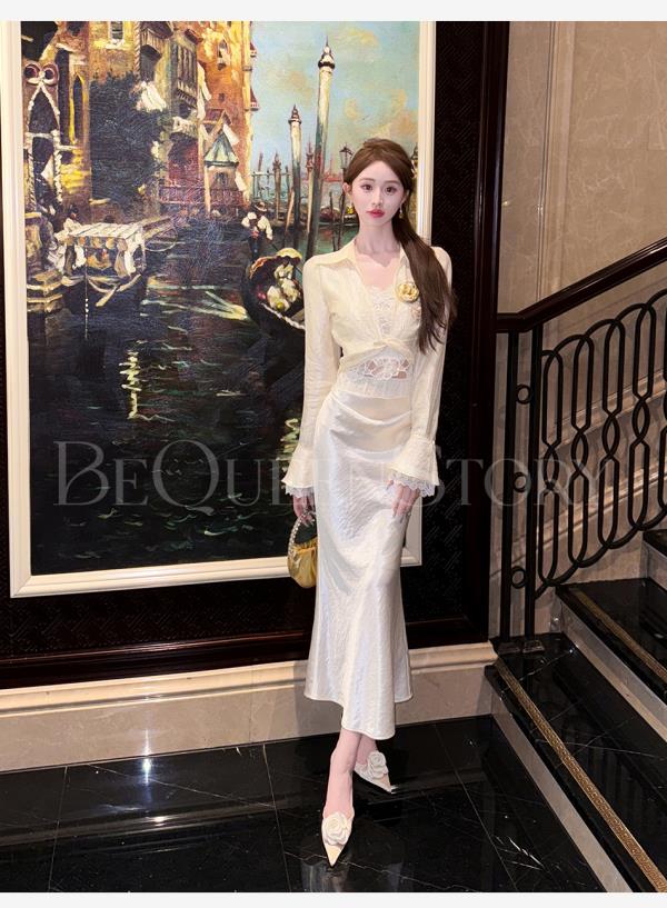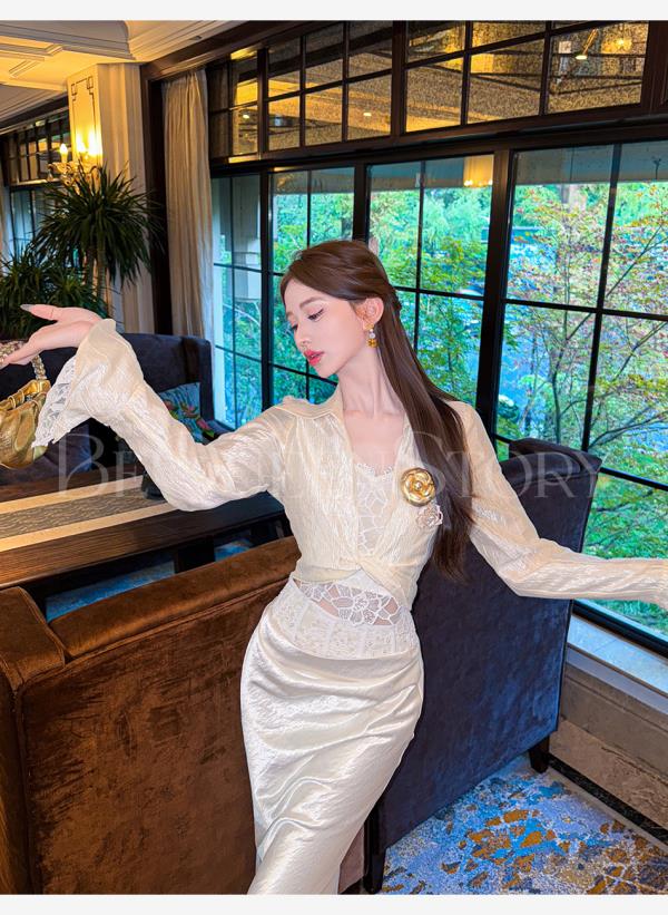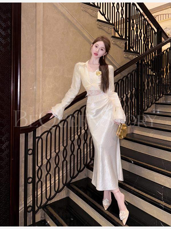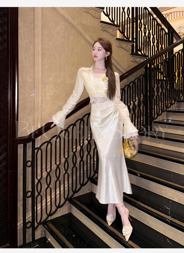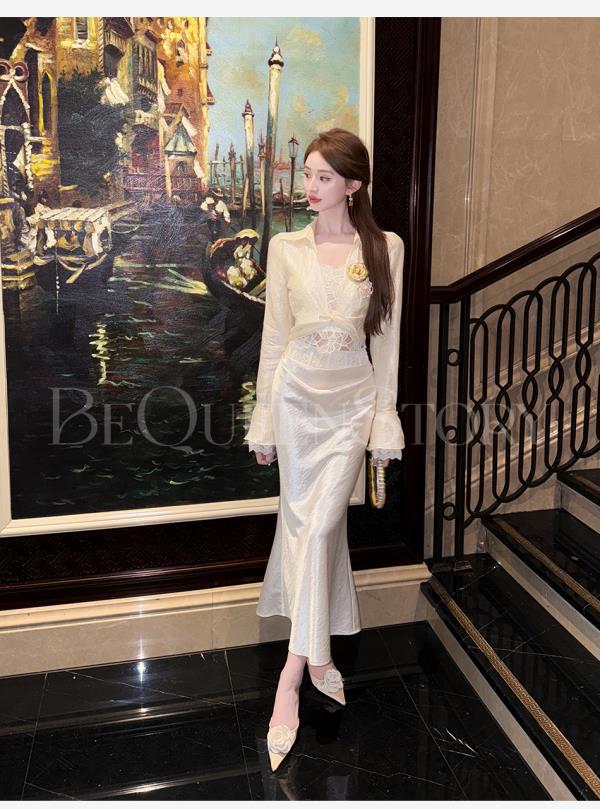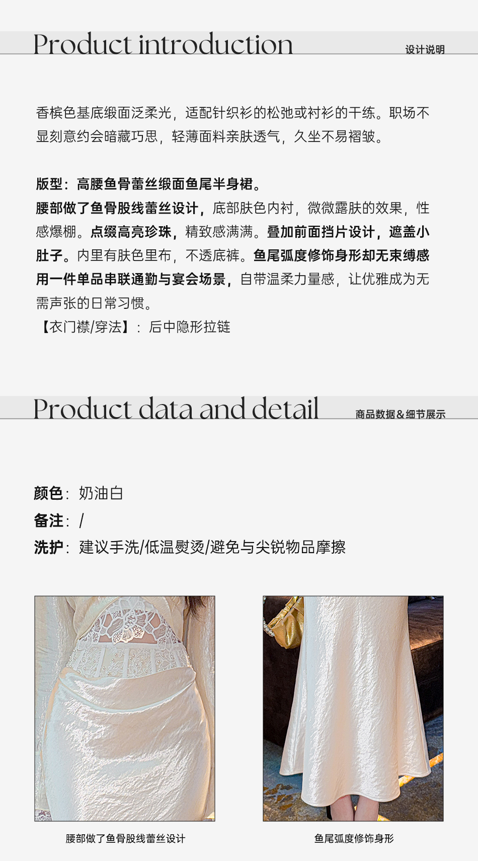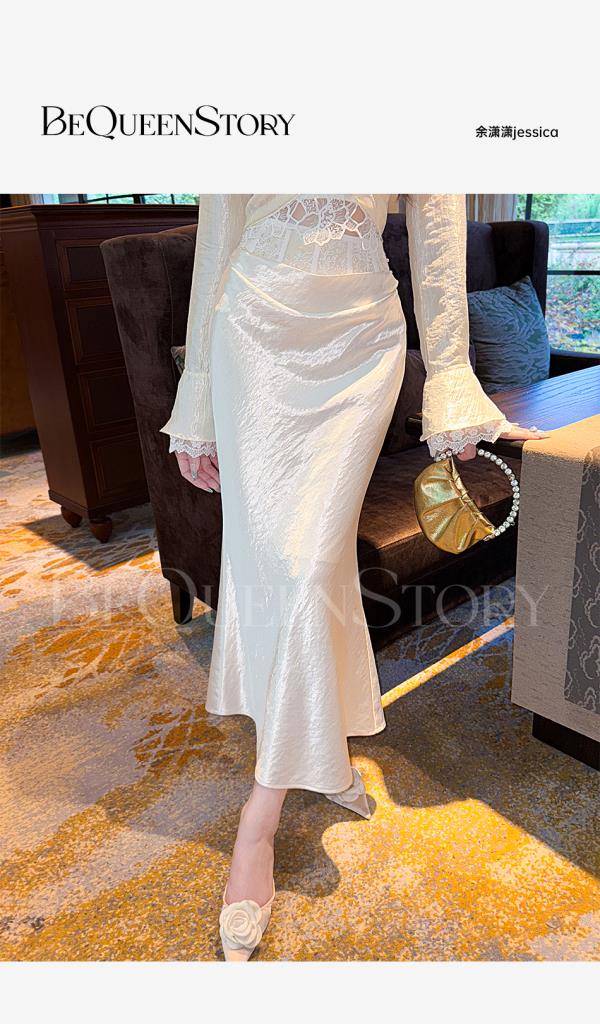 韩韩IU【温柔荡漾】琥珀流光色系法式修身显瘦蕾丝缎面鱼尾半身裙