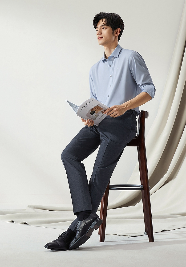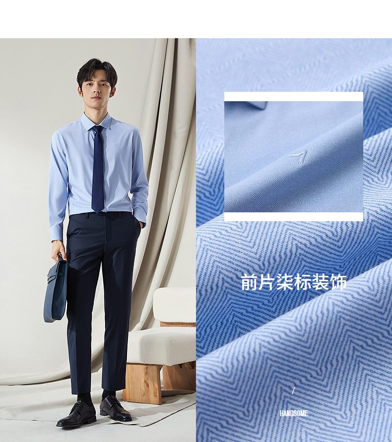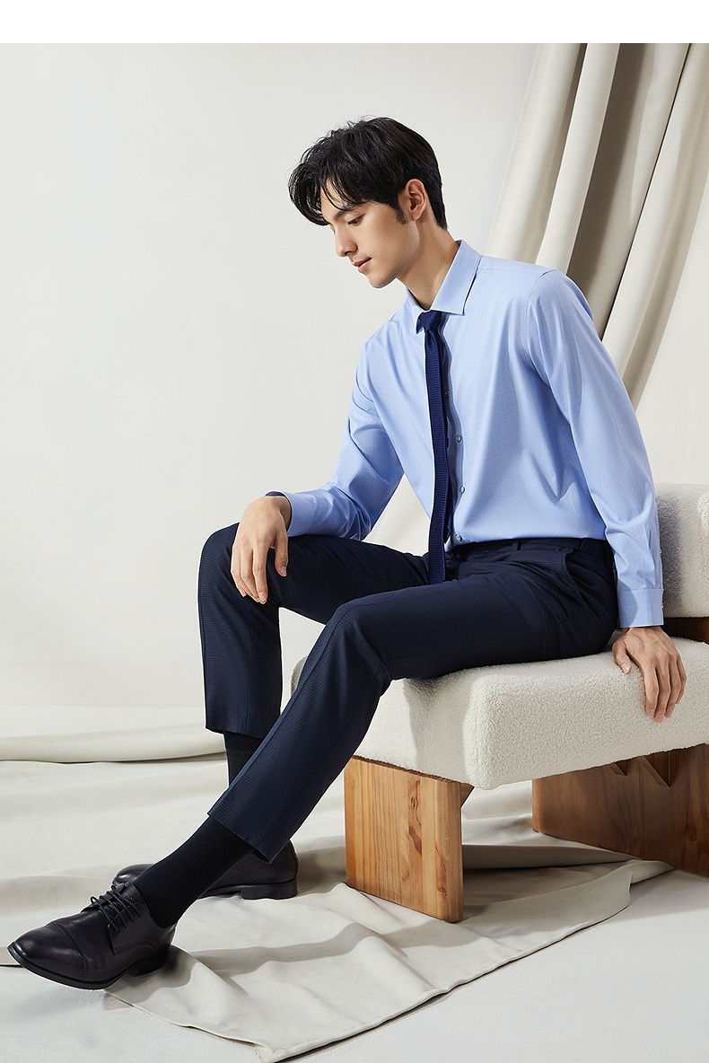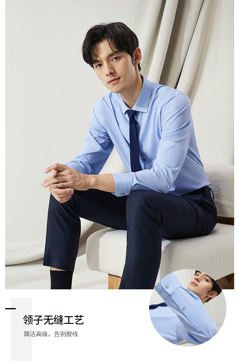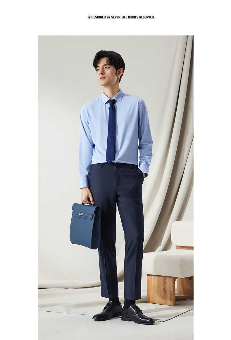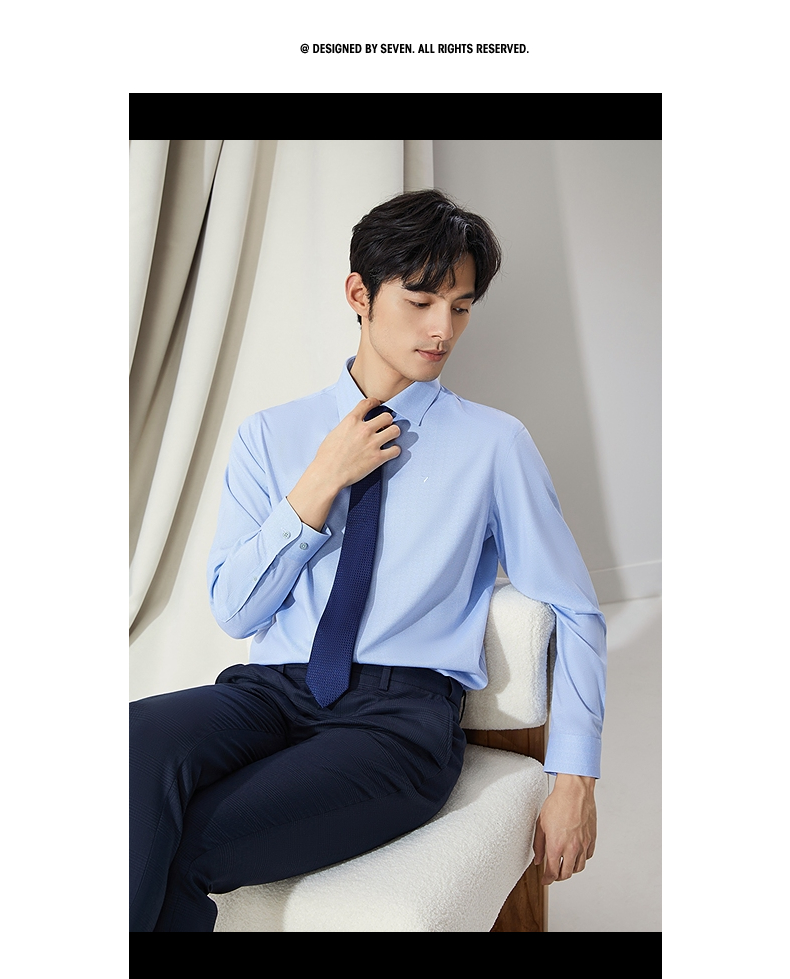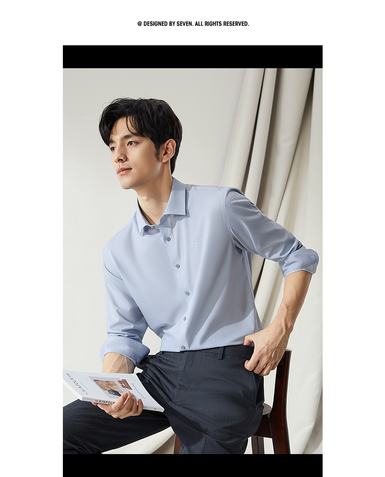 【高端系列】柒牌男士长袖衬衫2024秋季新款商务休闲含莫代尔衬衣 127A70980