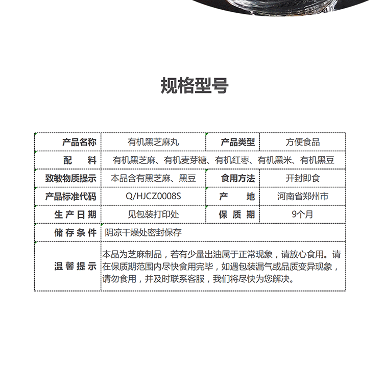 辉煌田地有机黑芝麻丸90g