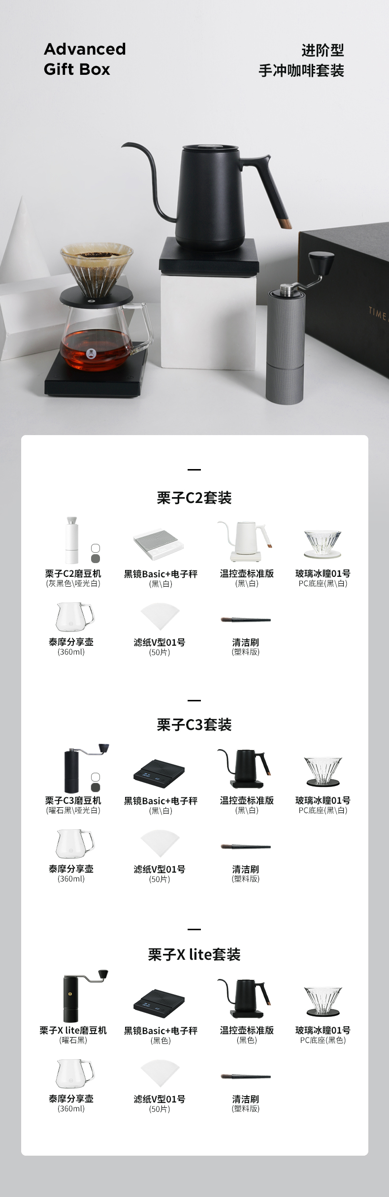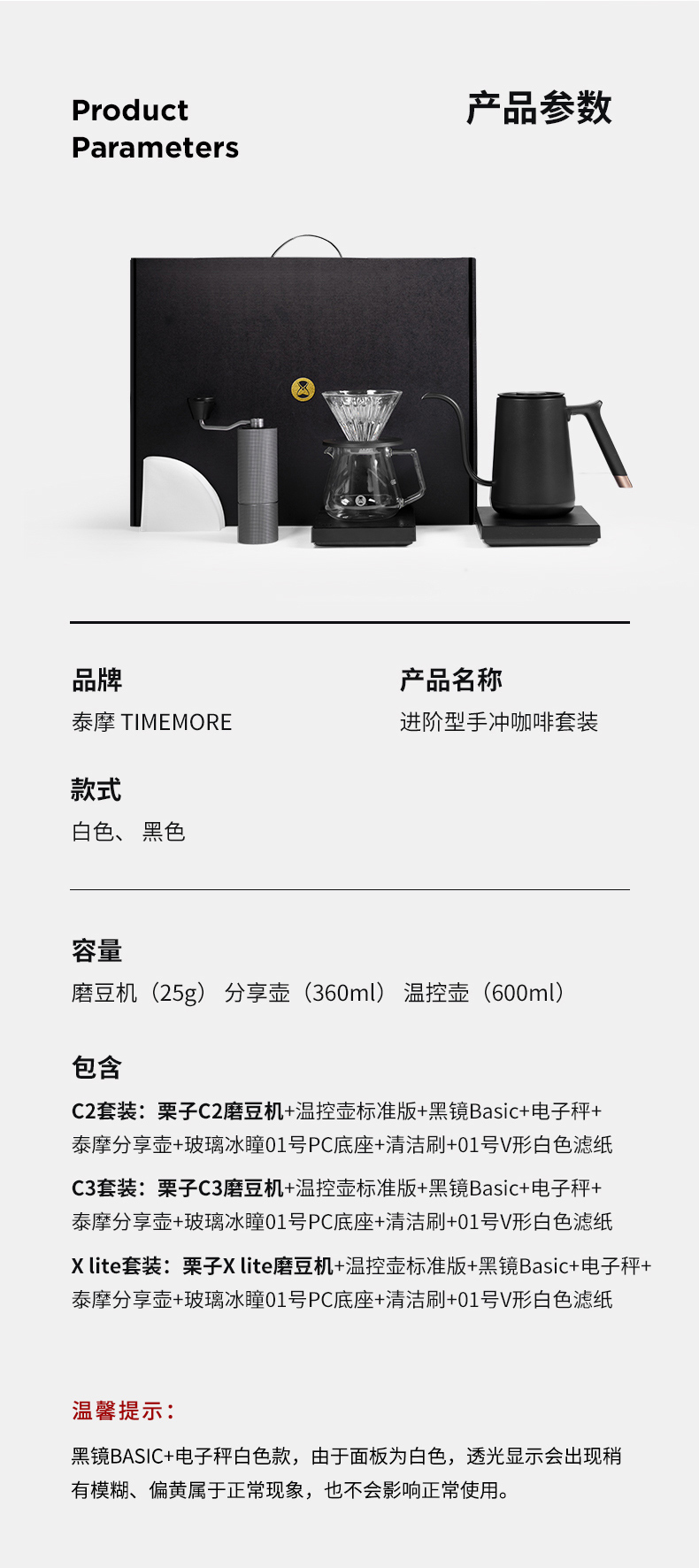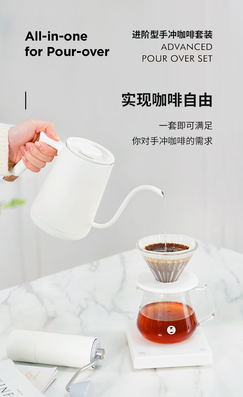 泰摩 进阶型家用手冲咖啡壶套装礼盒 温控手冲煮磨豆机电子秤滤杯