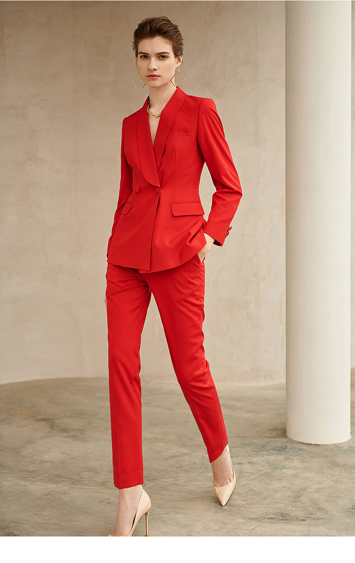 IWY/高端酒红色丝绒西装套装女公司年会主持正装气质上镜职业装1024CP038