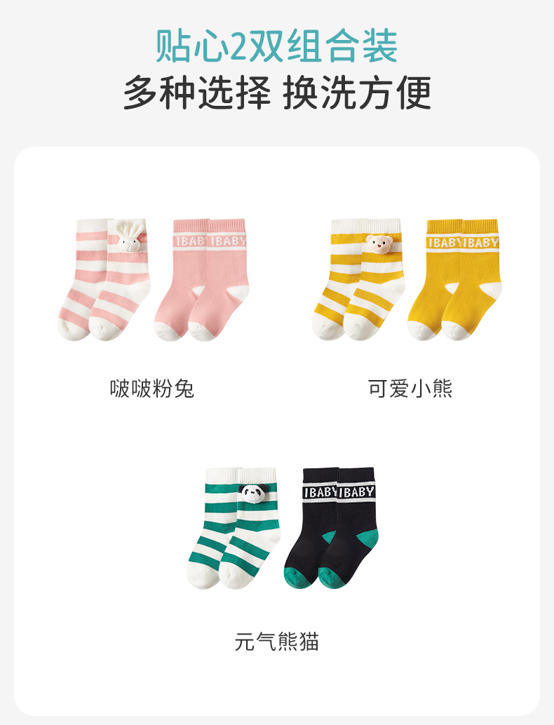 i-baby儿童恒温立体玩偶中长筒袜运动袜中大童2双装