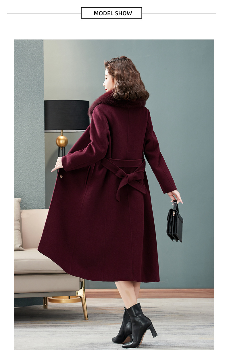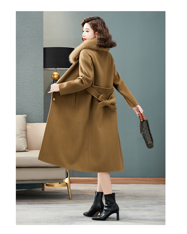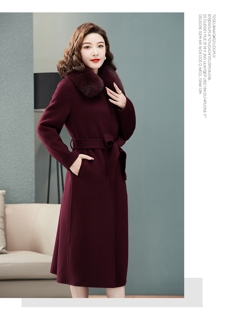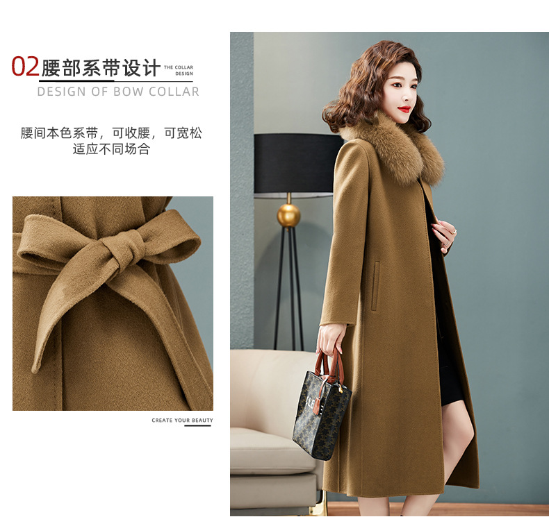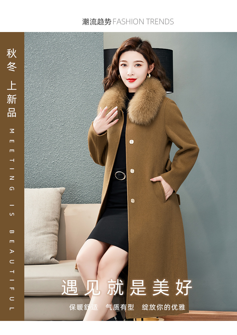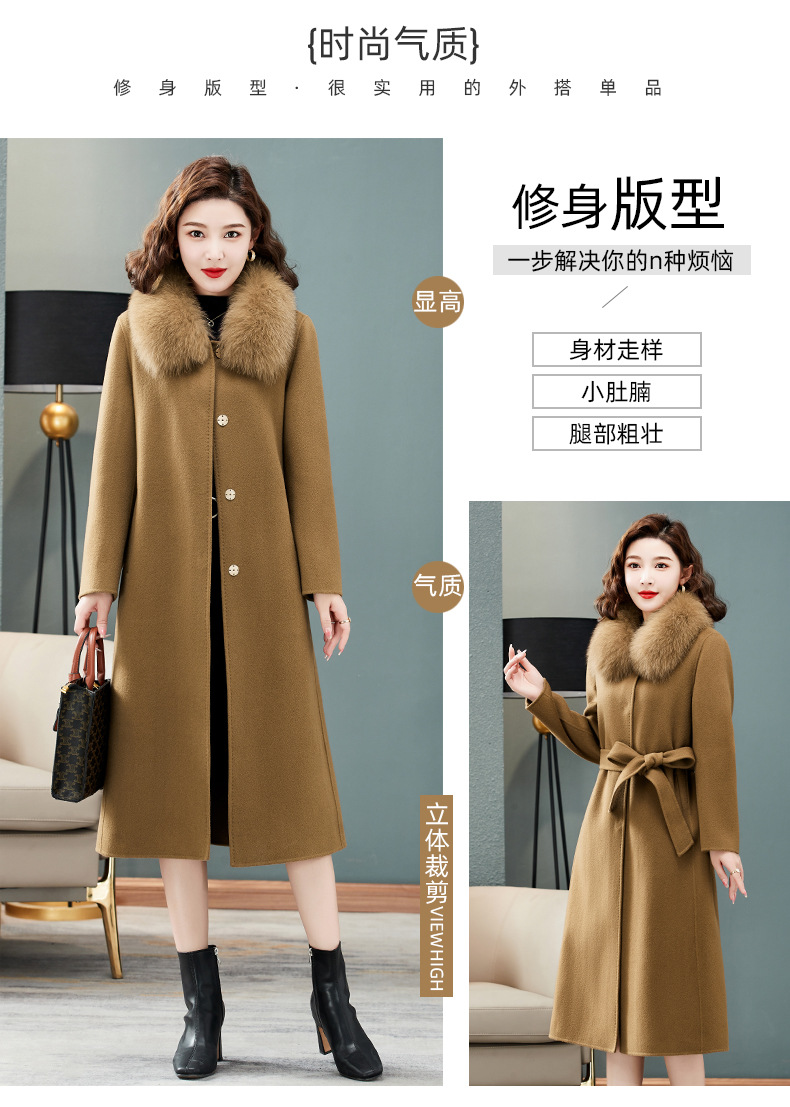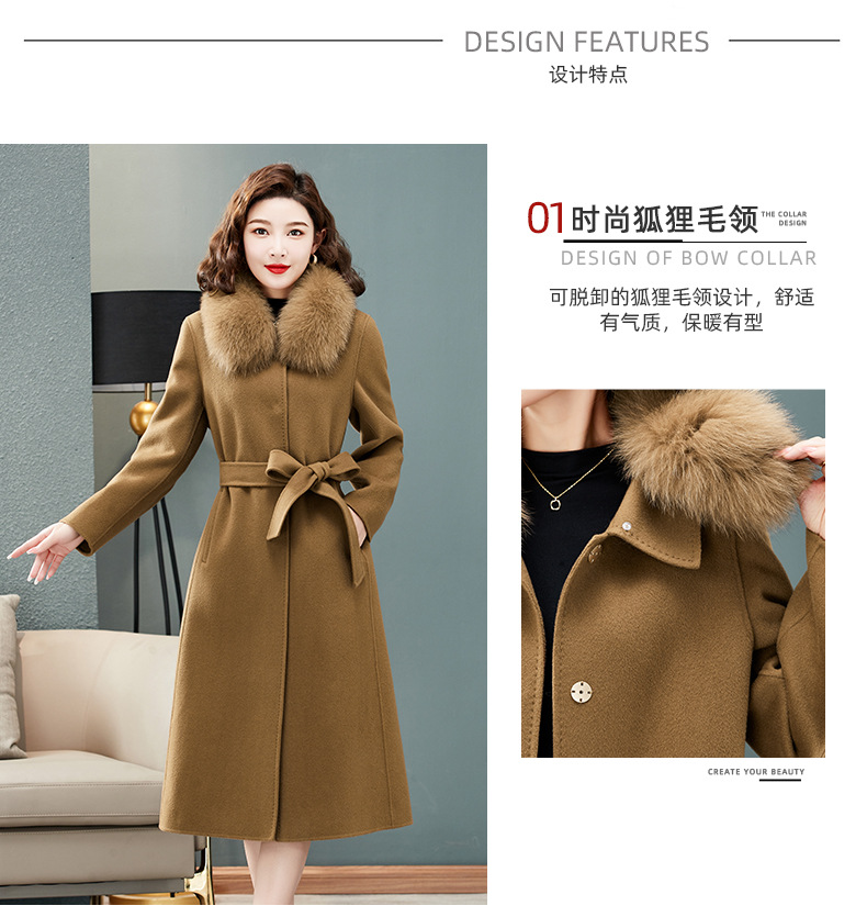 双面羊绒大衣,狐狸毛领中长款过膝羊毛呢子外套KQ-832A85