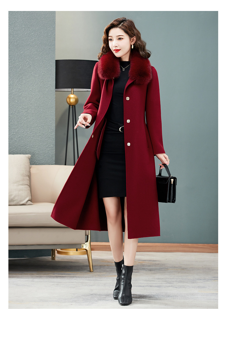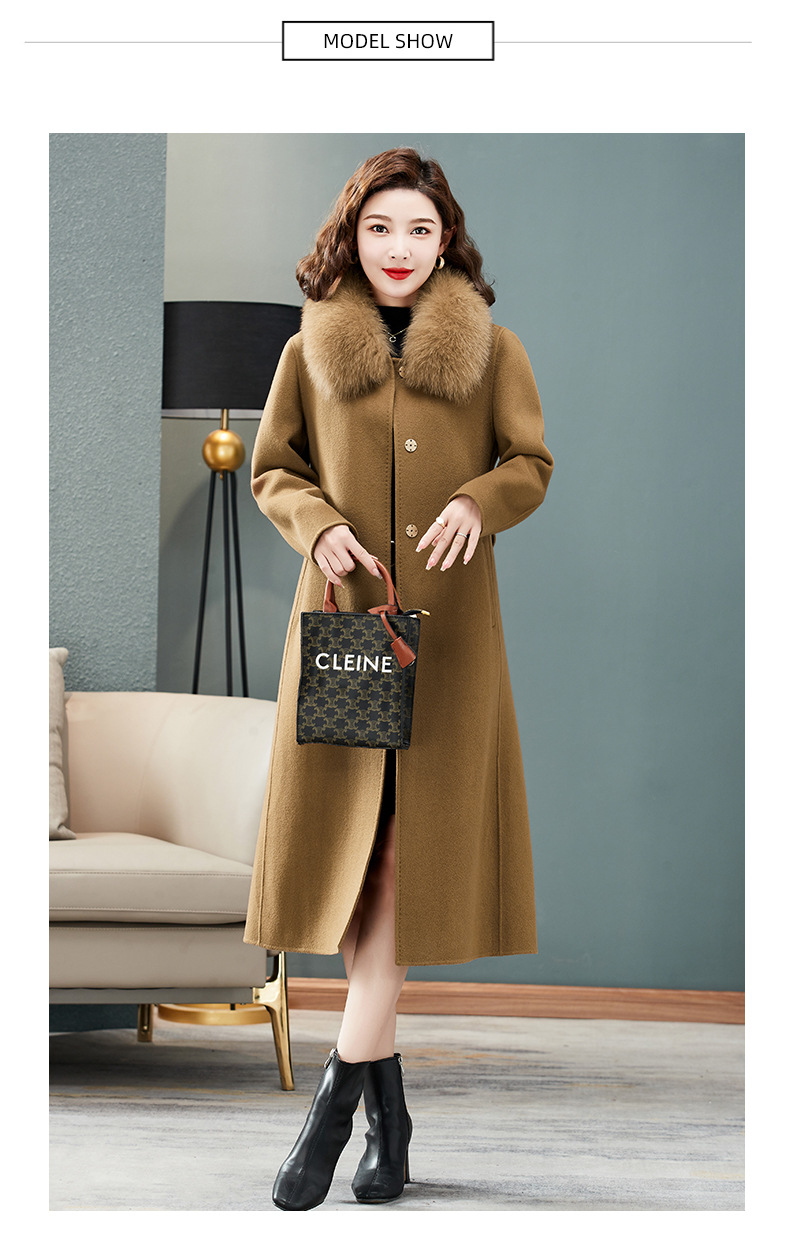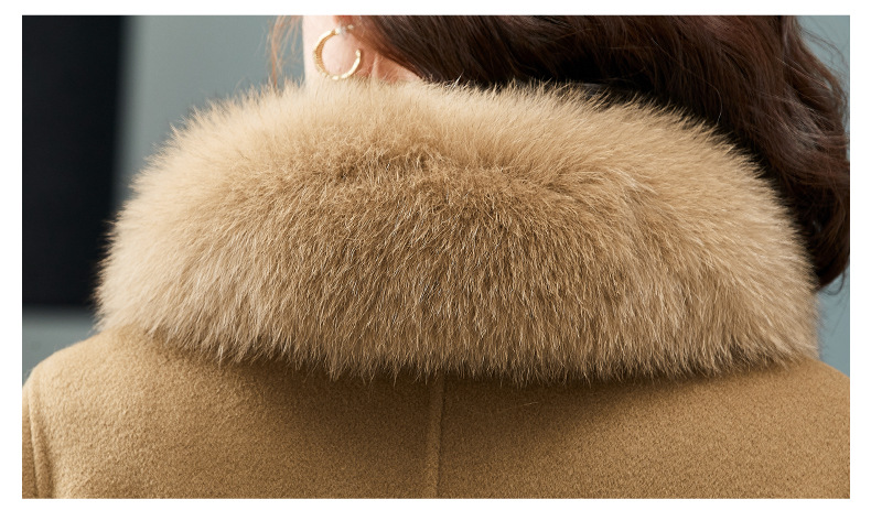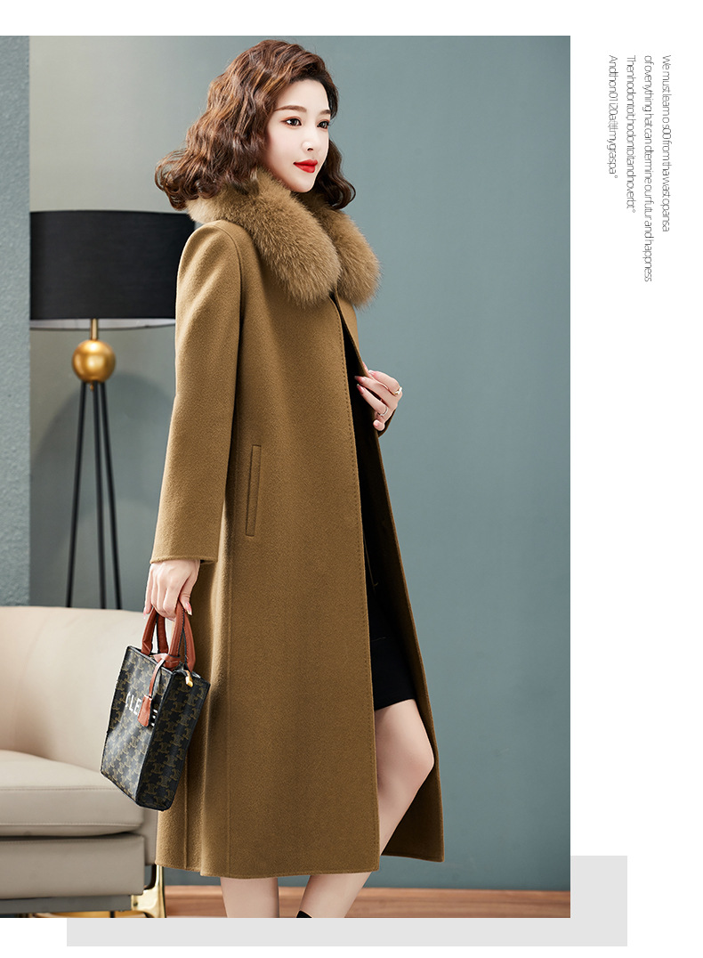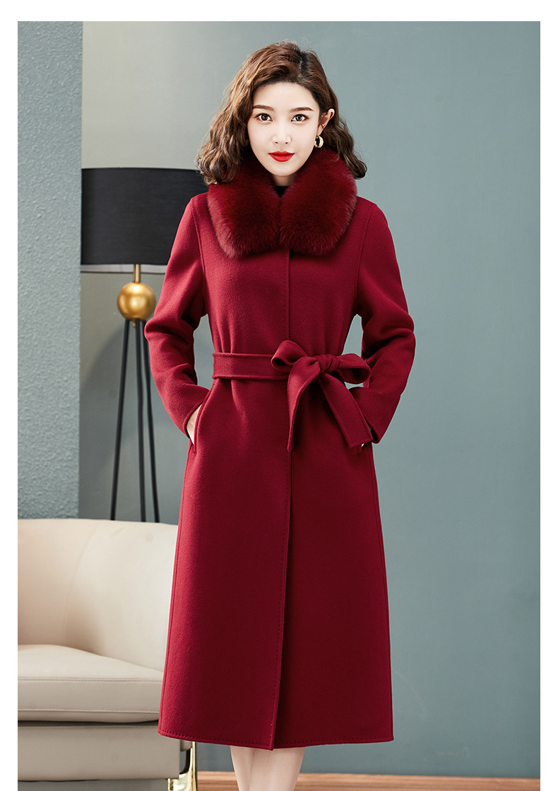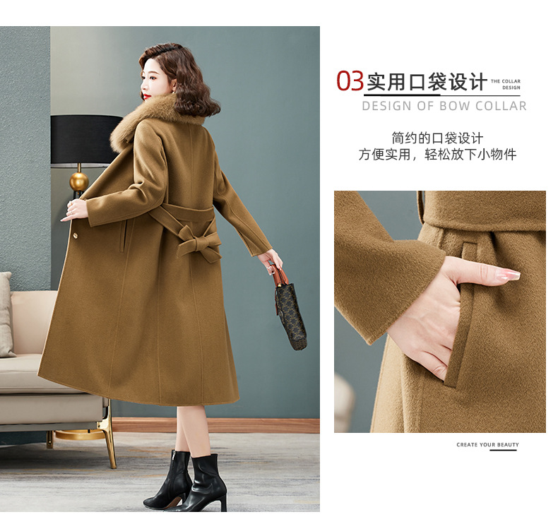 双面羊绒大衣,狐狸毛领中长款过膝羊毛呢子外套KQ-832A85