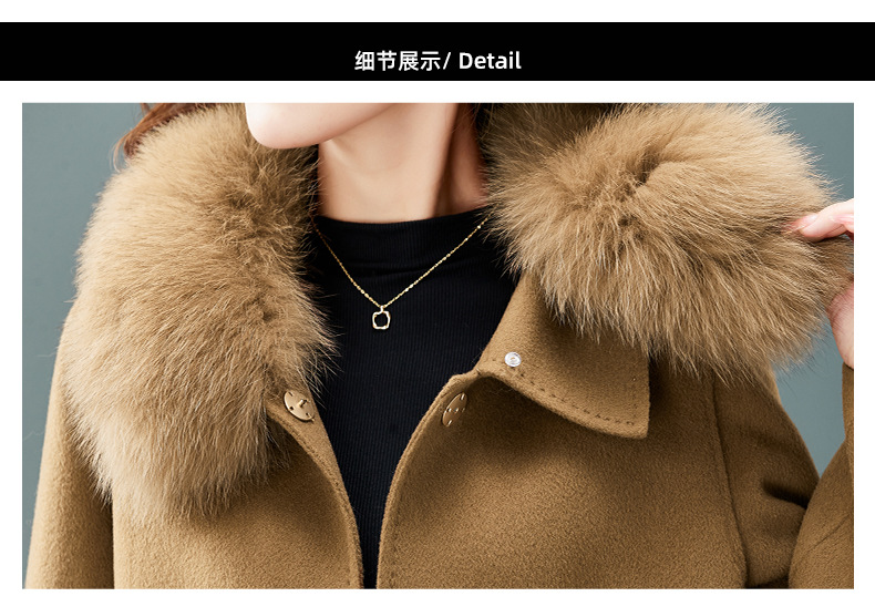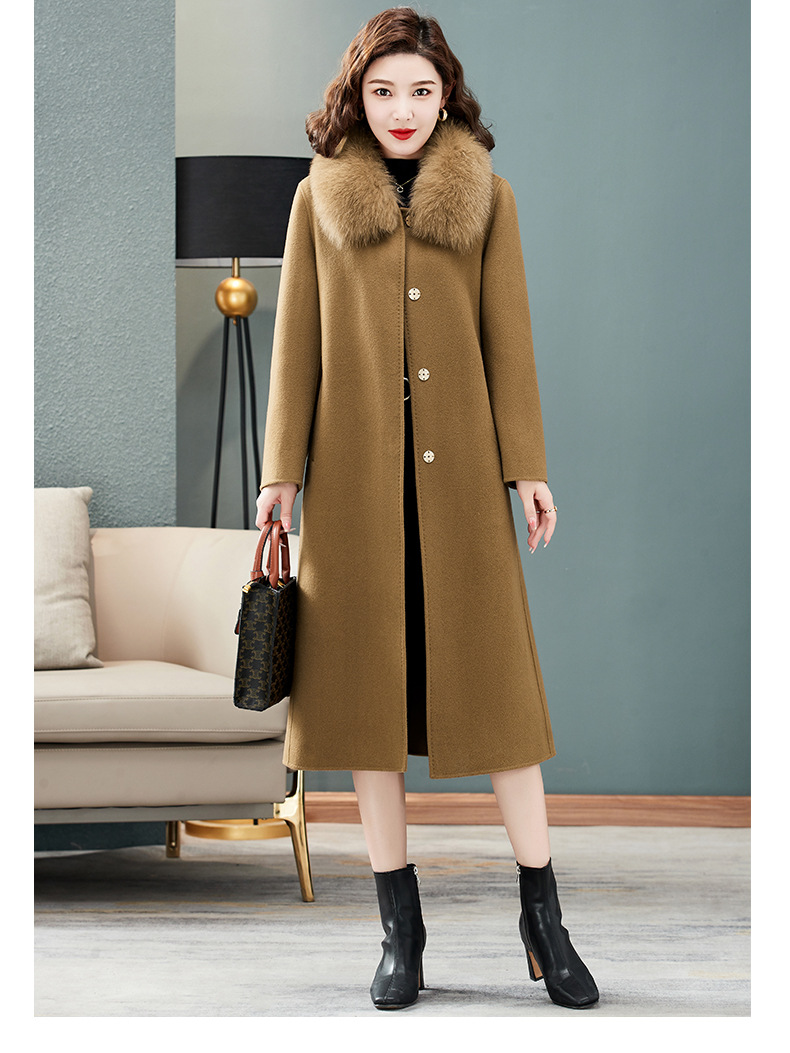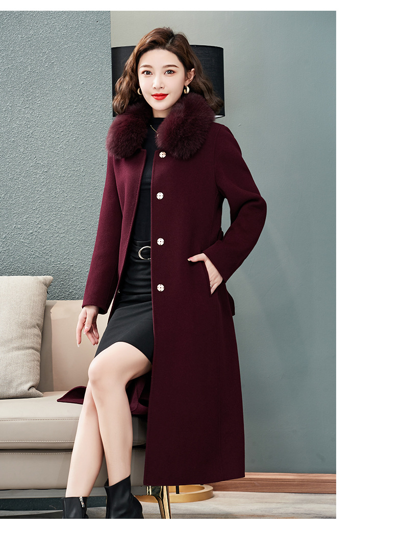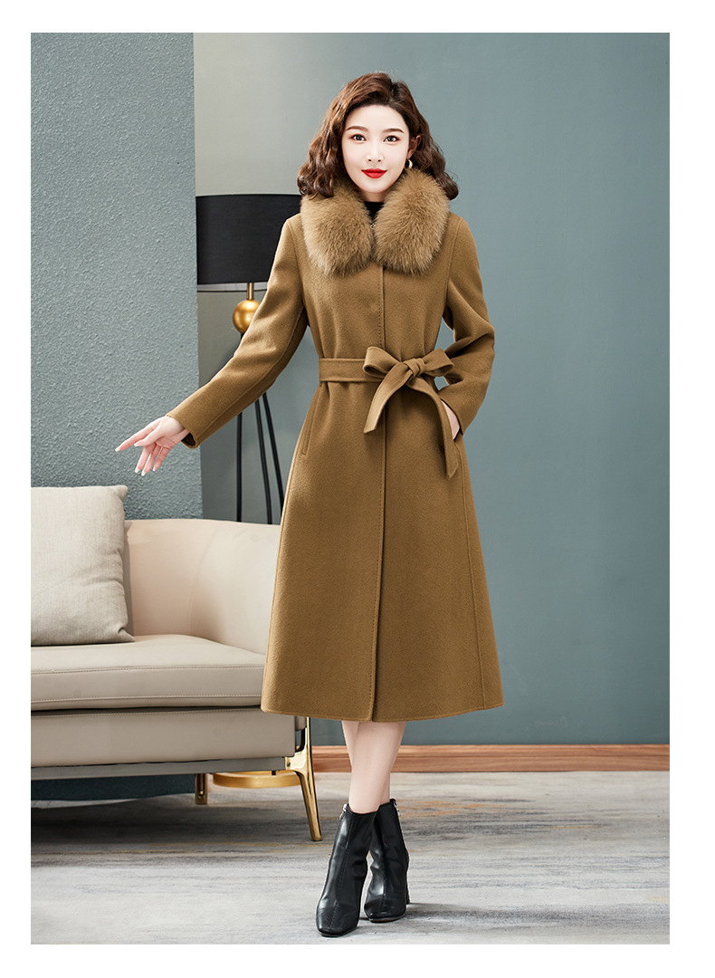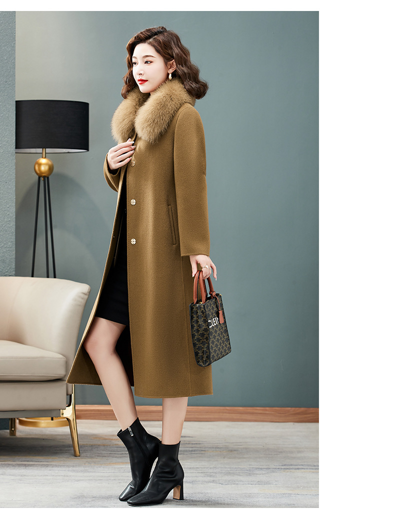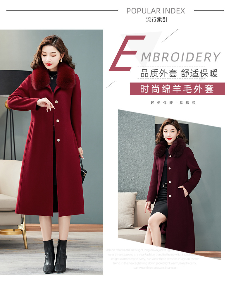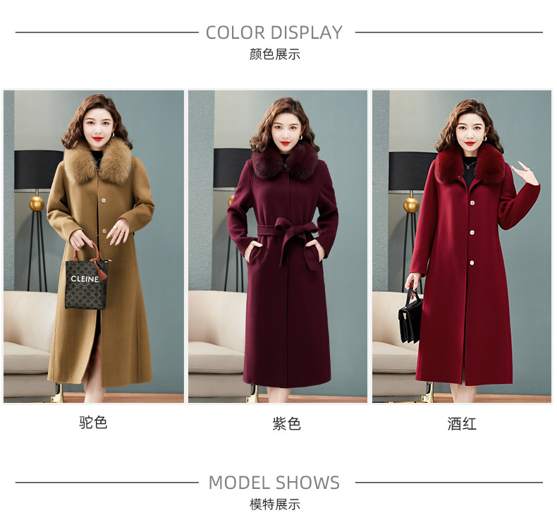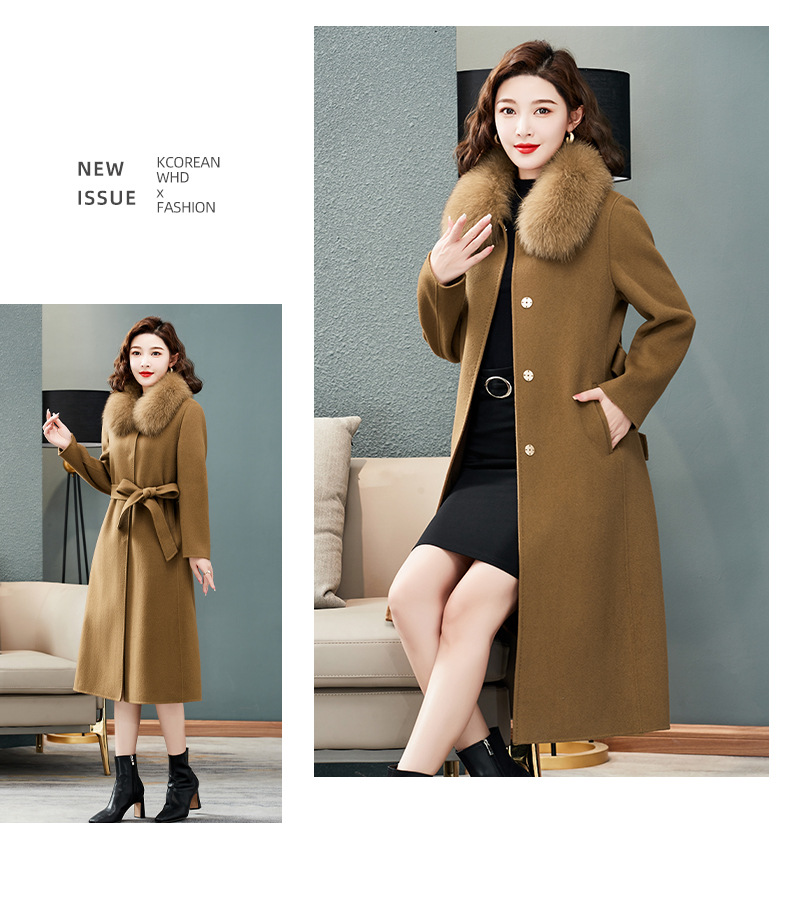 双面羊绒大衣,狐狸毛领中长款过膝羊毛呢子外套KQ-832A85