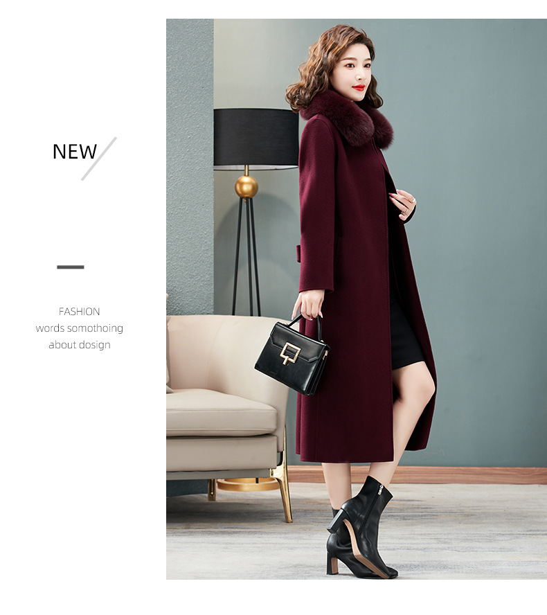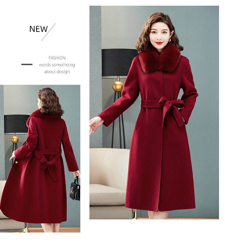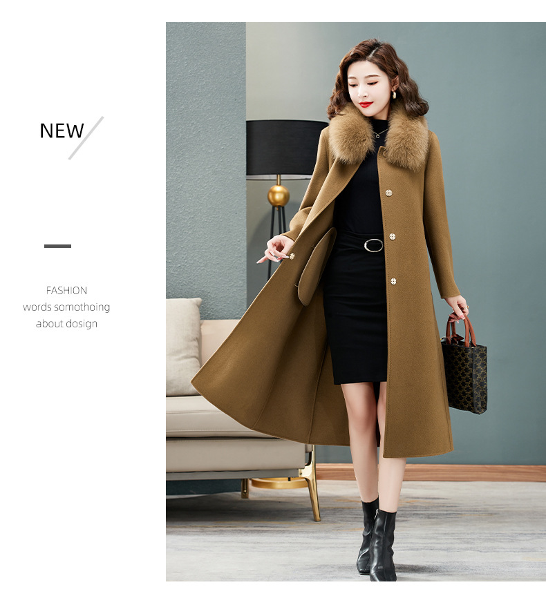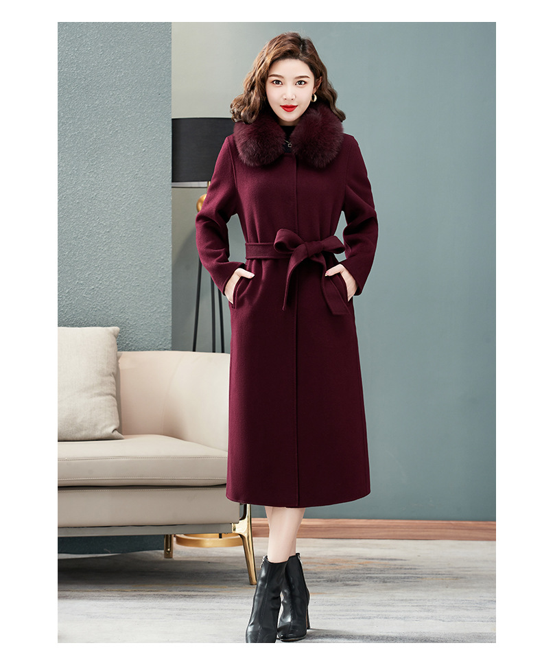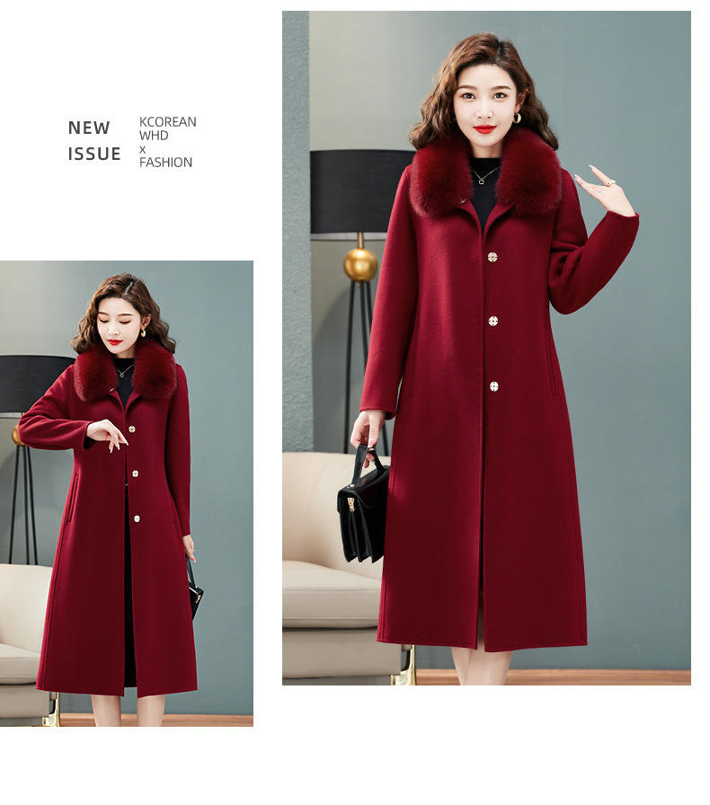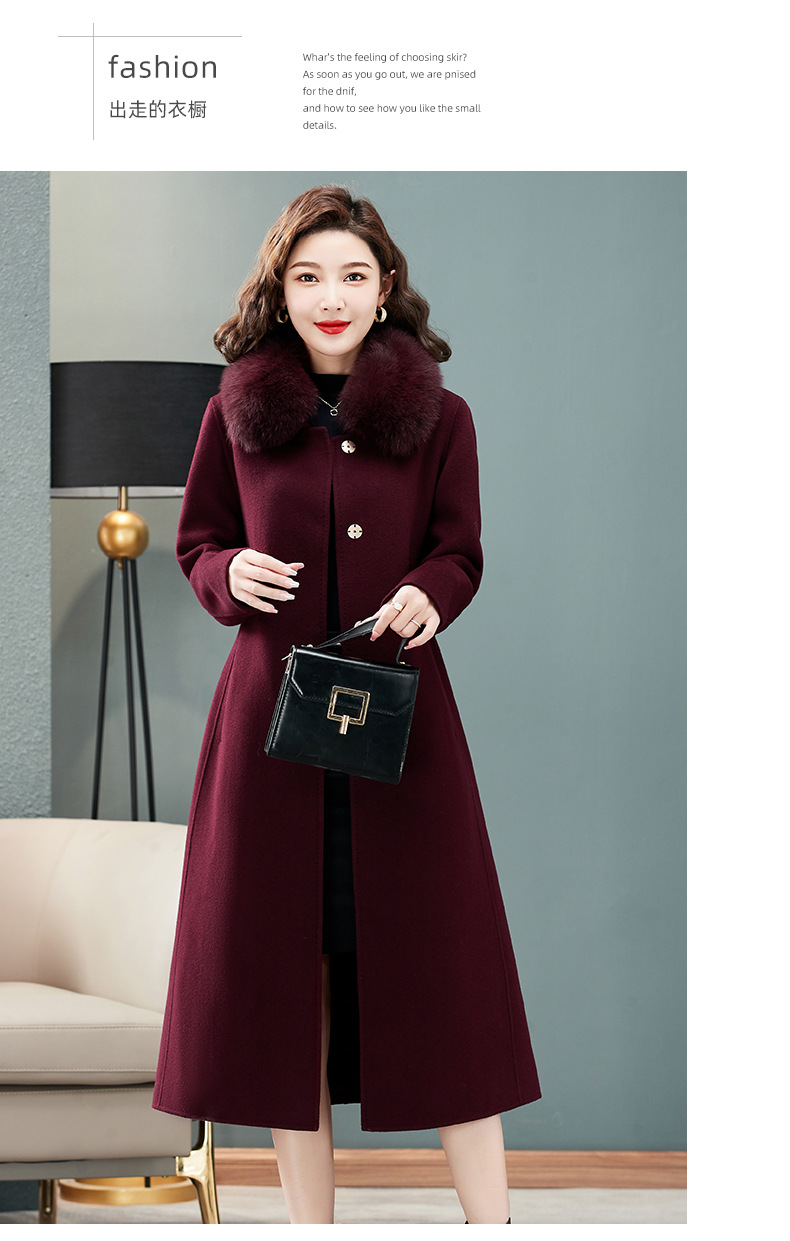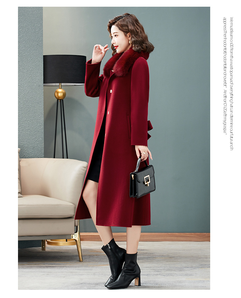 双面羊绒大衣,狐狸毛领中长款过膝羊毛呢子外套KQ-832A85
