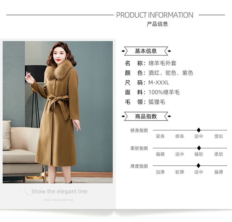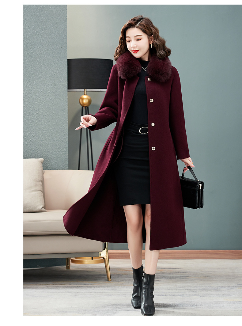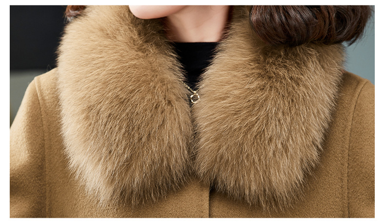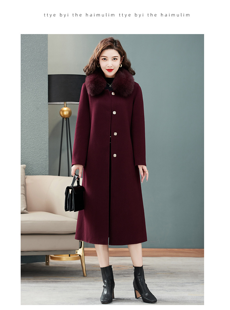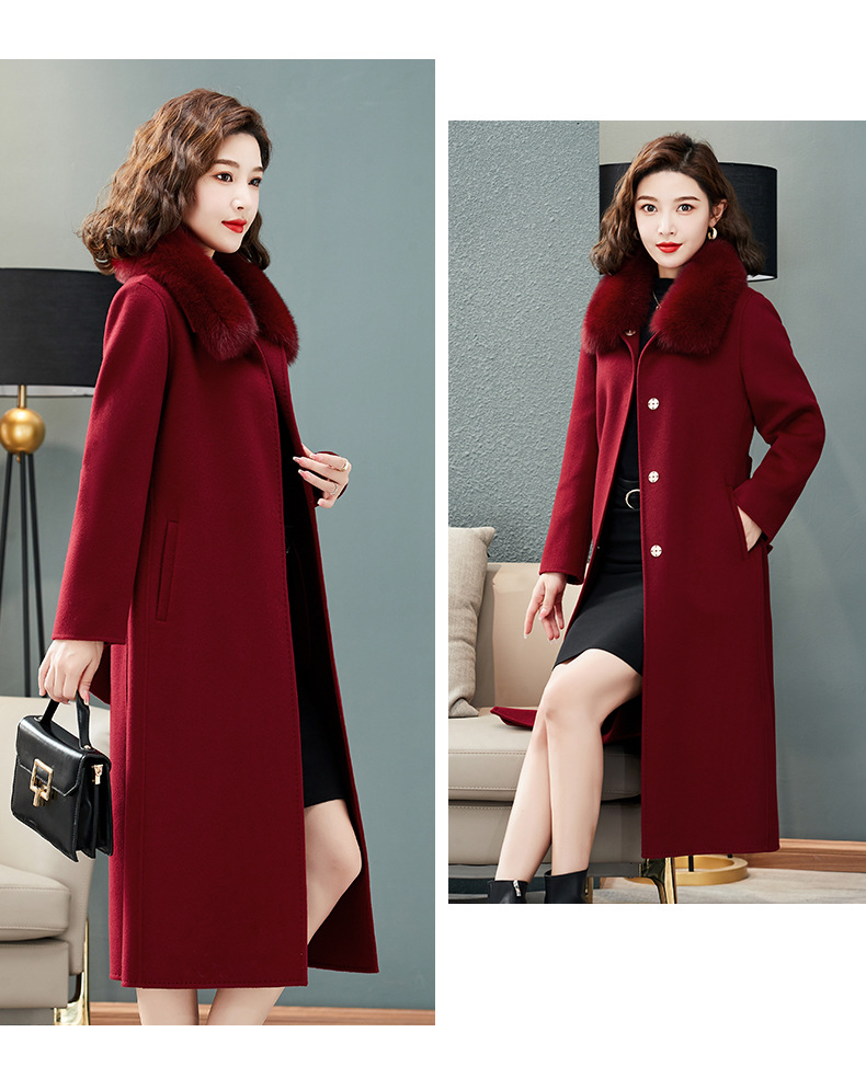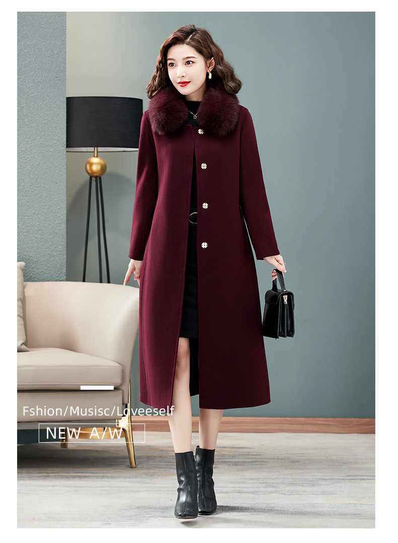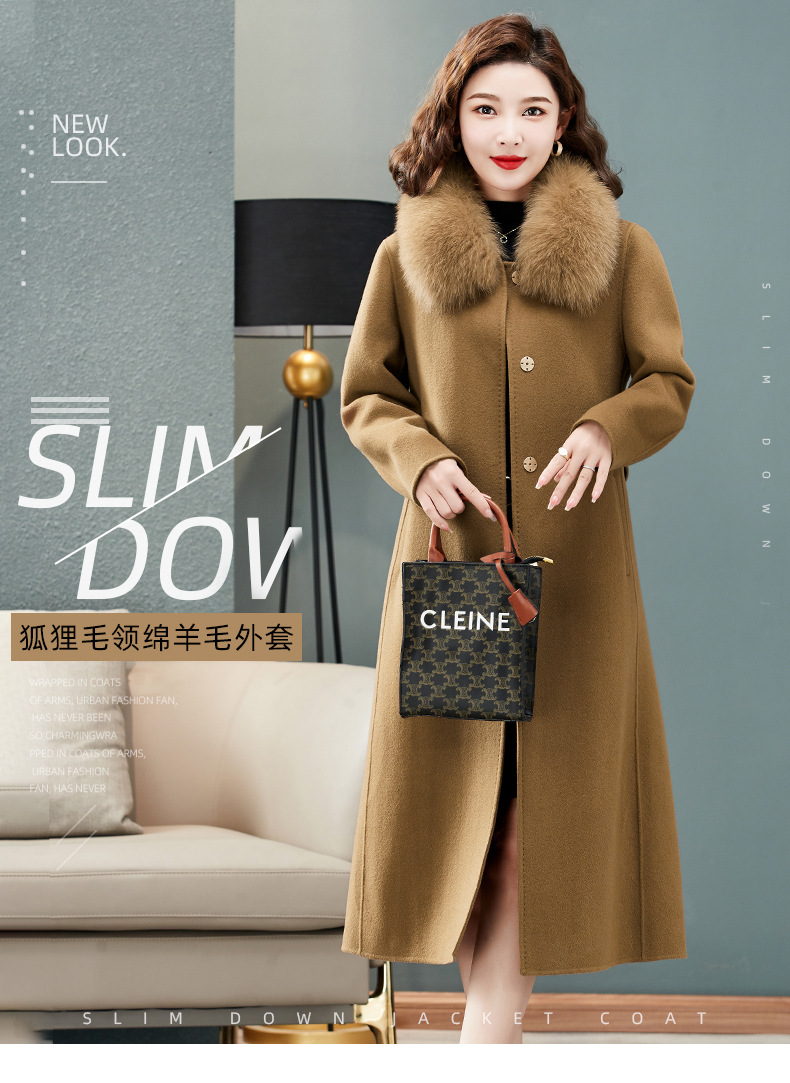 双面羊绒大衣,狐狸毛领中长款过膝羊毛呢子外套KQ-832A85