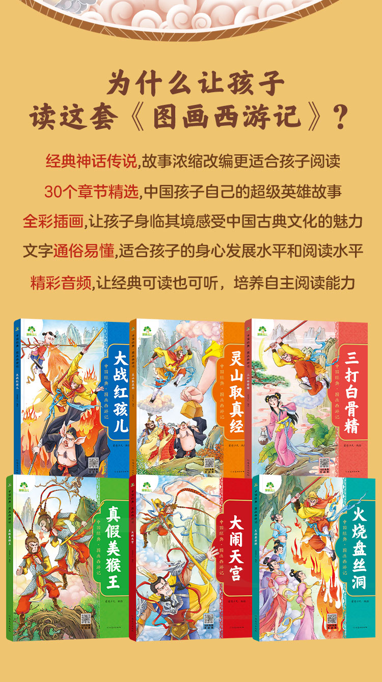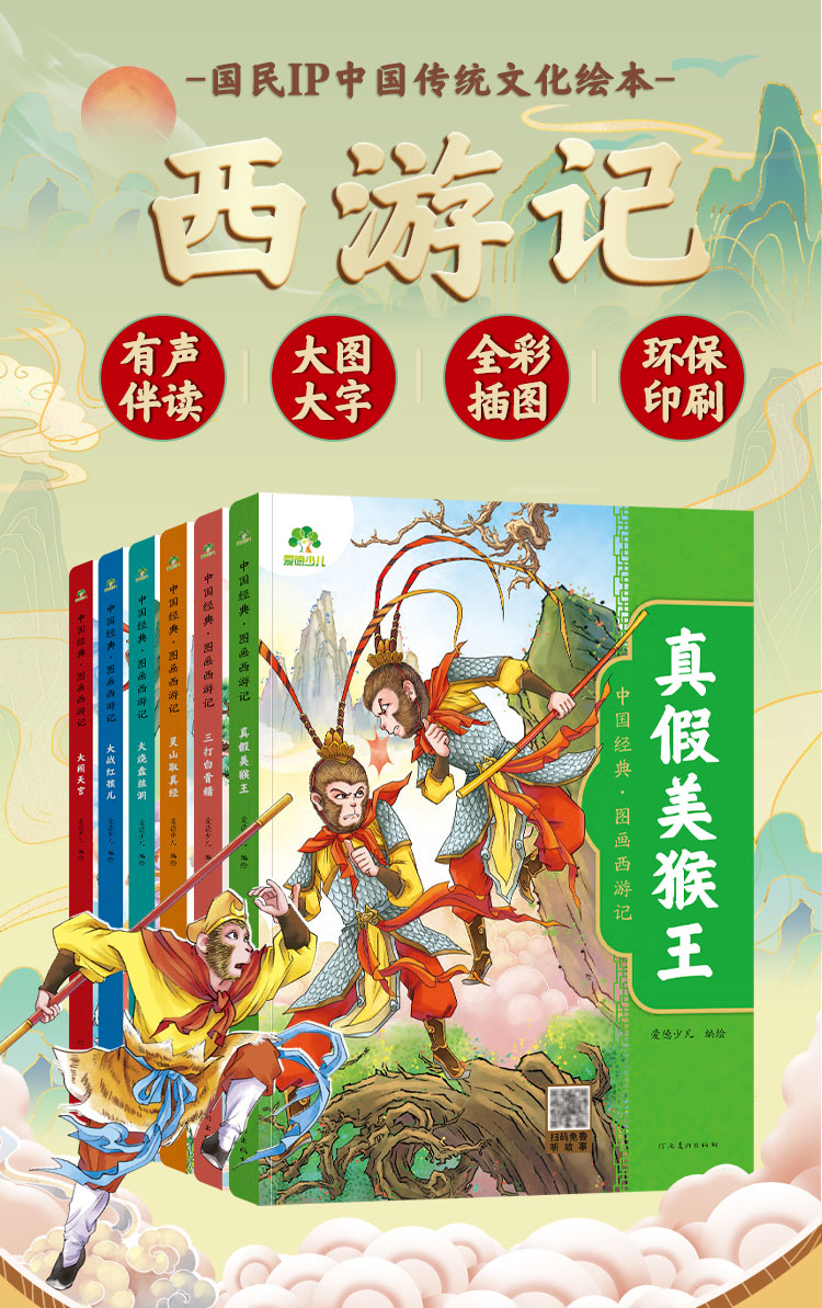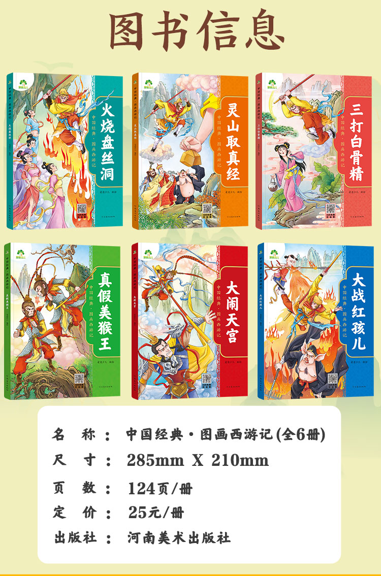 爱德少儿中国经典图画西游记全套6册儿童绘本连环画原著3-6-8岁西游记小学生版一二年级读物幼儿园故事书籍少儿读物四大名著漫画版