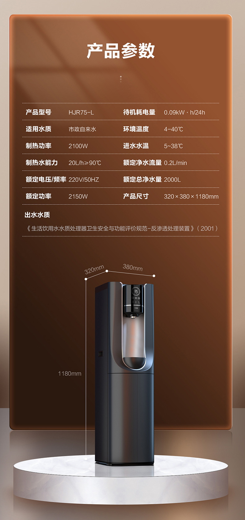 【全新黑小贝】海尔直饮加热直饮一体机即热式饮水机家用办公室立式 HJR75-L 适用5-30人