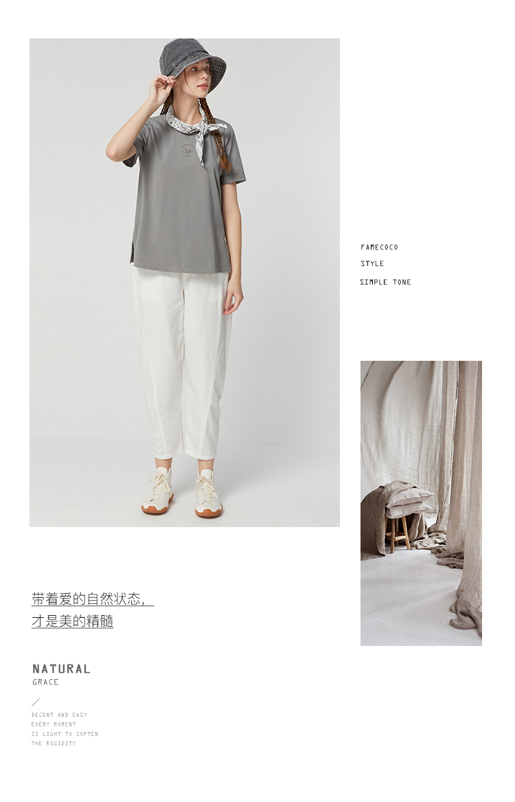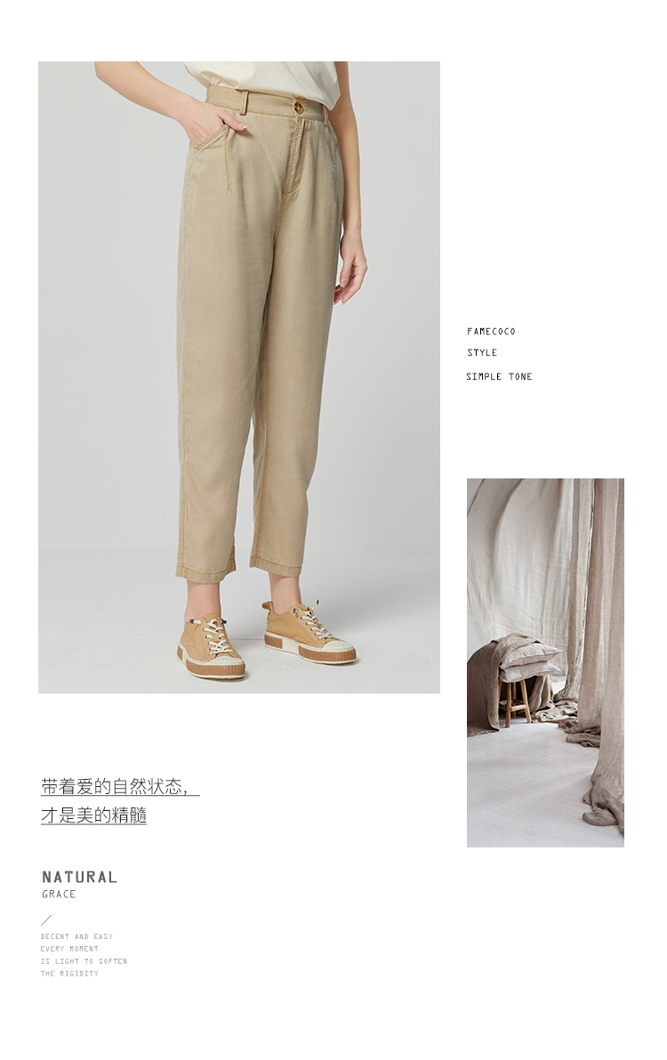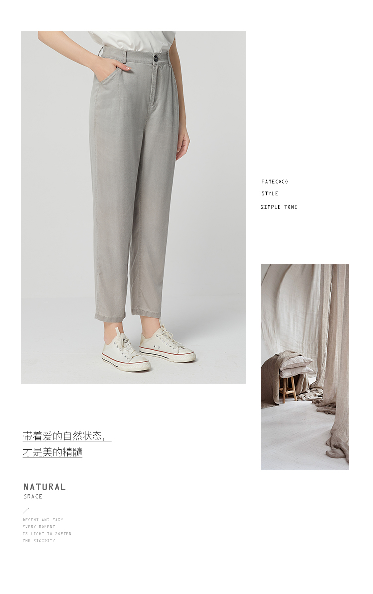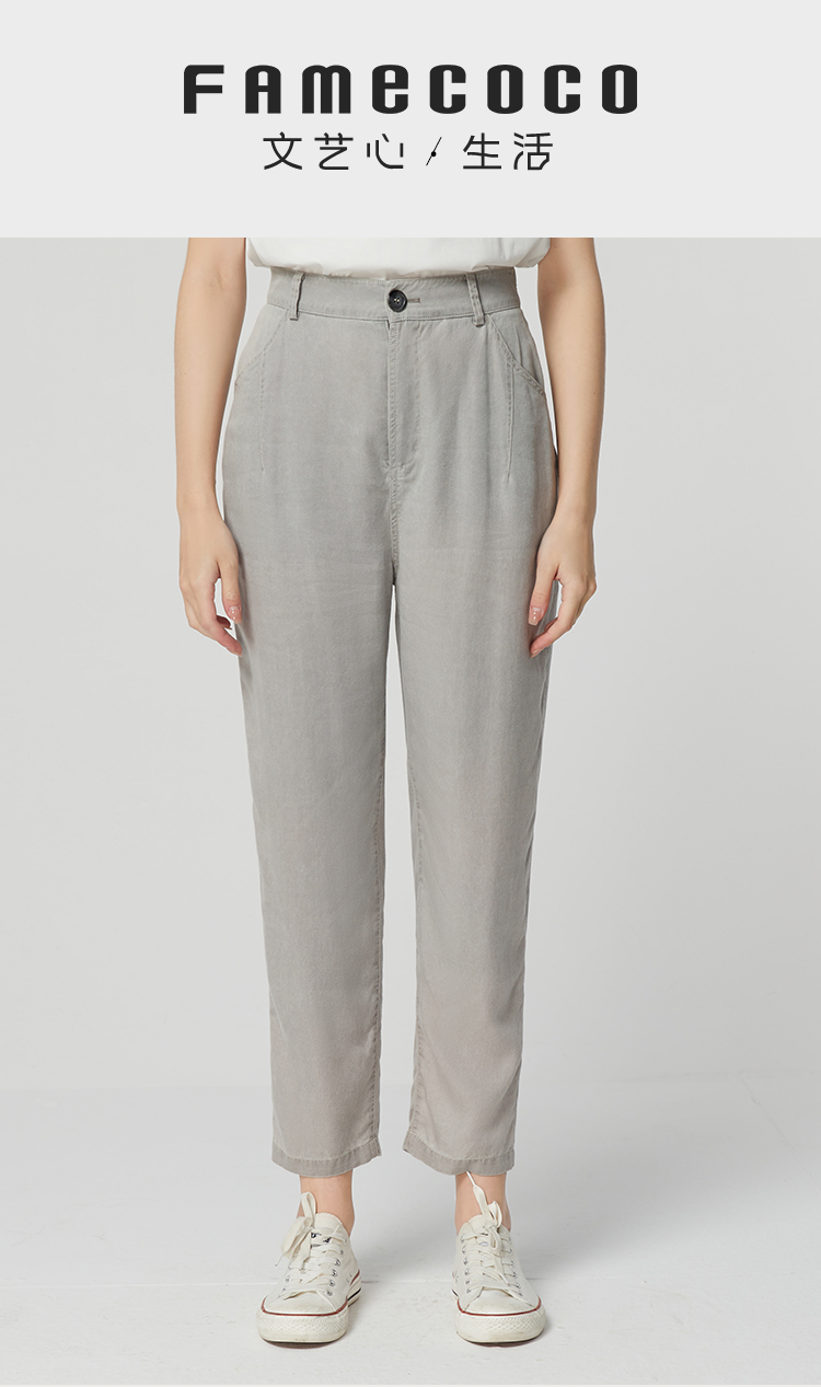 famecoco范可儿莱赛尔天丝裤垂感高级感新款夏季宽松休闲裤女FAB3GA009