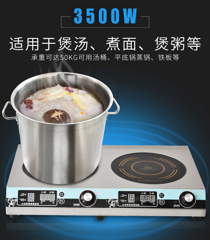 【家用电器】商用电磁炉3.5kw平面炉台式煲汤炉3500w双头组合炉定时