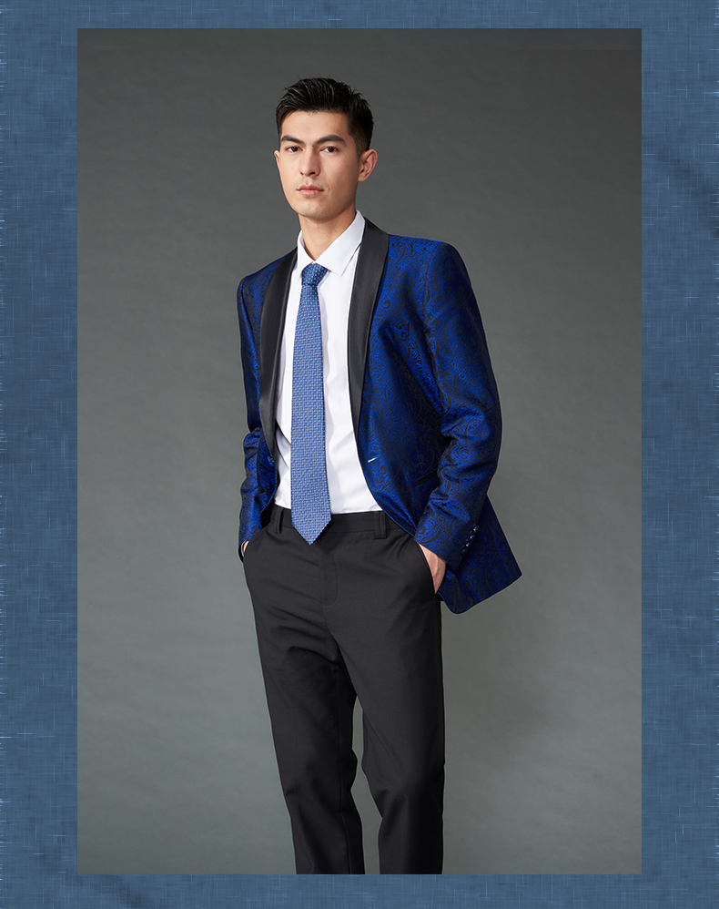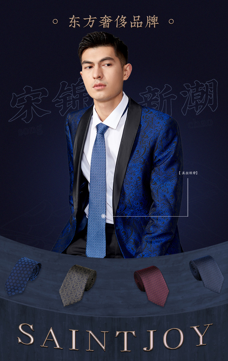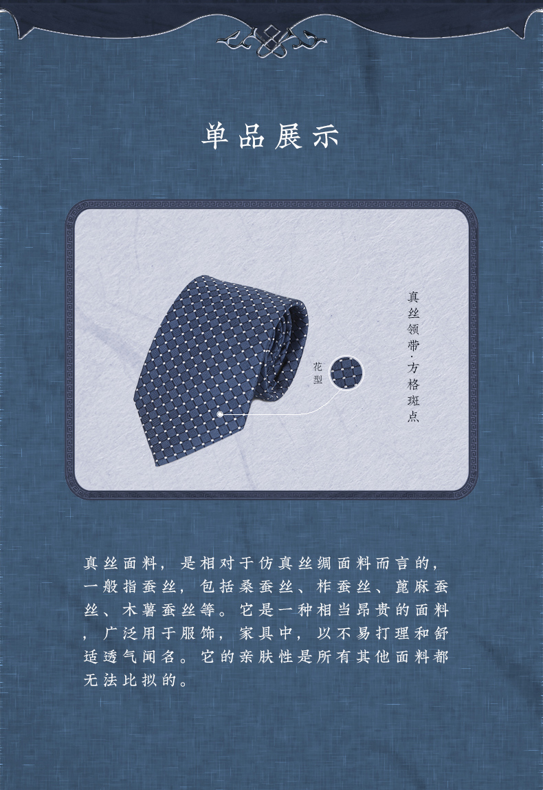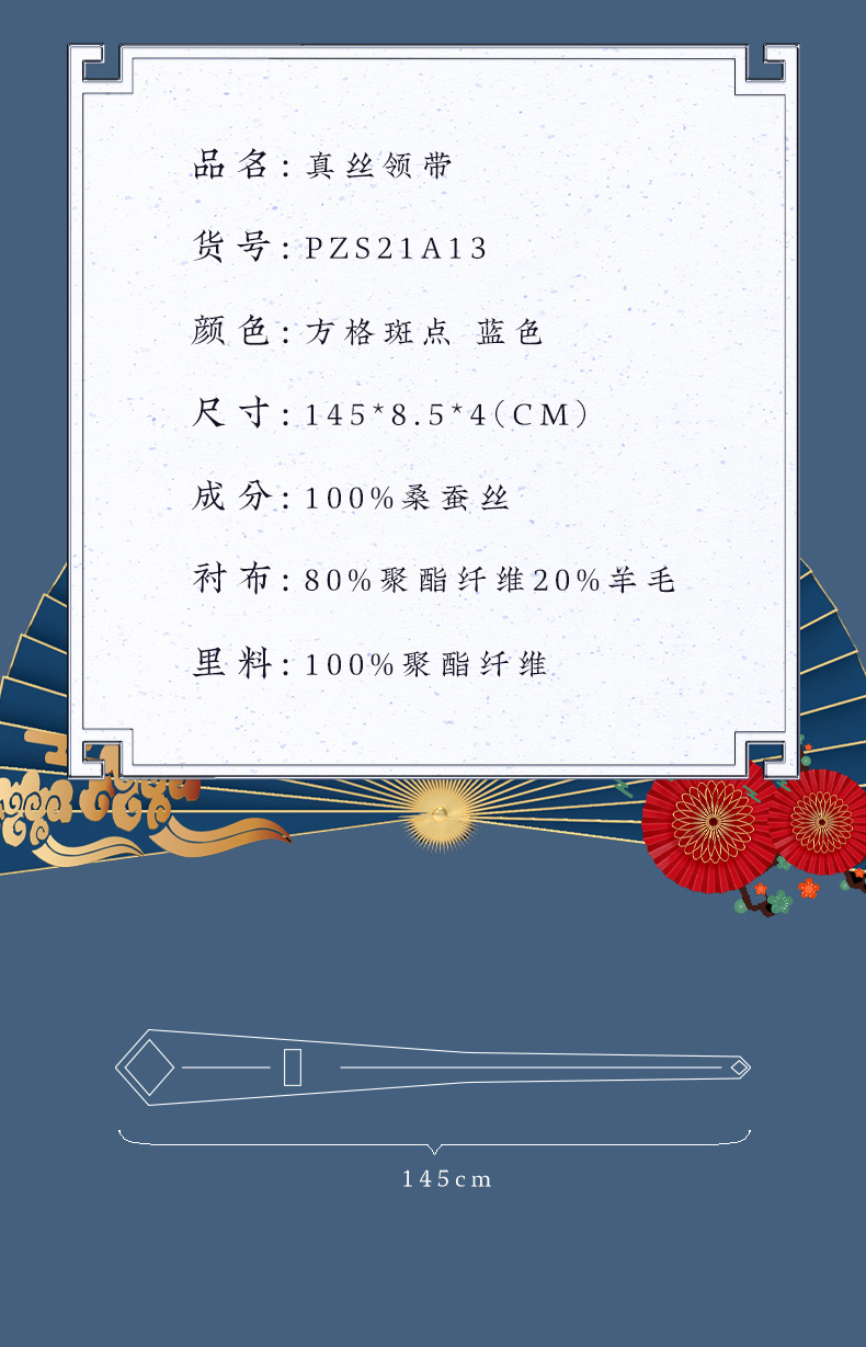 SAINTJOY/上久楷 真丝领带 方格斑点蓝色 PZS21A13
