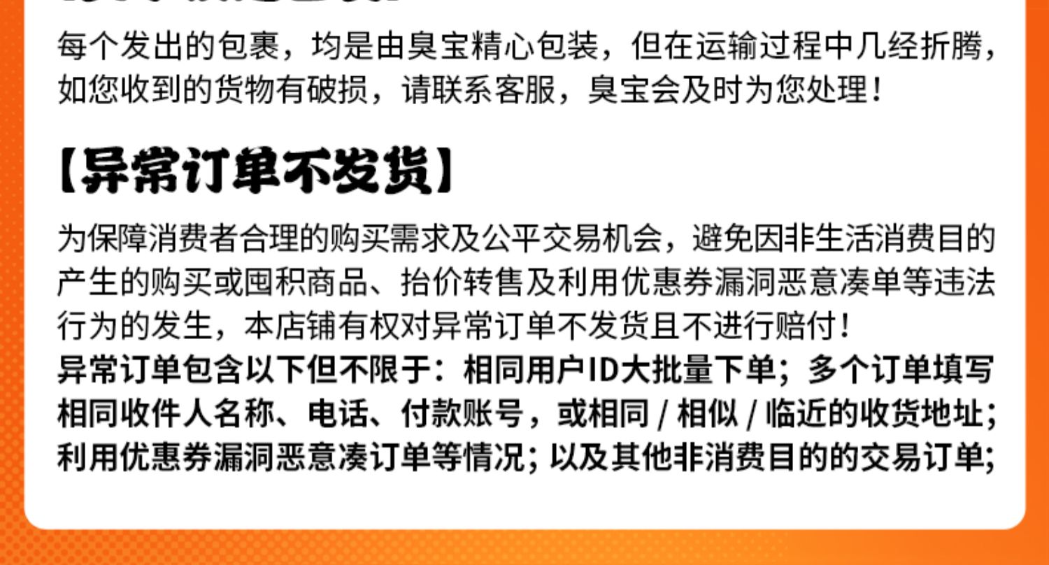 1、本产品下单后不支持7天无理由退换货,不支持拦截和拒收,请您谨慎下单。