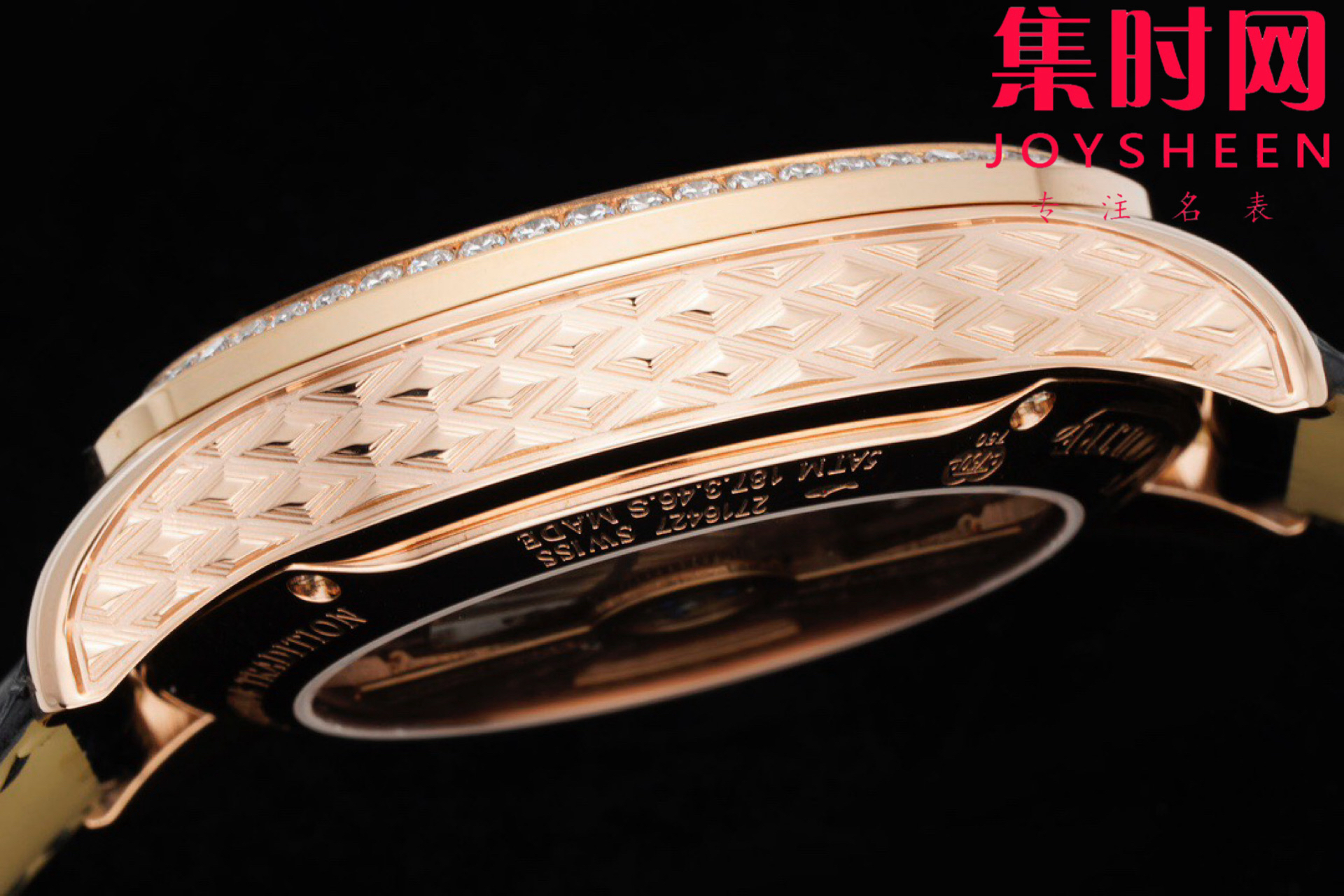 这款腕表采用一枚蓝宝石水晶玻璃表镜,表镜透光清晰,将精美钻石的火彩映衬的更加璀璨夺目。