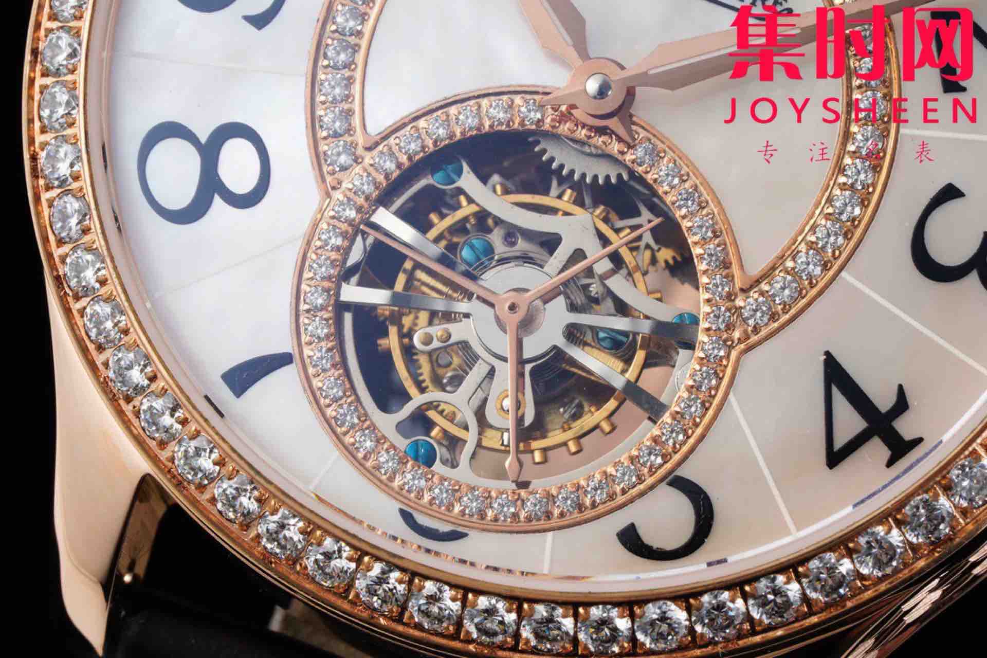 RMS积家约会陀飞轮系列 真陀飞轮 男士腕表 表径43mm 专为钟情于华丽与精密制表的男性而设计,直径43毫米的约会系列陀飞轮腕表是悠久制表传统与精湛技艺的完美结晶。此款时计配备自动上链真陀飞轮机械机芯,并搭载zui负盛名、最为迷人的钟表复杂功能之一:陀飞轮。积家将精密制表与美学设计巧妙结合,透过这件珠宝珍品的黄金、钻石及珍珠母贝镶嵌装饰,可见流转旋动的芯,随分分秒秒跃动不息。今天腕表之家为大家带来的是积家约会系列陀飞轮腕表
