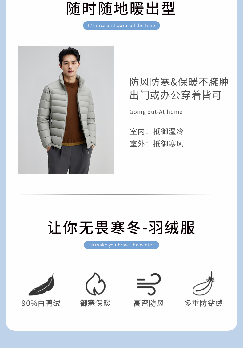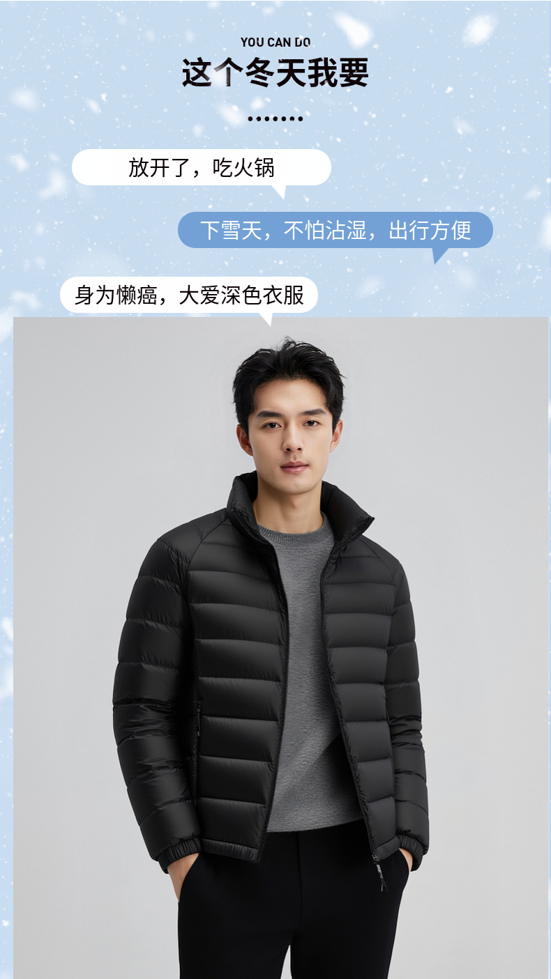 【鸭绒】圣得西男士轻薄羽绒服2025年秋冬款立领轻便薄款保暖外套