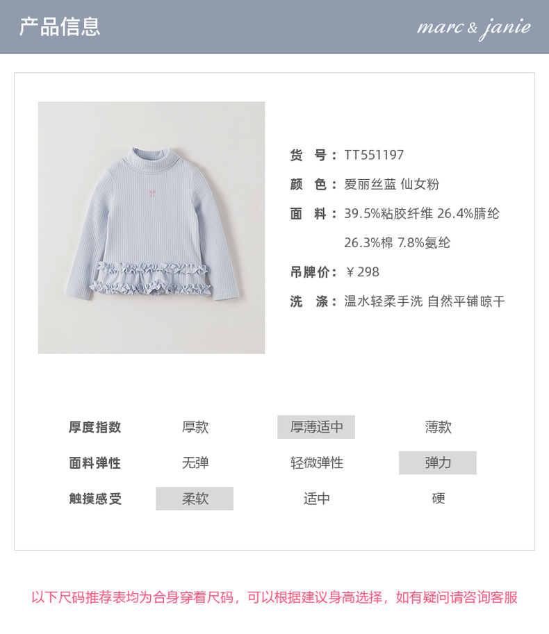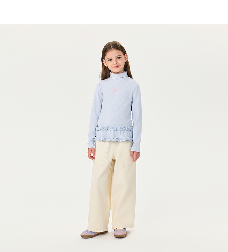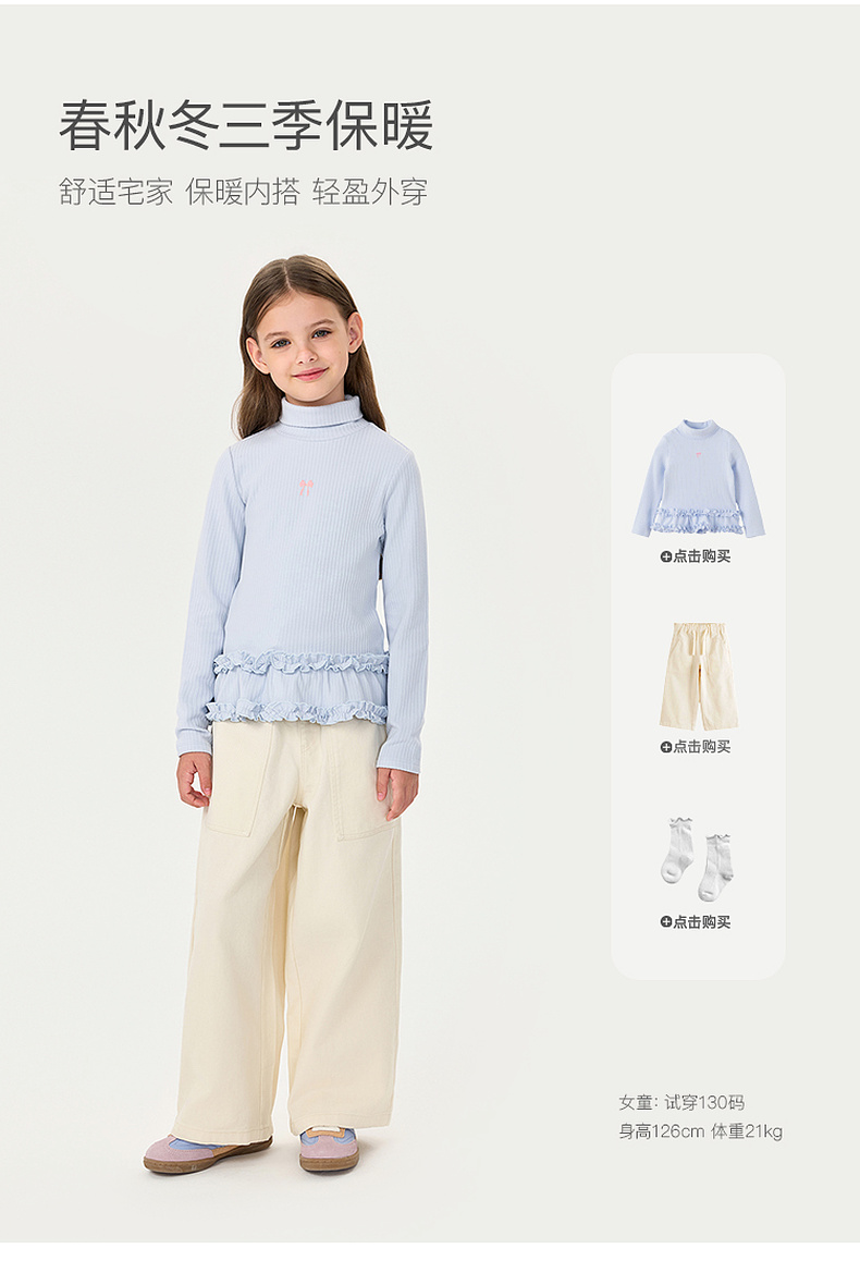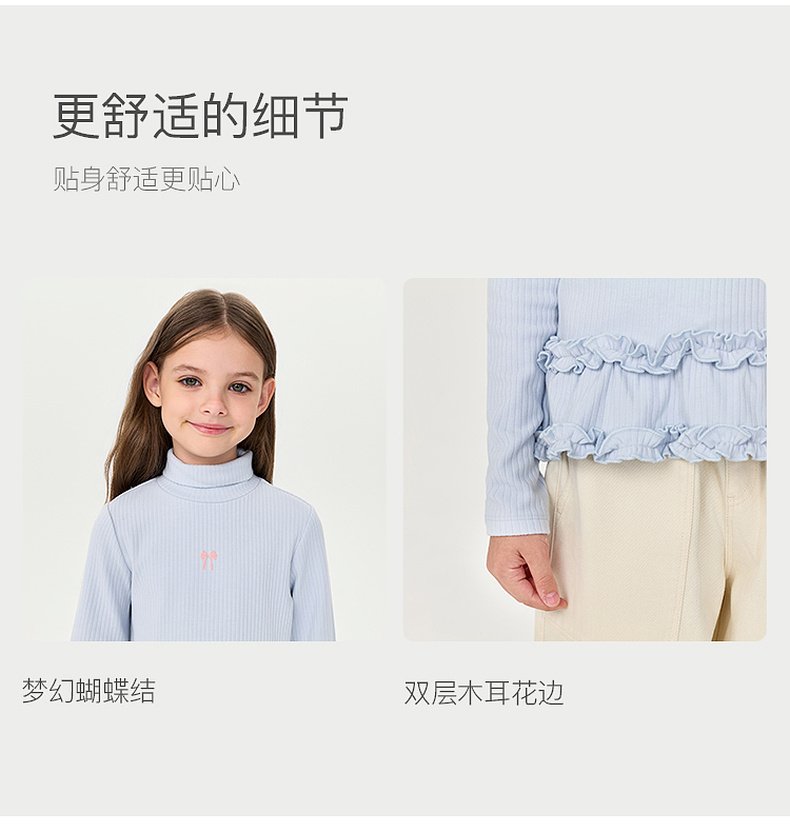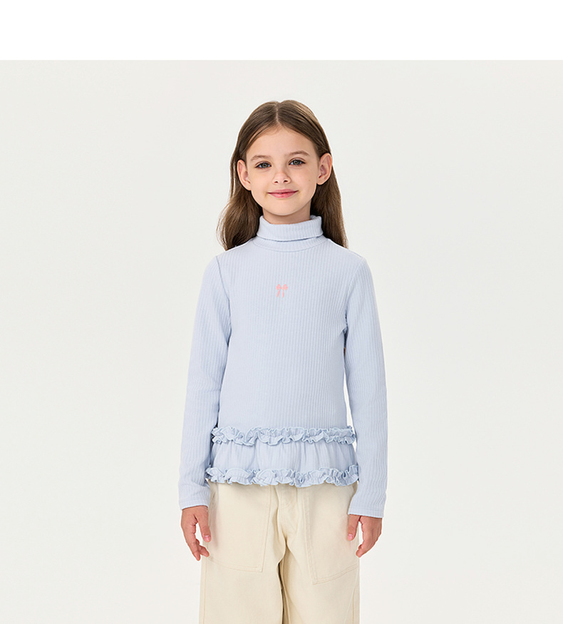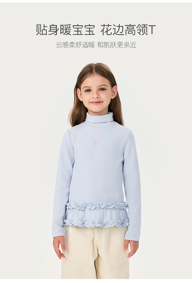 【科技发热】马克珍妮女童保暖花边高领T恤2025年秋冬新款551197