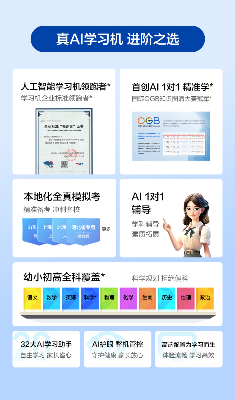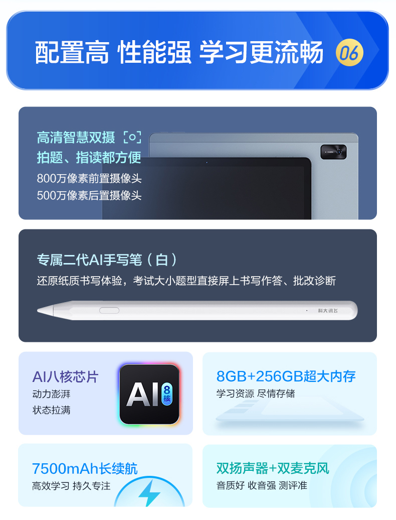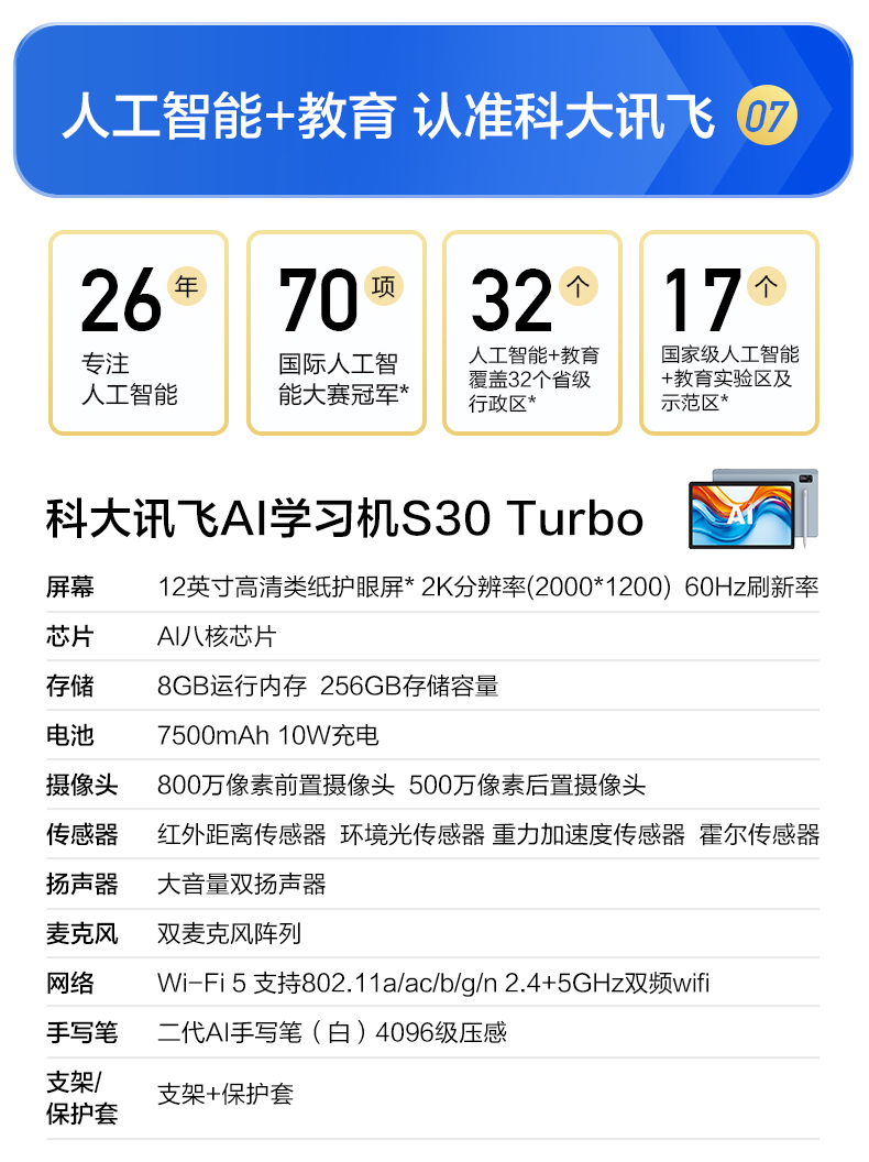 科大讯飞S30Turbo人工智能学习机AI家教机小学初中高中通用平板电脑精准学辅导