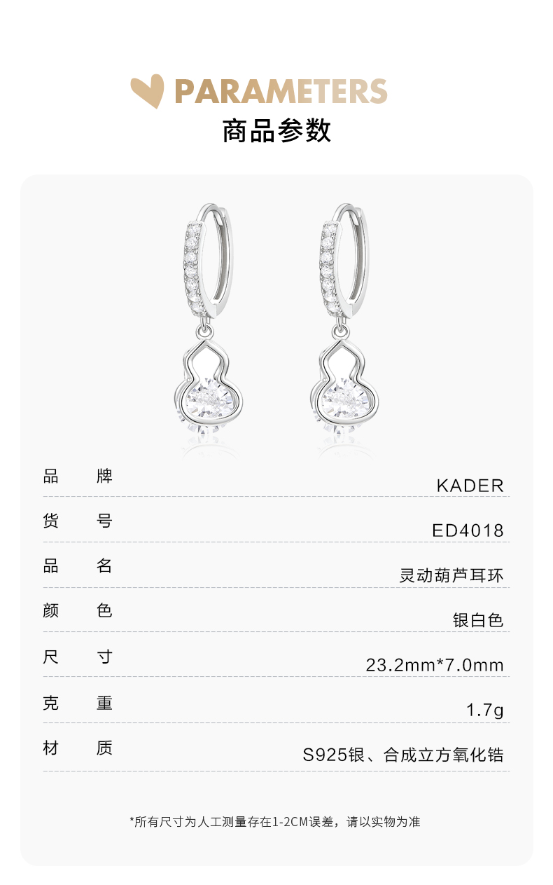 KADER卡蒂罗 灵动葫芦耳环 925银吉祥福禄设计灵动俏皮耳饰 甜美可爱浪漫百搭配饰 女神节礼盒装
