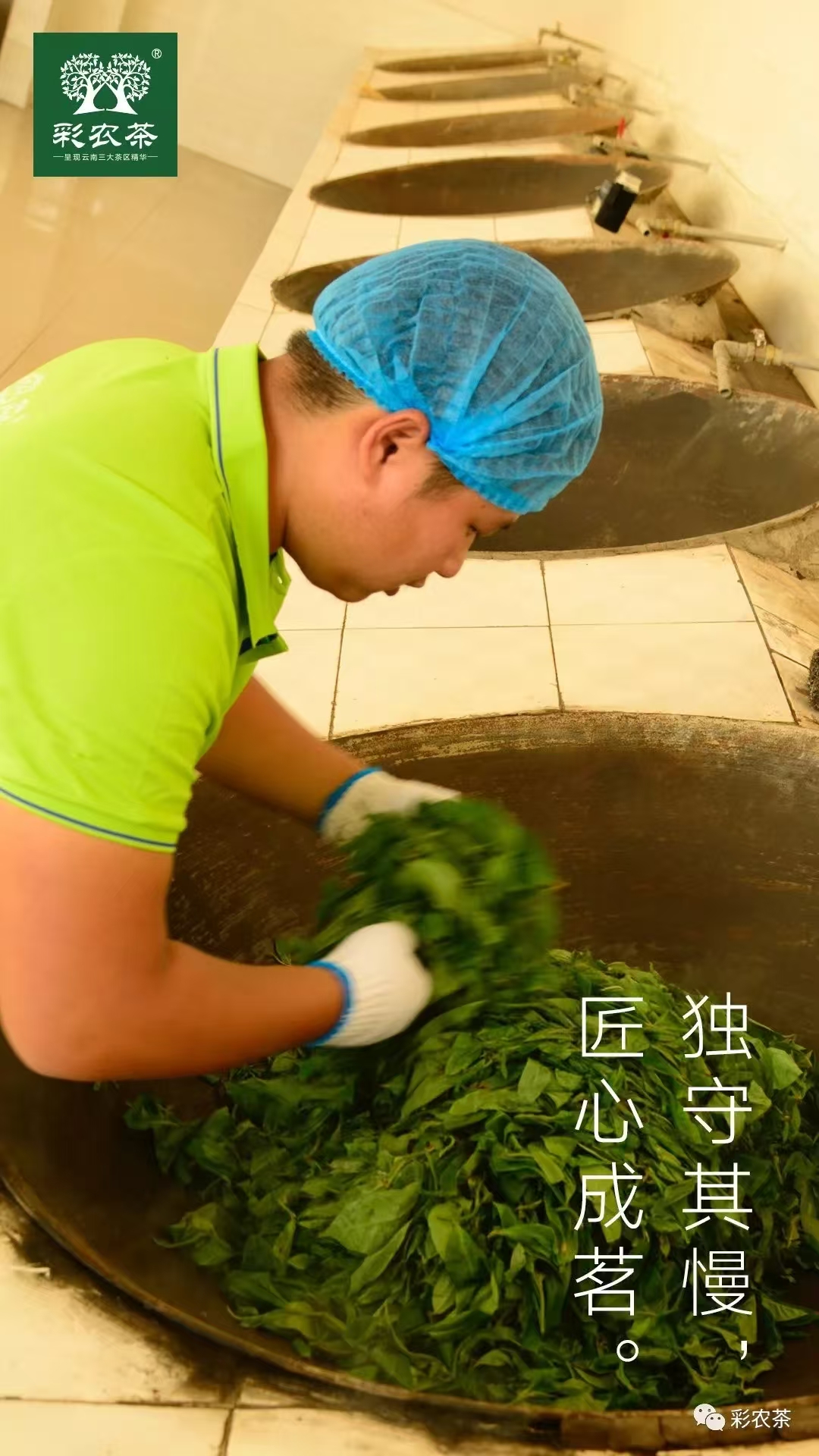 对于勐海小饼这款茶,彩农人倾注了大量的心血。小饼虽小,但无论原料还是工艺,彩农人都没有丝毫马虎。在一个以量取胜的时代,彩农茶人始终坚持全手工、全程不落地的核心工艺制茶。每一片茶叶,均为师傅一锅一锅炒制。很多时候,为了抓紧时间,彩农人常常熬到深夜还在炒茶。这种坚持,换来的是茶叶品质的稳定,且具有更高的后期醇化价值。