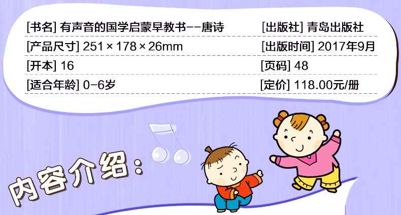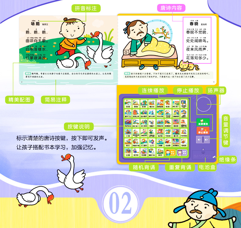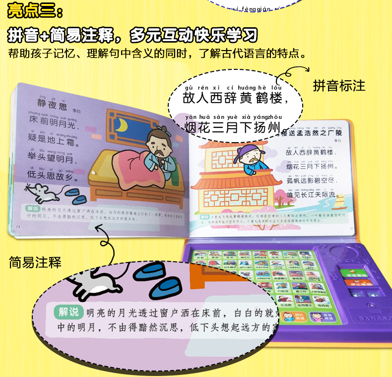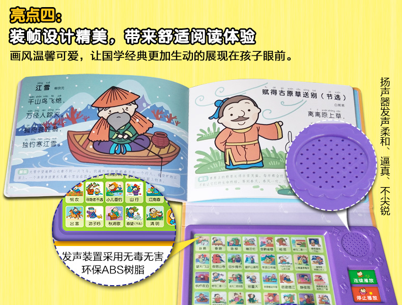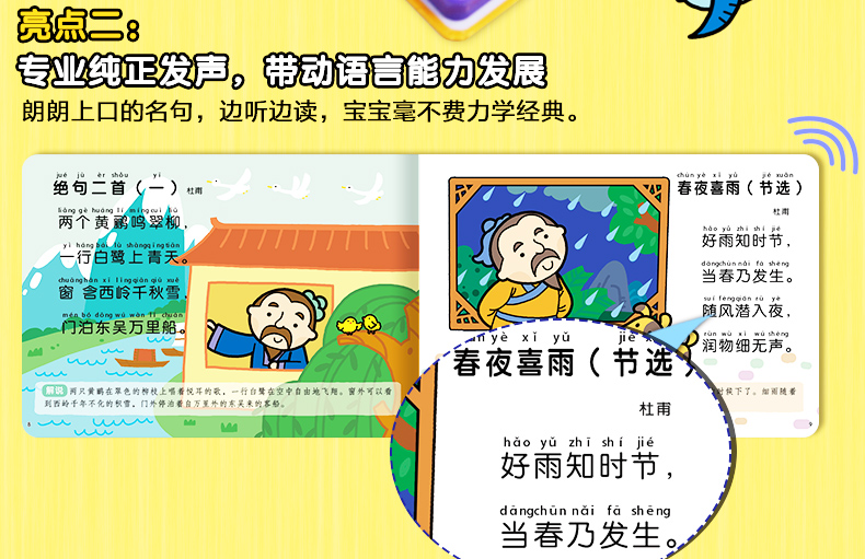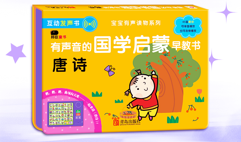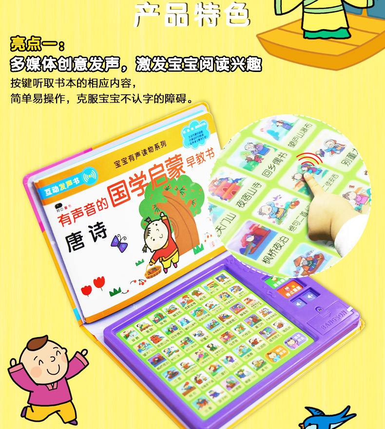 唐诗国学幼儿早教有声播放书撕不烂卡片 点读发声认知发音会说话婴儿的电子触摸儿童语音启蒙绘本0-3-6岁一岁宝宝书籍幼儿园