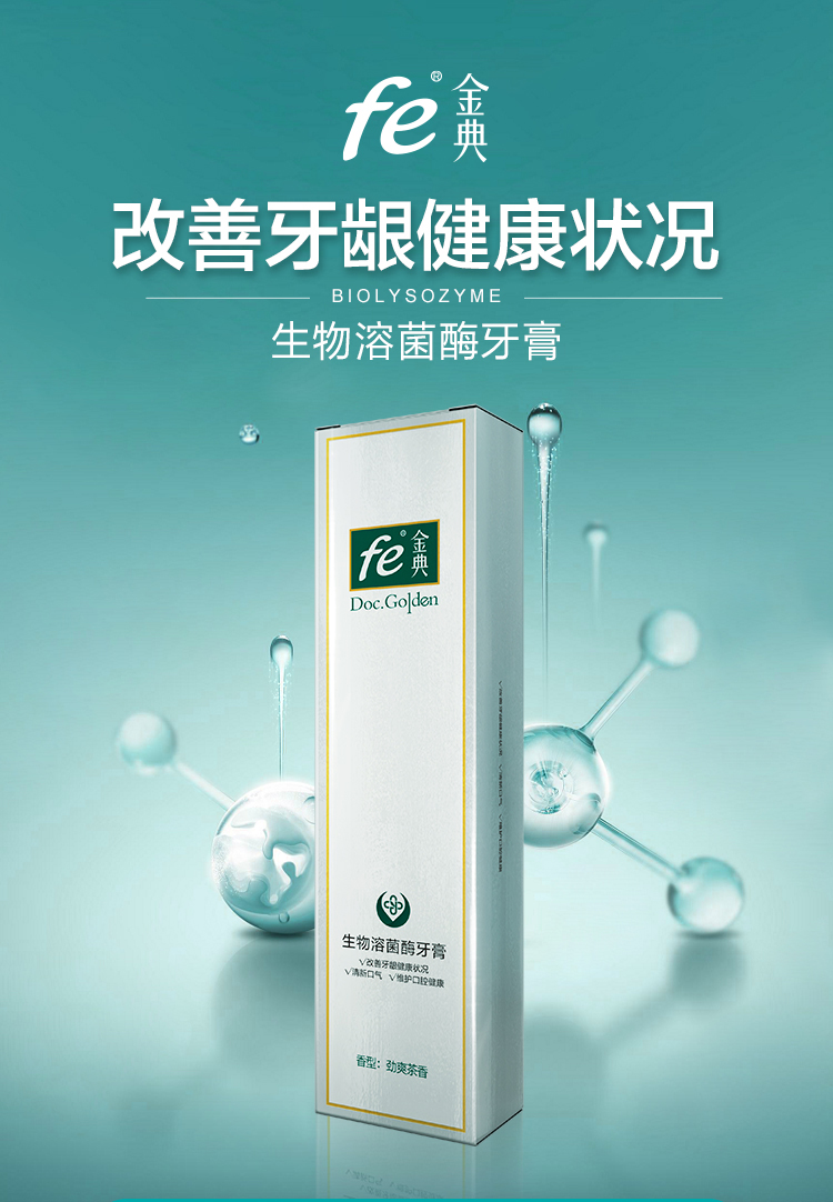 fe金典生物溶菌酶功效型牙膏抗敏固齿酷白105g劲爽茶香T9901