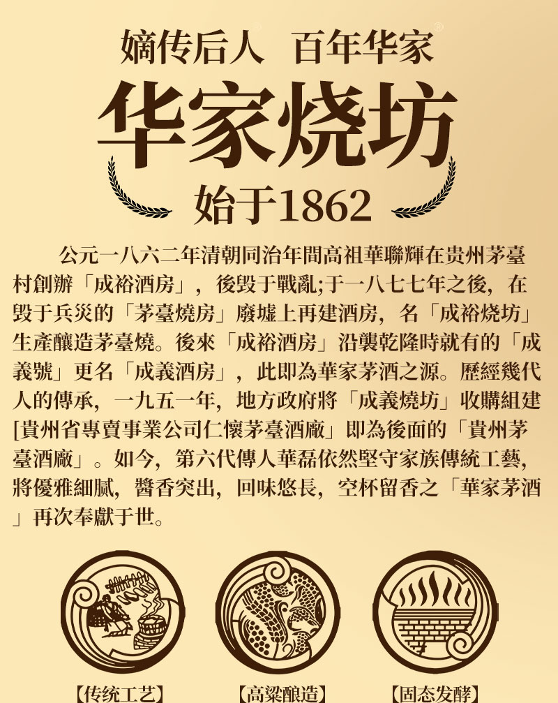嫡传后人・百年华家・酒厂 VIP 接待酒 500ml*6瓶/箱 53%VOL酱香型 酱香本源一脉相传;送礼显贵气,收藏有格调;