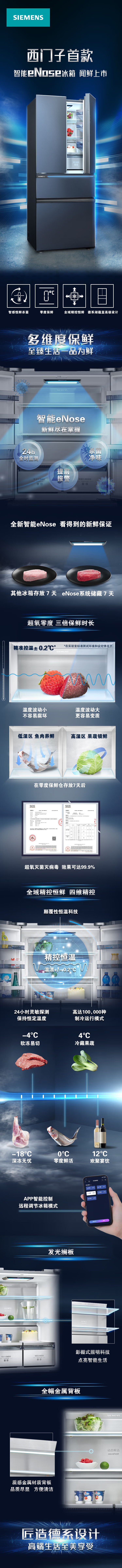 西门子冰箱(202625)462升四门一级能效全域恒温零度生物保鲜风冷无霜智能eNose电冰箱湖蕴蓝KF72FAA56C