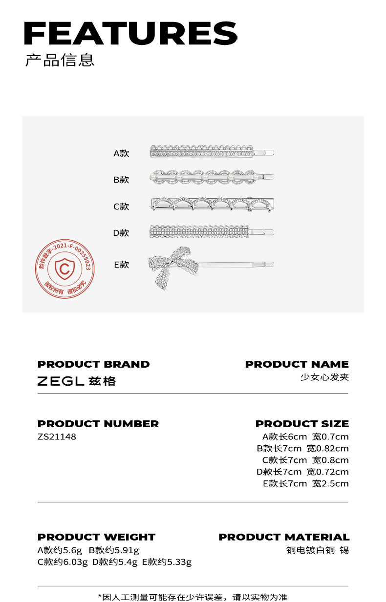 ZEGL设计师蝴蝶结发夹女夏冷淡风发卡一字夹侧边边夹发饰套装组合