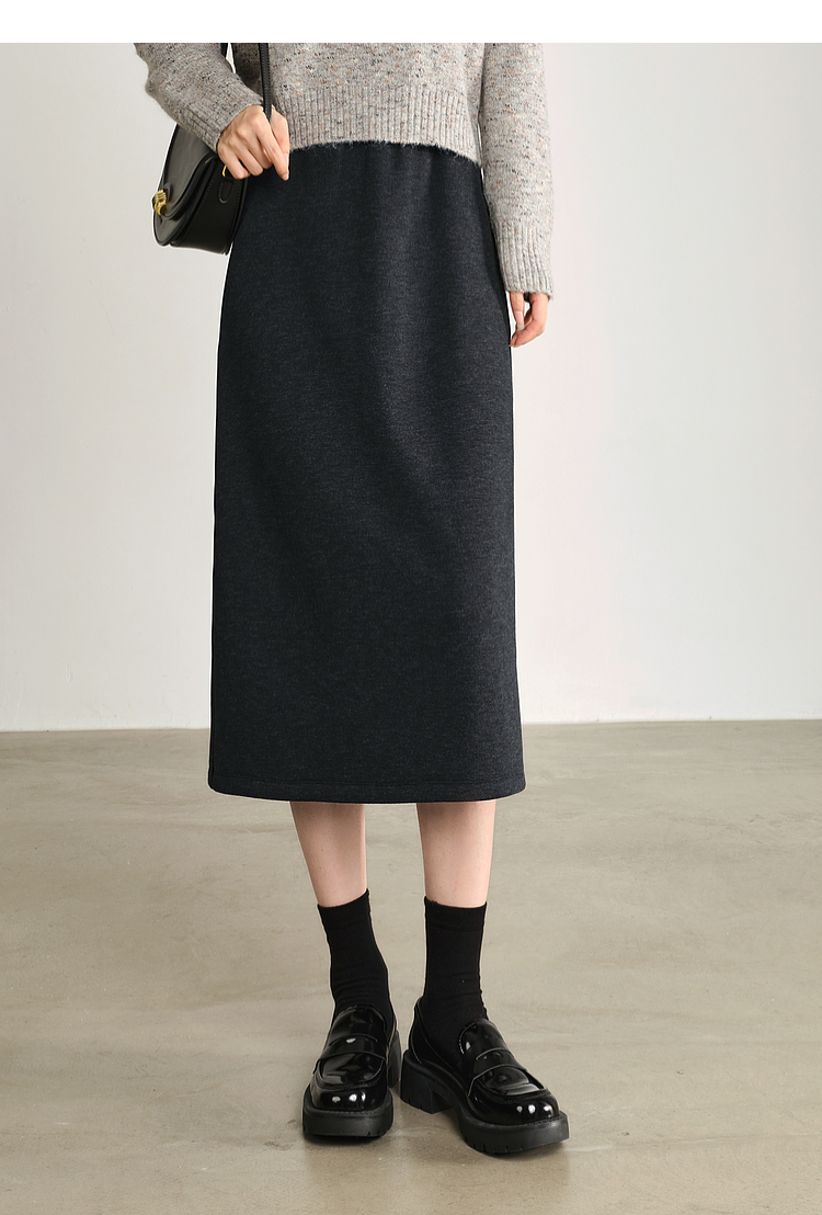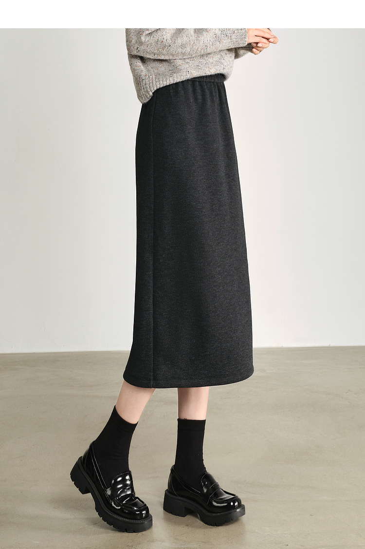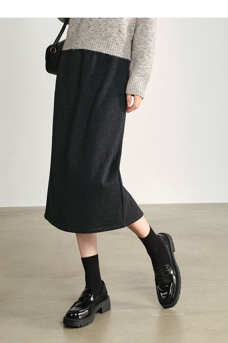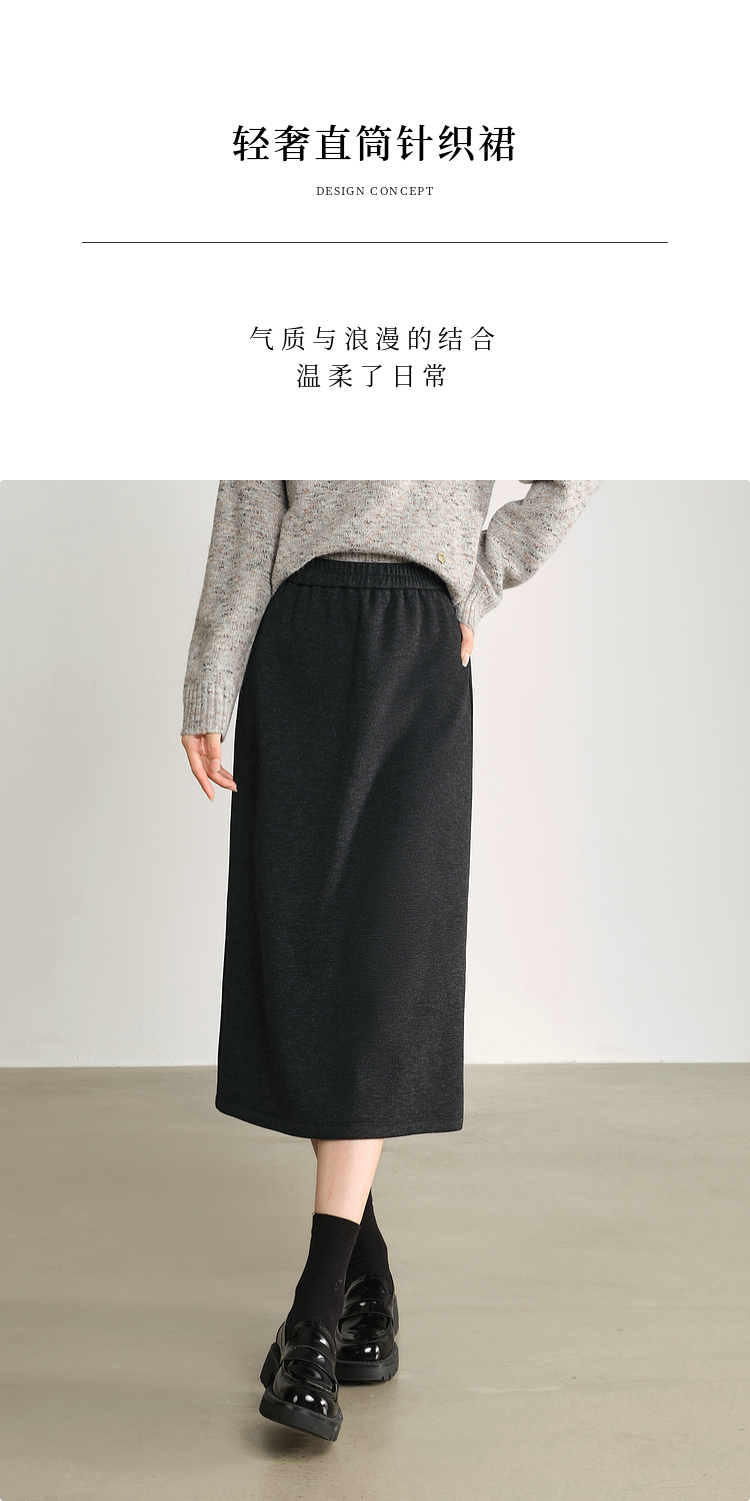 【1件75折】熙世界针织直筒半身裙秋冬2025新款百搭气质高腰显瘦裙子包臀裙