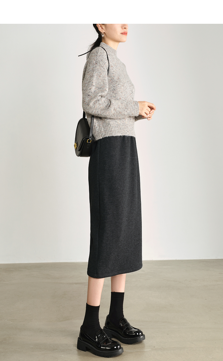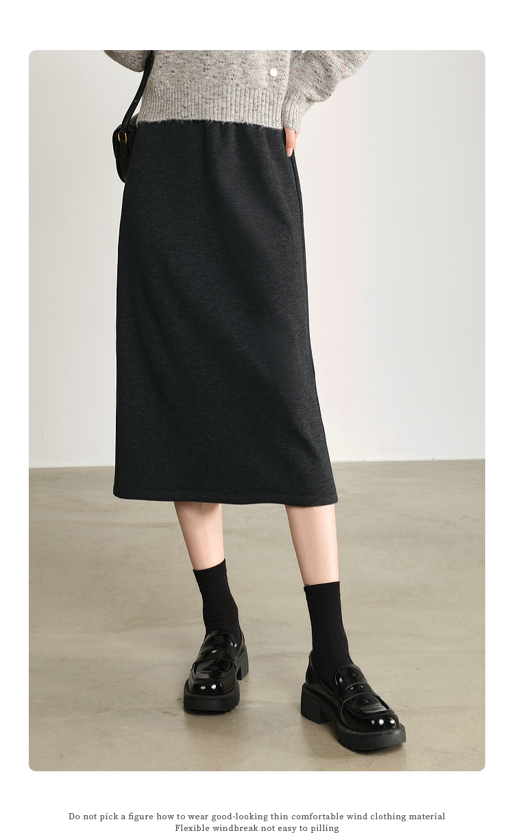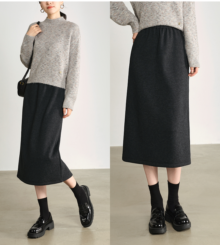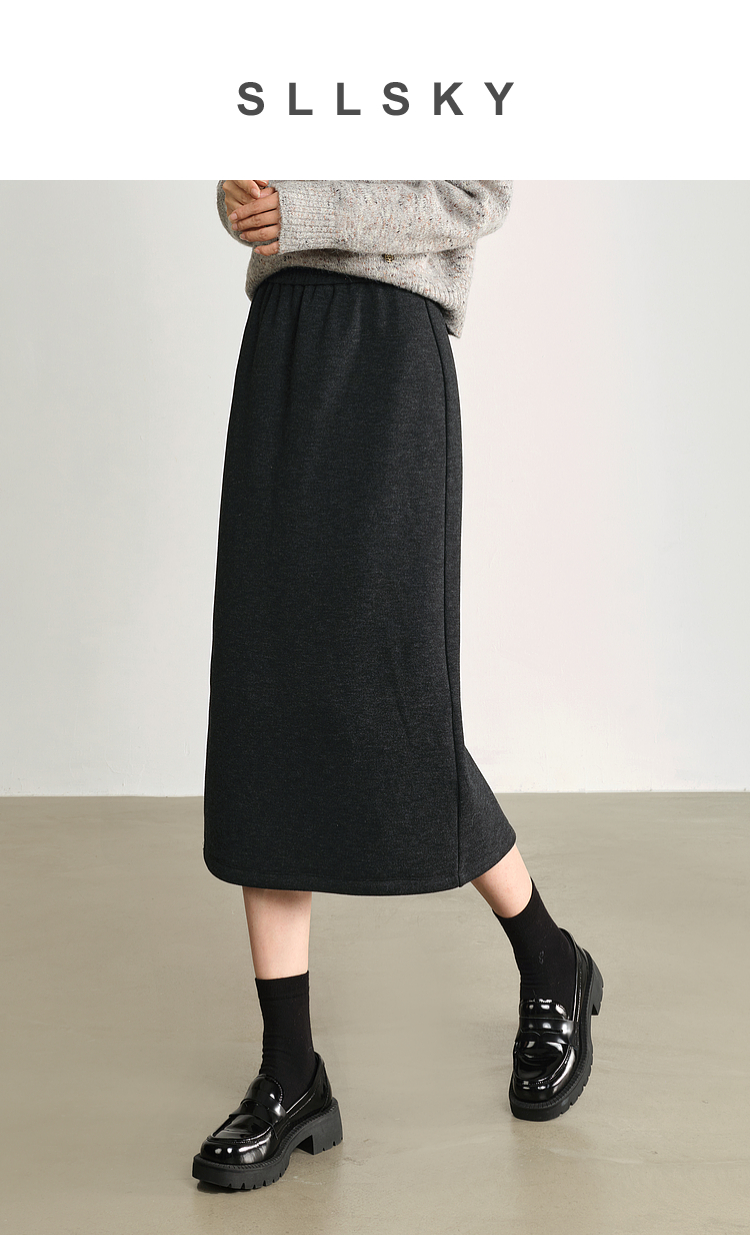 【1件75折】熙世界针织直筒半身裙秋冬2025新款百搭气质高腰显瘦裙子包臀裙