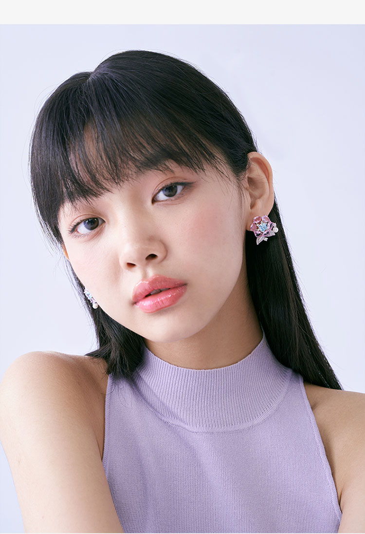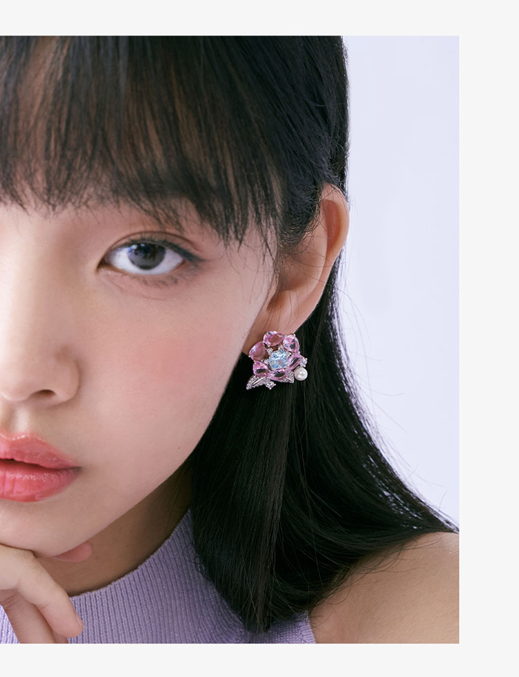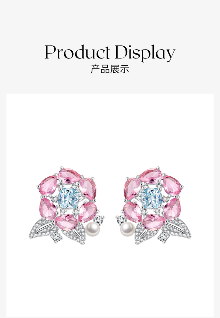 ZEGL设计师花知夏系列粉色花朵耳环女人造珍珠耳钉高级感银针耳饰