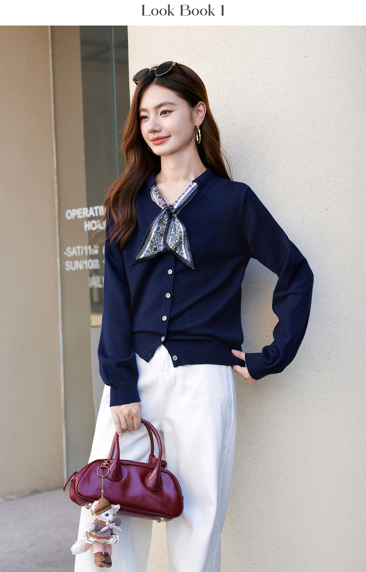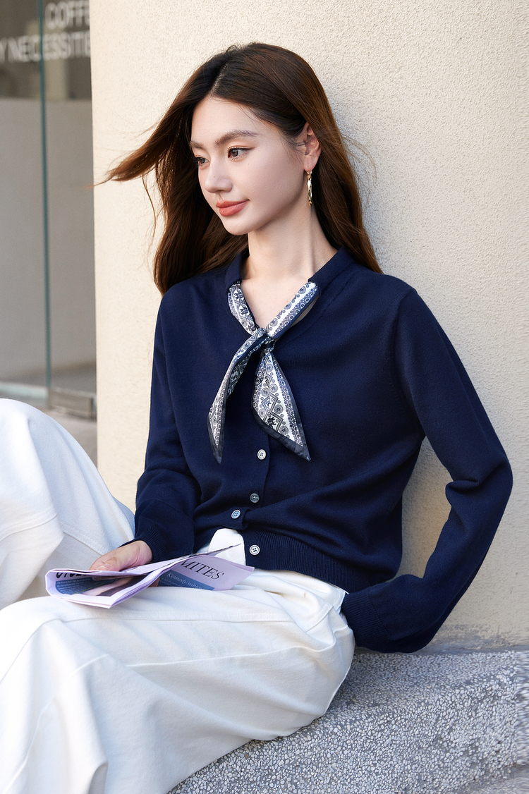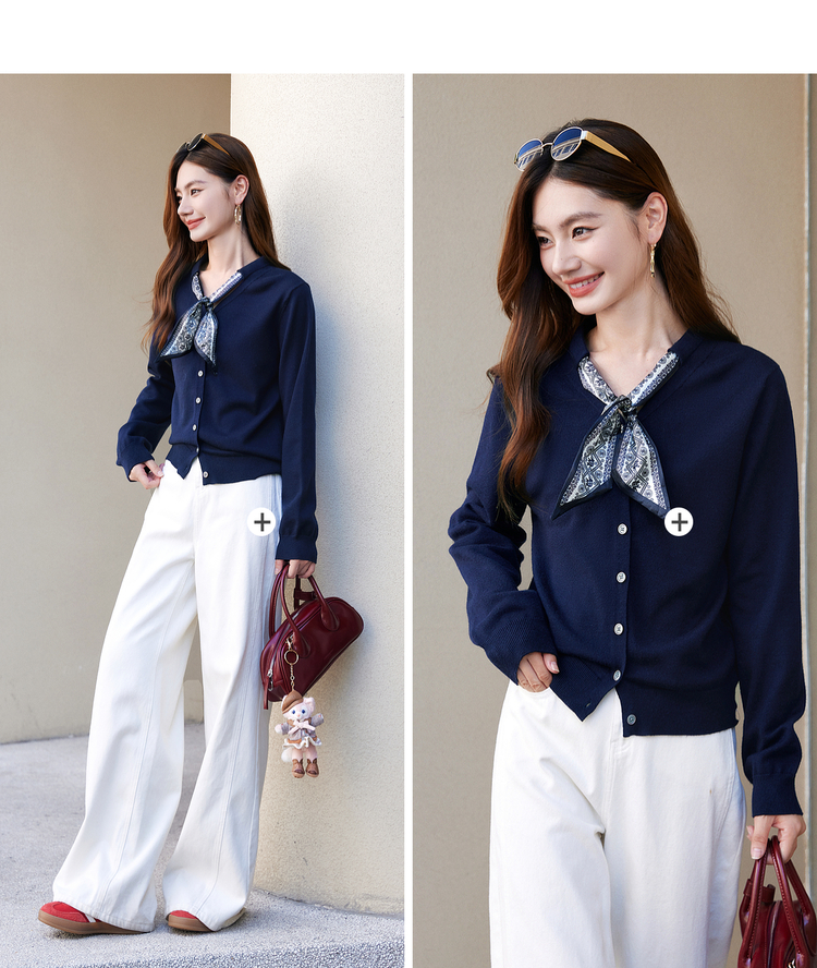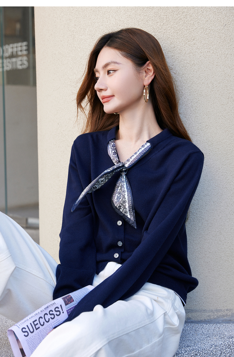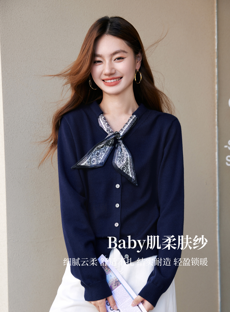 【年终特卖】熙世界通勤风复古印花丝巾针织衫女长袖独特别致上衣2025秋冬新款