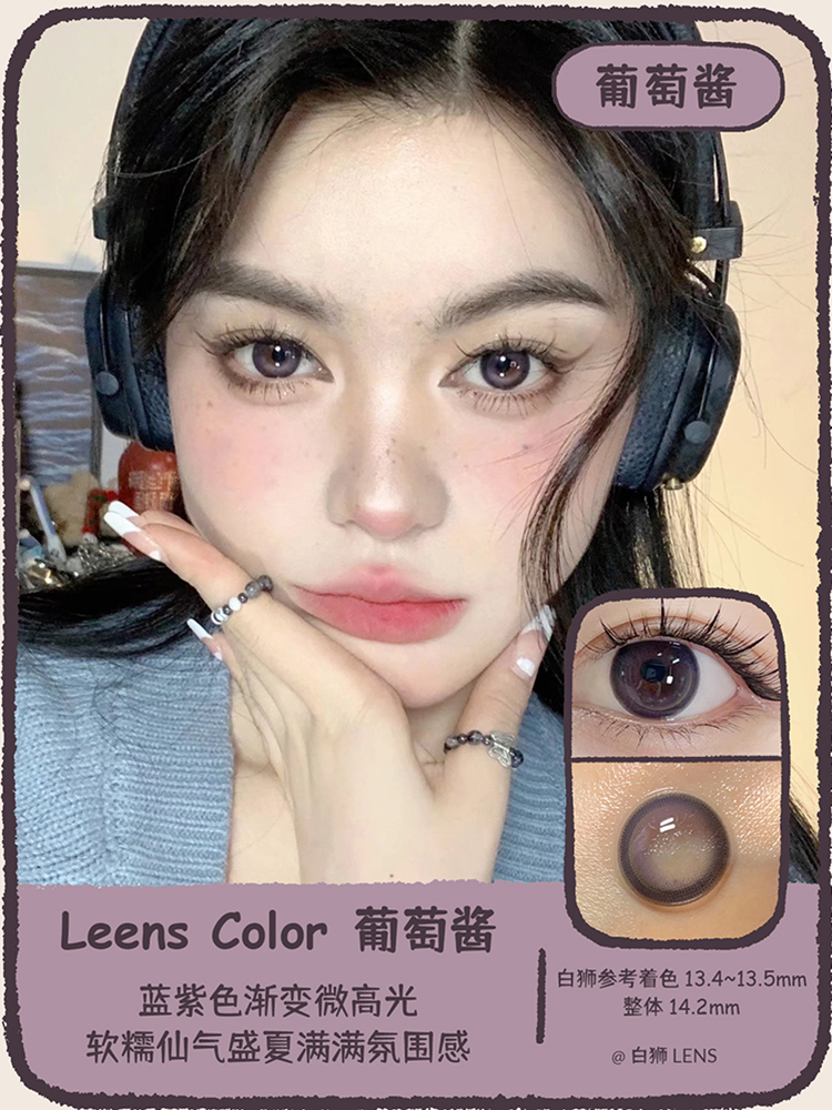 Leenscolor旗下 葡萄酱 14.2mm实际着色中大直径 年抛 icodi工厂