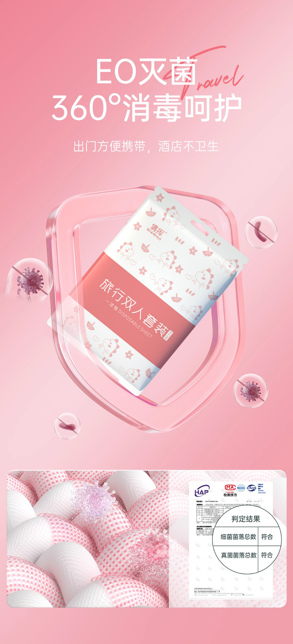 「一次性四件套!柔软亲肤」一次性旅行床单被罩枕套被套印花四件套旅游民宿酒店双人床上用品