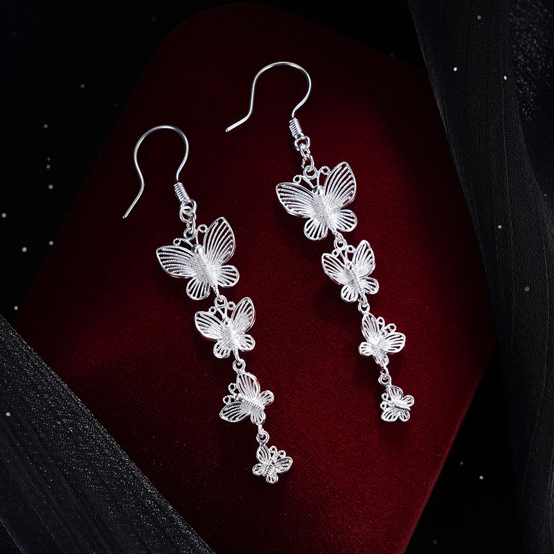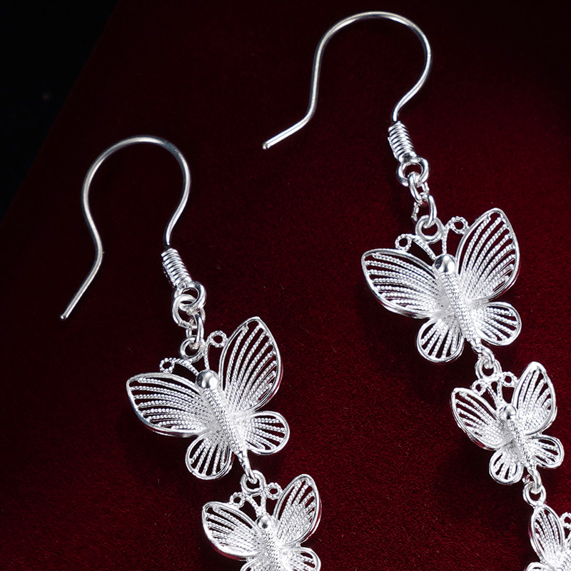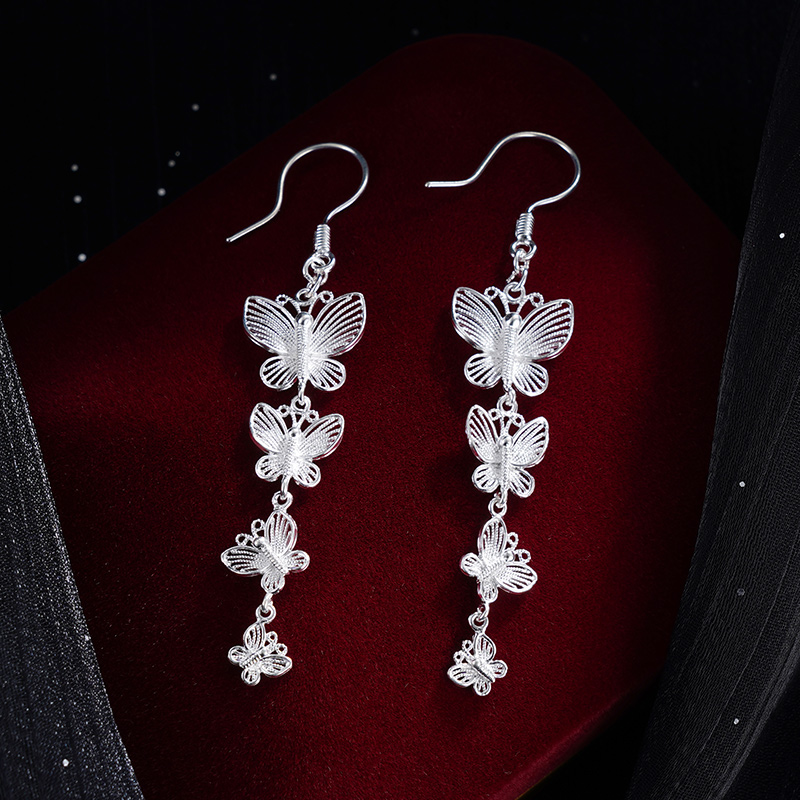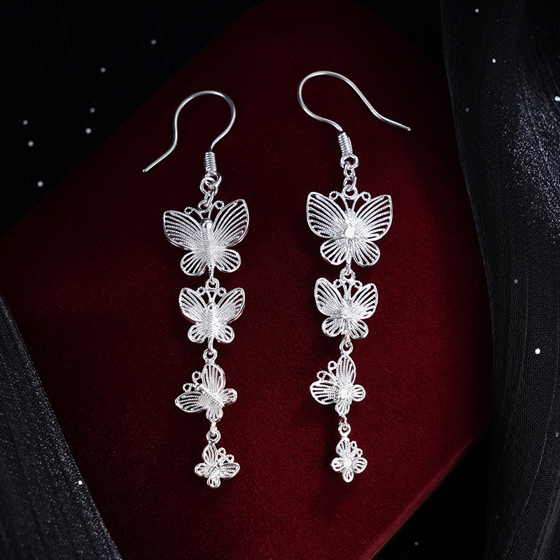 子佩集S990银【蛱蝶蹁跹】耳环【QFES040】纯银花丝四只蝴蝶流苏2405