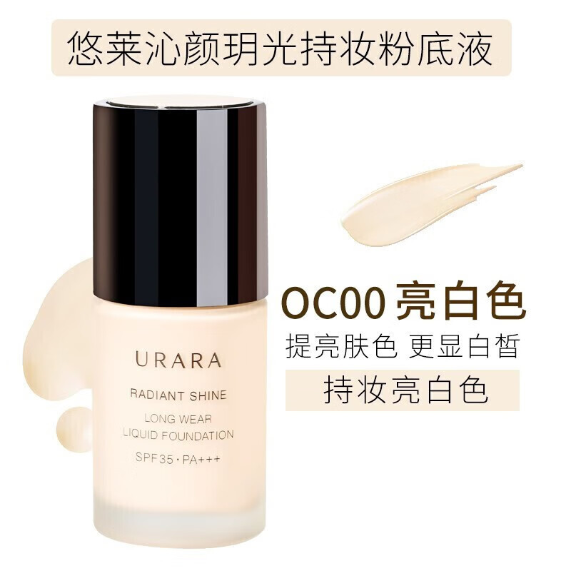 悠莱(URARA)粉底液 防晒遮瑕隔离沁颜玥光水感持妆裸妆 持妆款 亮白色/粉白色30ml