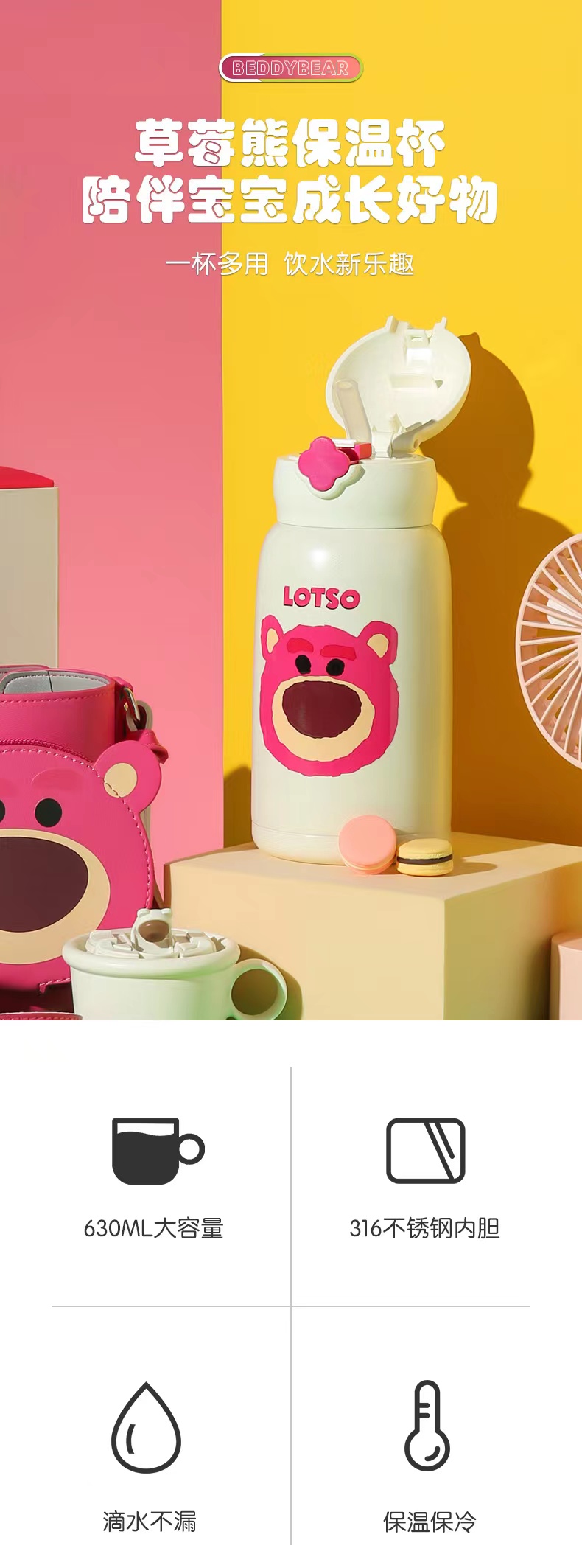 杯具熊四叶草儿童保温壶(特写草莓熊)