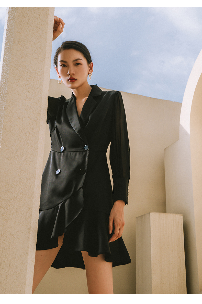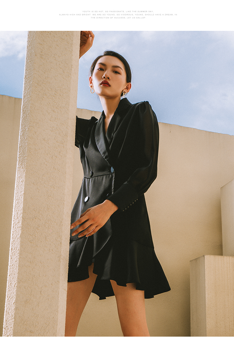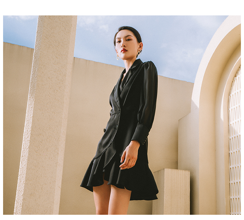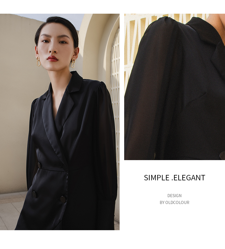 oldcolour欧珂春秋商场同款纯色收腰显瘦长袖连衣裙女GN31103819