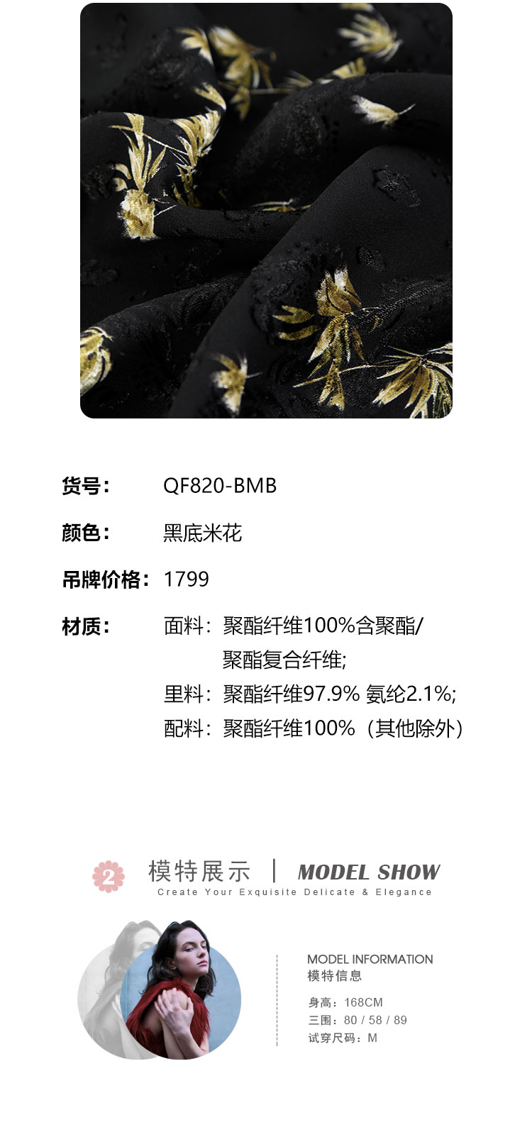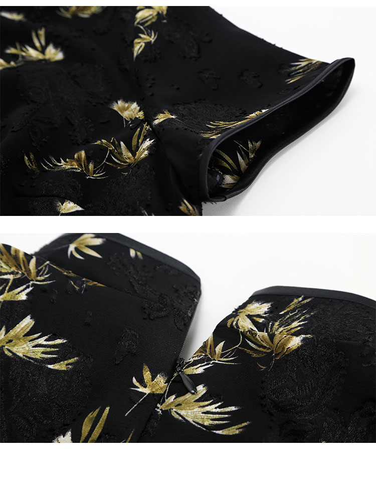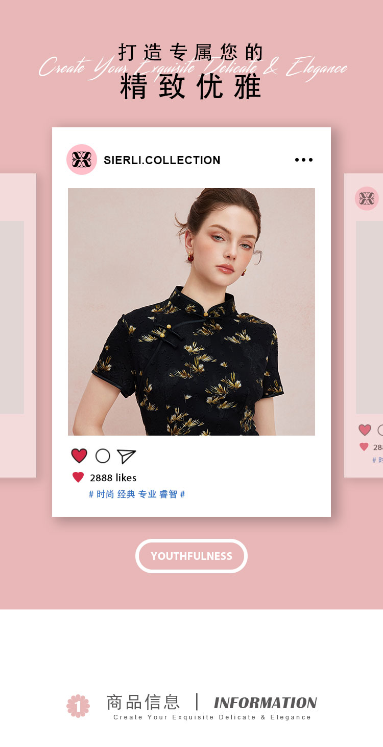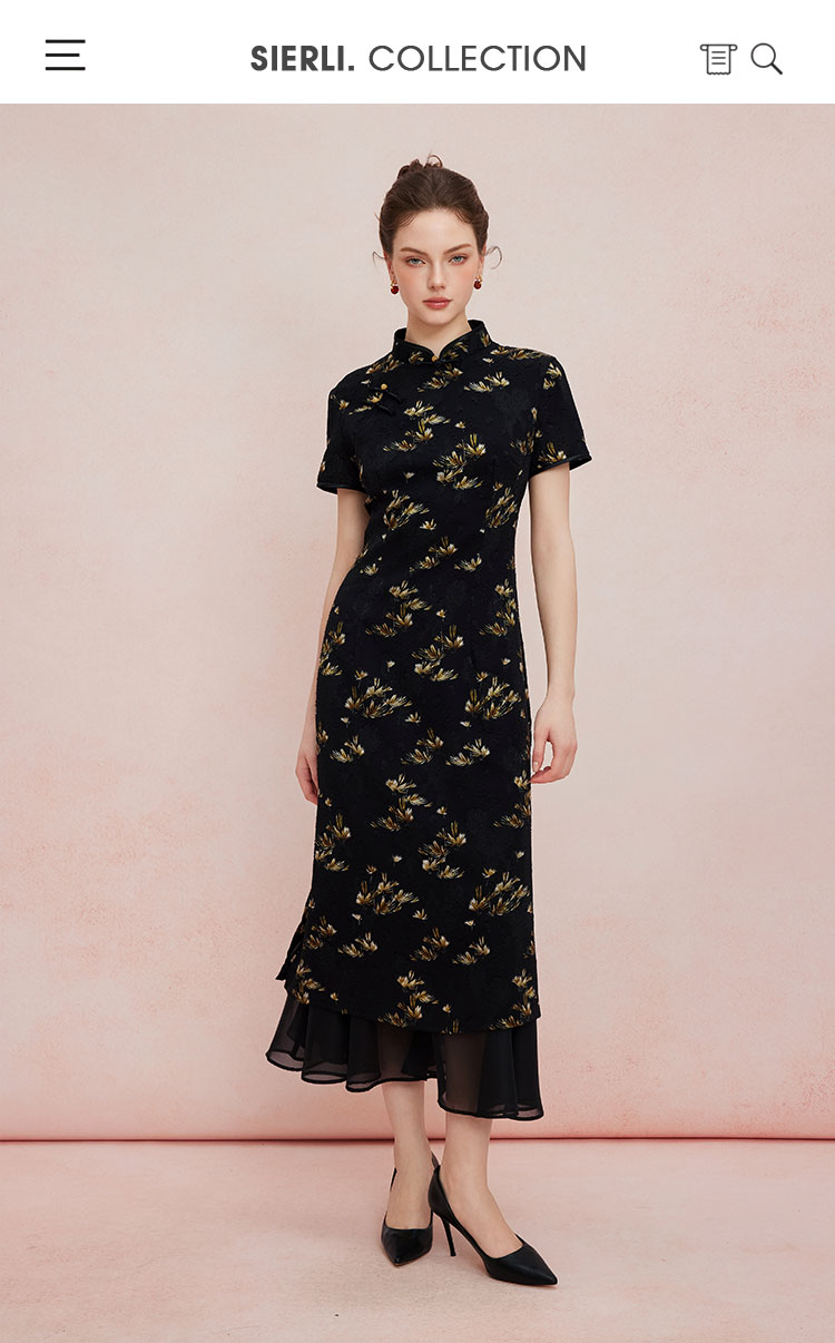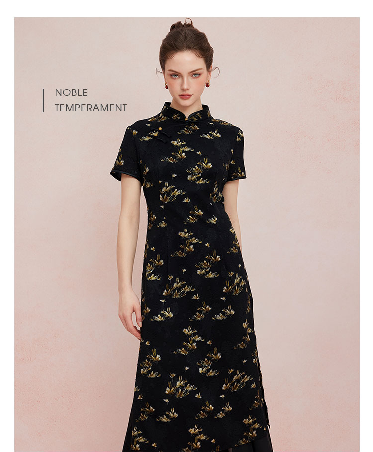 QF820斯尔丽25新款改良式旗袍提花加印花下摆荷叶波浪修身浪漫连衣裙