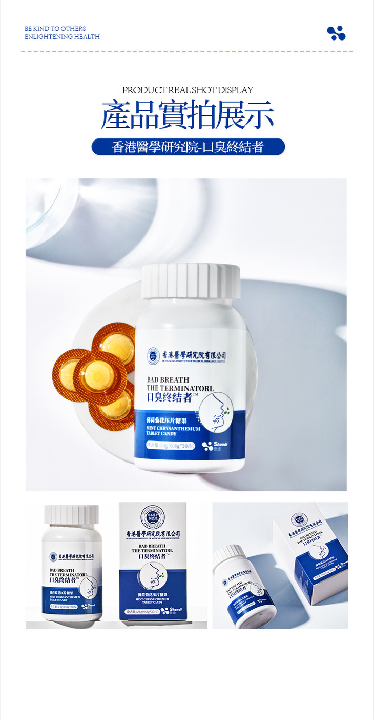 【口臭终结者】香港医学研究院薄荷菊花含片 调理脾胃口气清新 满口清香口臭救星 益生菌果蔬压片糖果30片/瓶