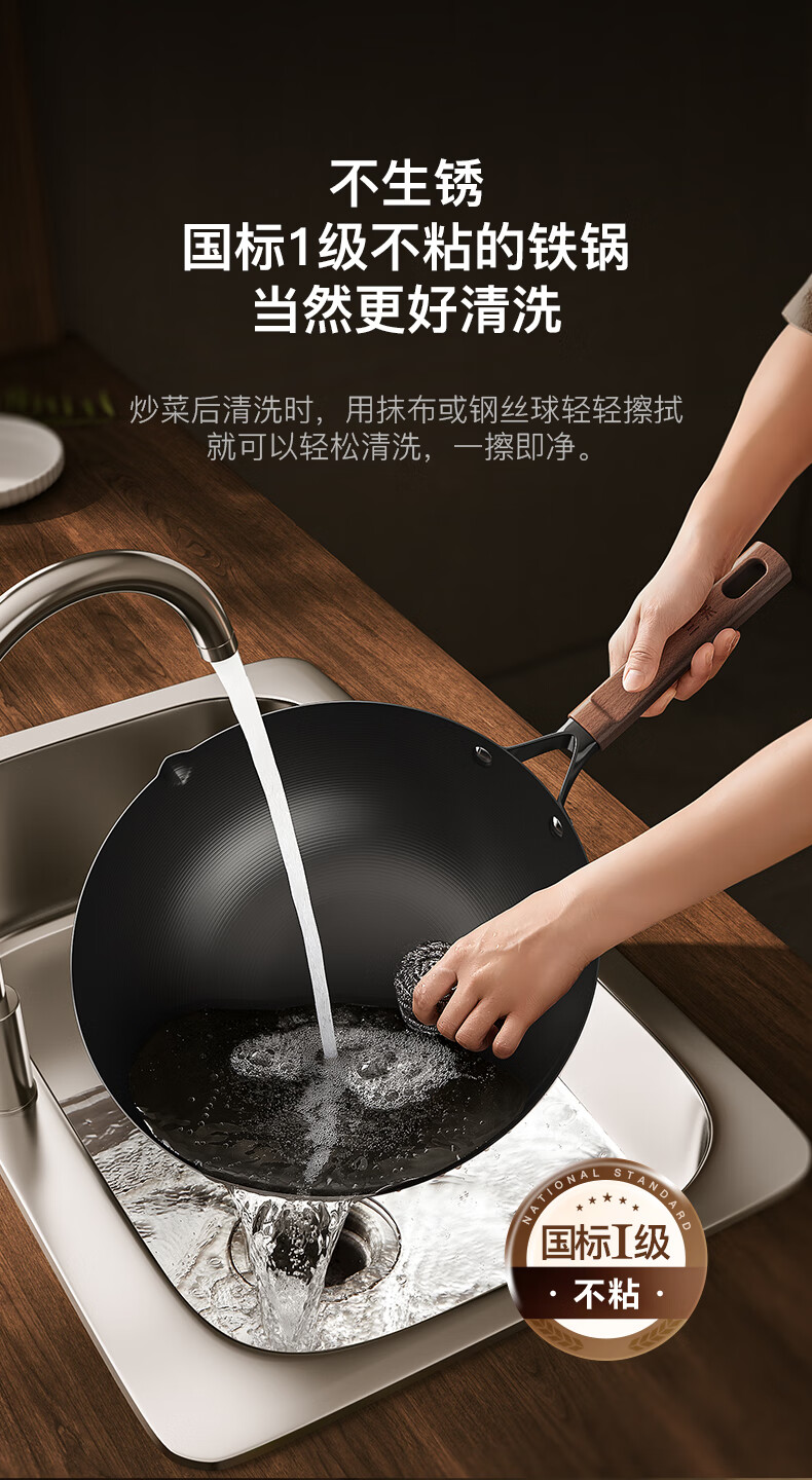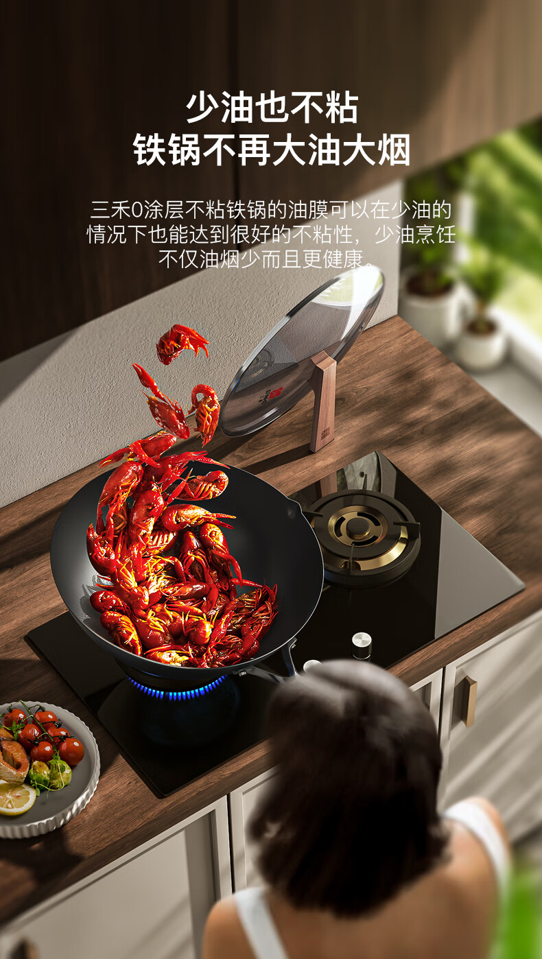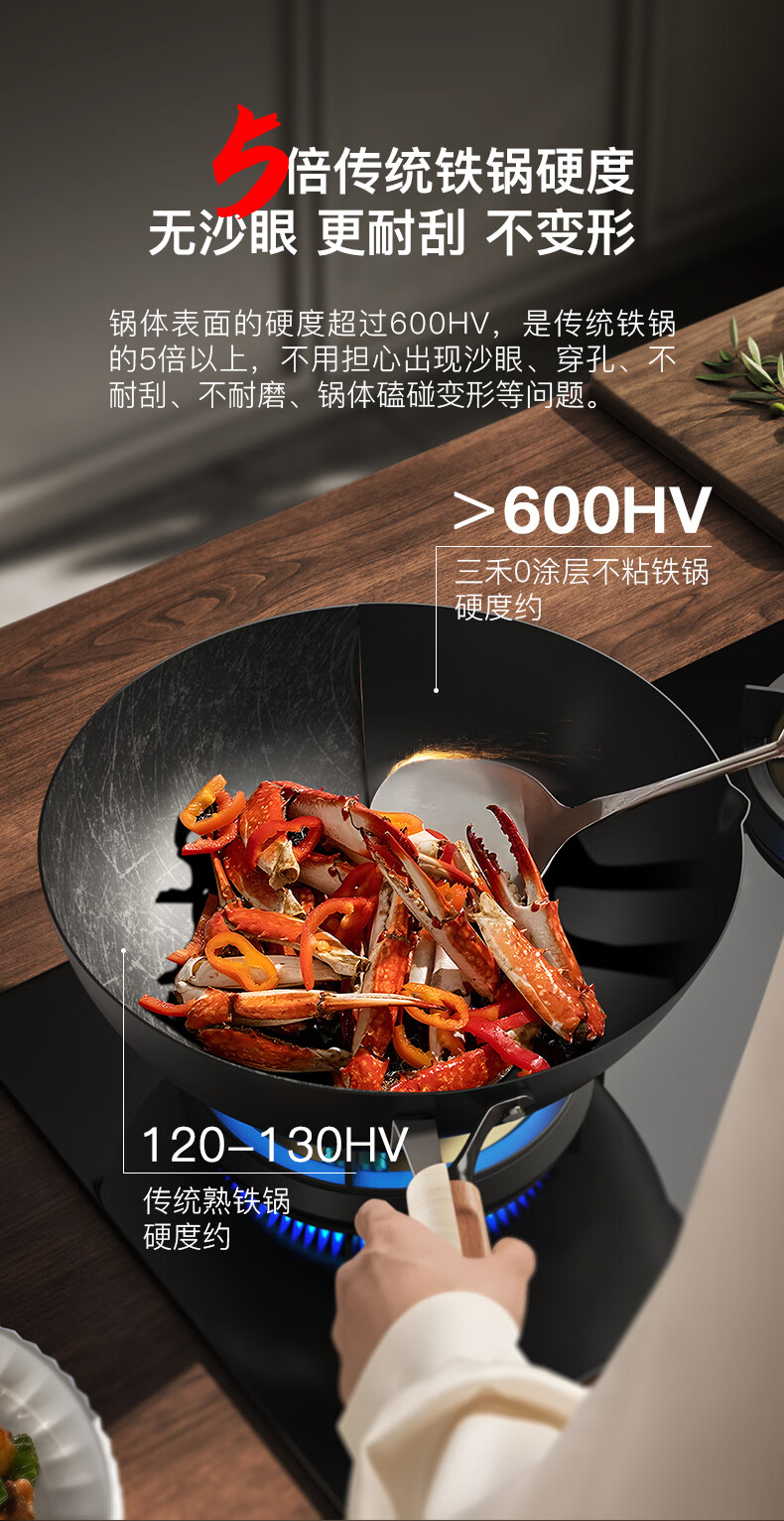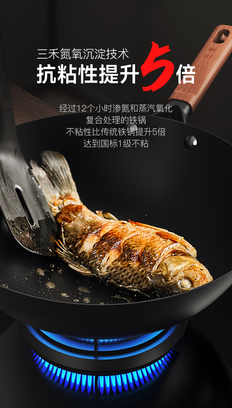 三禾无涂层铁锅炒菜锅窒氮防锈不粘熟铁锅32cm_TC32T7(圆底)