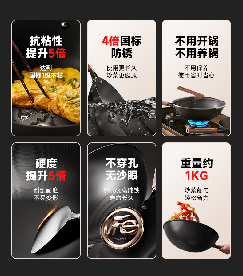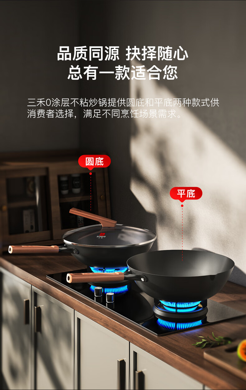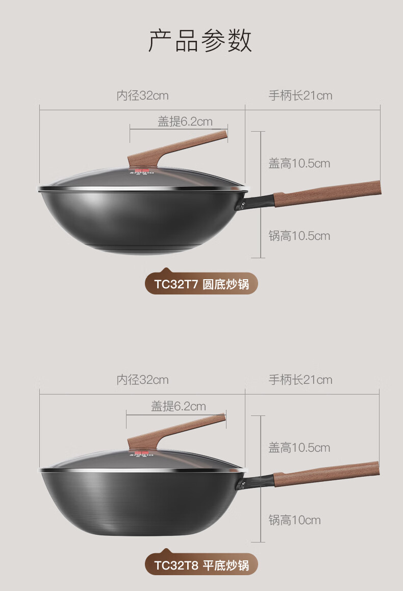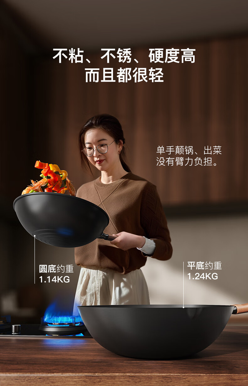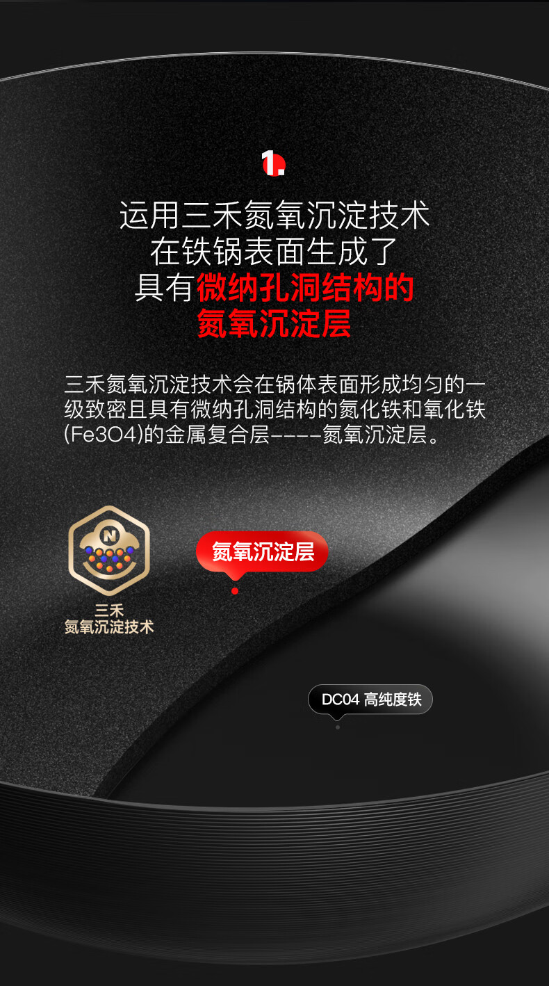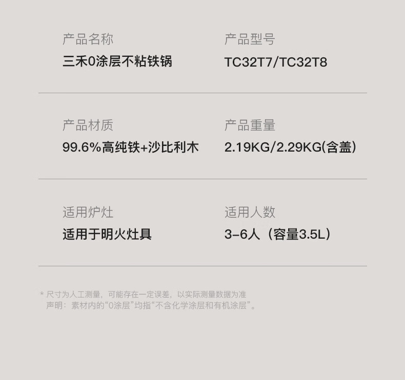 三禾无涂层铁锅炒菜锅窒氮防锈不粘熟铁锅32cm_TC32T7(圆底)